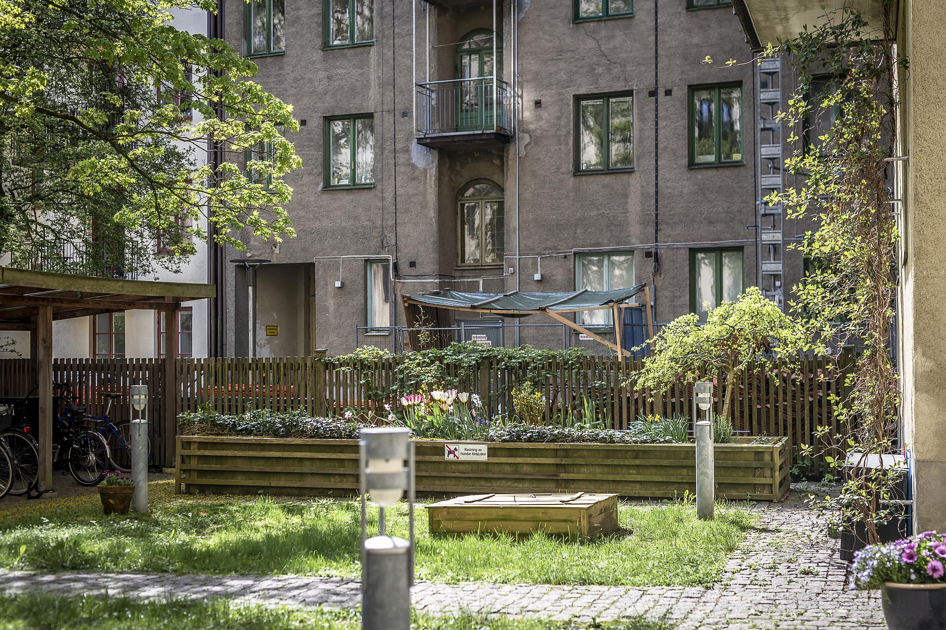 Vill du njuta av en kopp kaffe utomhus är det bara att ta hissen ner till föreningens innergård. Här skiner solen stora delar av förmiddagen och flera sittgrupper gör det enkelt att slå sig ner och koppla av. Trots det centrala läget råder här ett påtagligt lugn. Fastigheten präglas av en trevlig gemenskap och grannar som trivs tillsammans. Föreningen arrangerar dessutom städdagar ett par gånger per år, ofta avslutade med en uppskattad grillfest på gården.