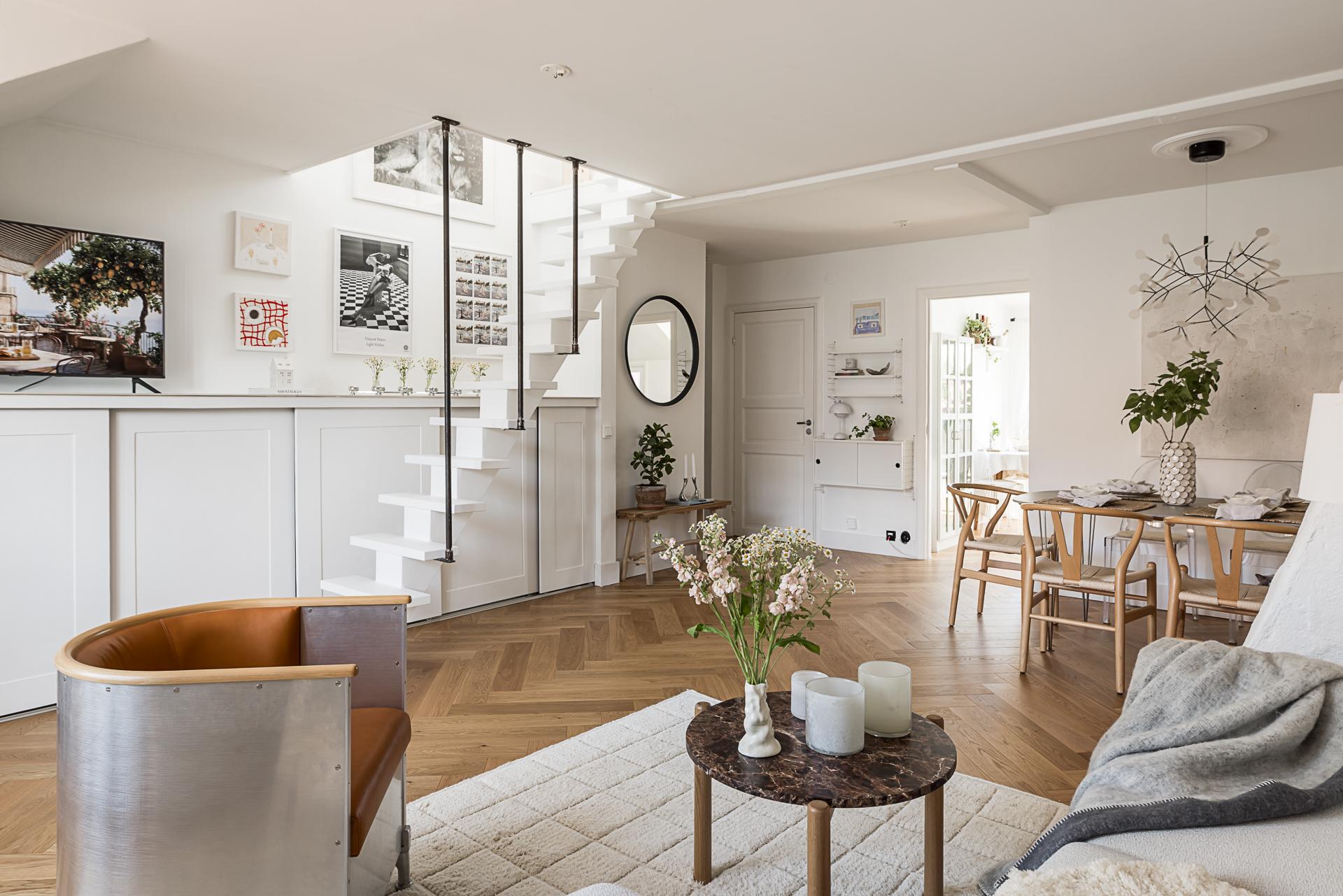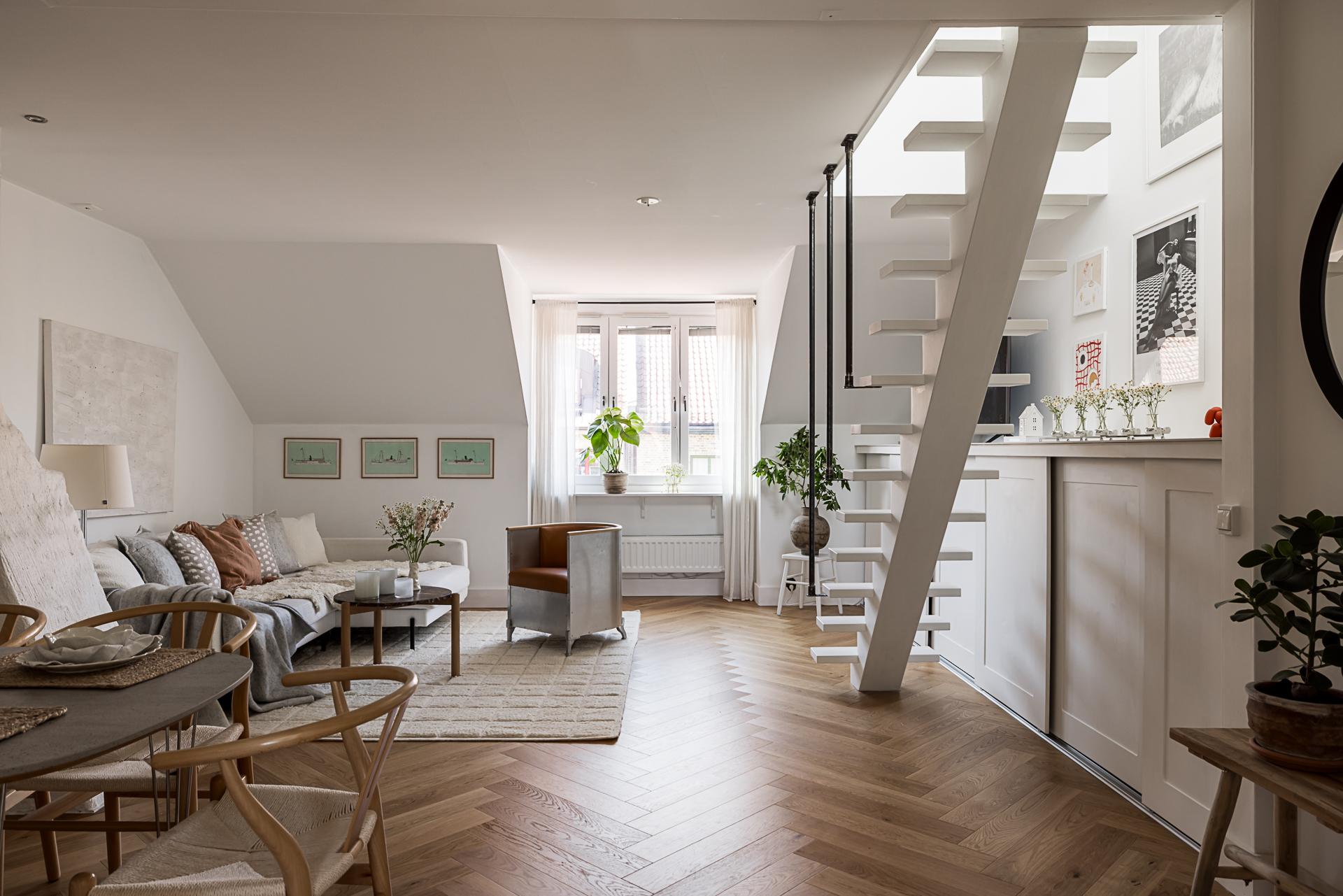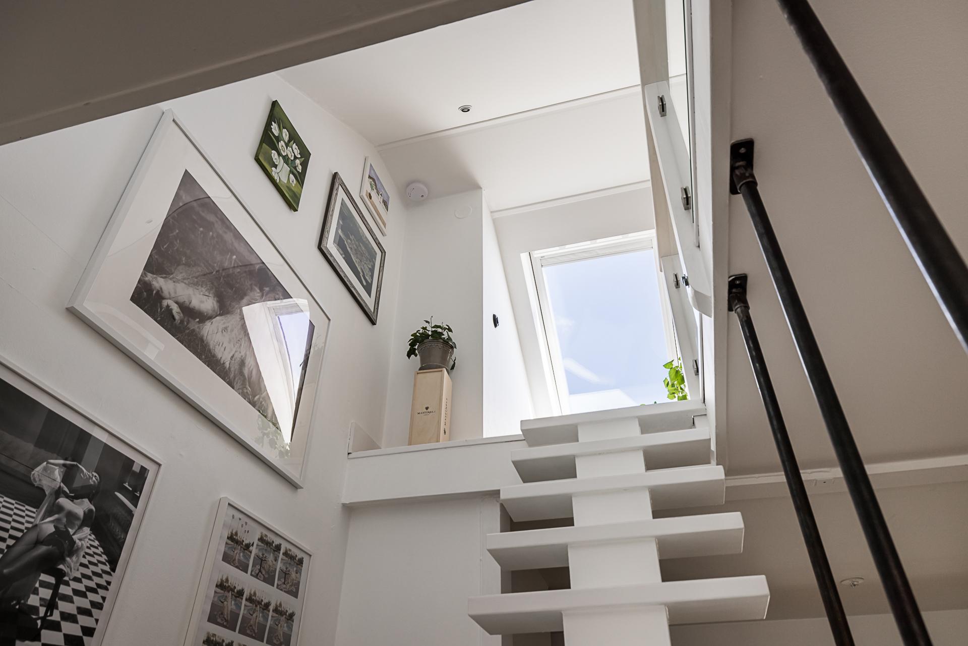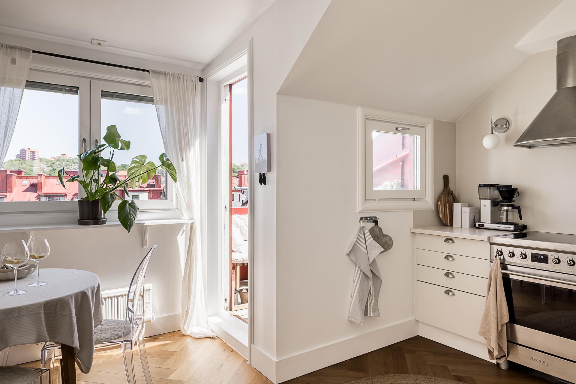 Helrenoverad vindslägenhet i etage med solig takterrass på en av Linnés bästa adresser och Slottsskogen inpå knuten. Boarean är uppmätt till 50 kvm medan sovloftet är på ca 13 kvm biarea. Öppna sociala ytor som gjorda för umgänge och ett övre plan med ett tyst beläget sovrum. Genomgående planlösning med fönster åt två väderstreck och utsikt över takåsarna. Renoverat badrum med tvättmaskin och genomgående stavparkett i fiskbensläggning. Synliga murstockar och en herren på täppan känsla. Högst upp i huset och ensam på våningsplanet. Två rymliga förråd medfölje. Låg avgift i mycket bra förening med egna p-platser utanför porten. Går eventuellt att göra om till en minitrea.
