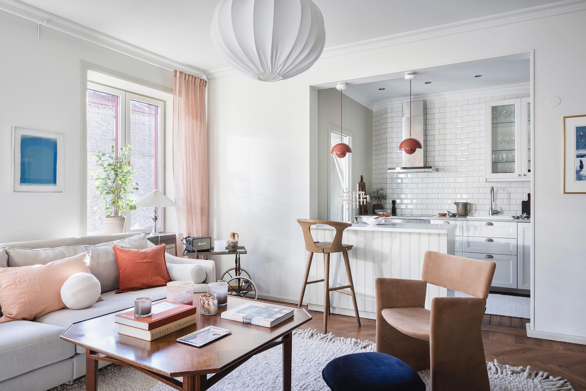 Högt upp i huset, på fjärde våningen, väntar en ljus och välplanerad bostad med genomgående ljusinsläpp, två fina sovrum och många bevarade originaldetaljer. Här samsas fiskbensparkett, spegeldörrar, takrosetter och en fungerande öppen spis med ett vackert, renoverat kök och badrum i klassisk stil. Föreningen är välskött och trivsam, med en fastighet i toppskick och god ekonomi. Till medlemmarnas förfogande finns en övernattningslägenhet samt en ljuvlig, grönskande innergård. Hiss finns!