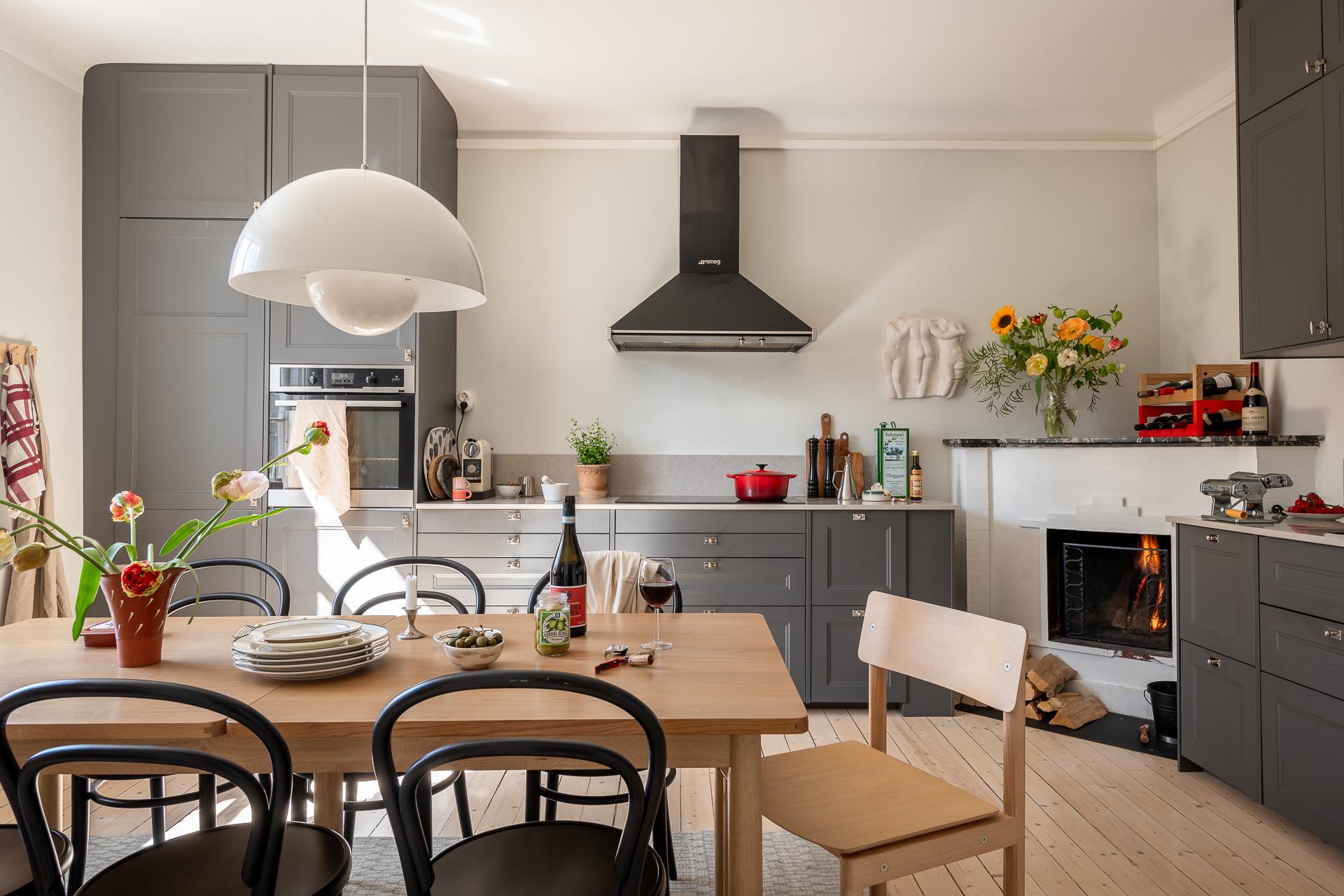 Ovanligt stor trea högst upp i huset (två snabba trappor upp), totalrenoverad för några år sedan med stort badrum med tvättmaskin. Två stora rum i fil med köket flyttat som ger två sovrum in mot gården. Genomgående originalgolv i hela lägenheten, öppen spis, höga pardörrar, handblåsta fönsterglas, takrosetter... Allt finns här. Fastighet från 1925 med originalfönster och ljuvligt grönskande innergård. Läget på Älvsborgsgatan ger närhet till det stora utbudet av småbutiker, caféer och restauranger på Mariagatan och någon minut bort ligger Plaskis och stora lekplatsen på Gröna Vallen.