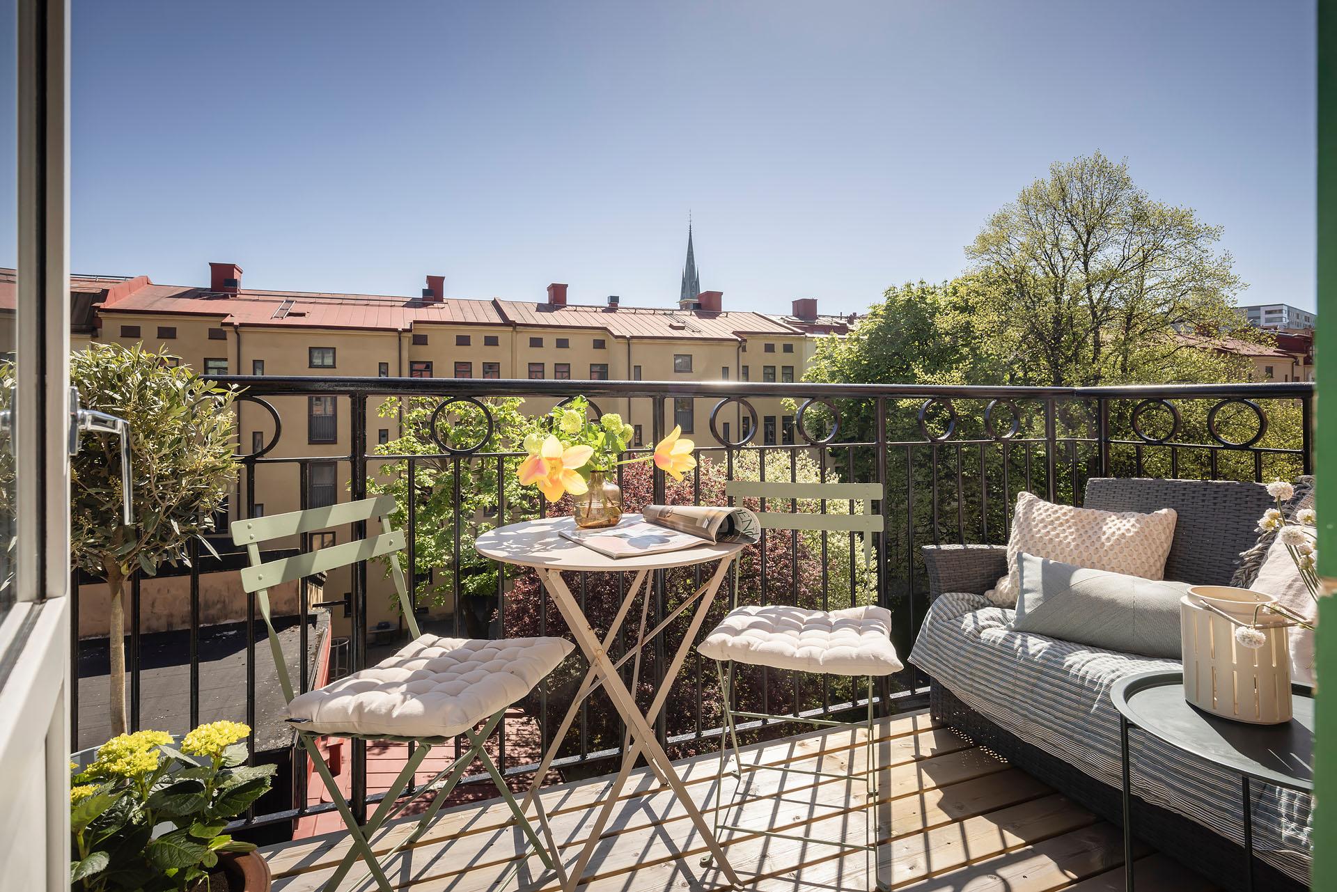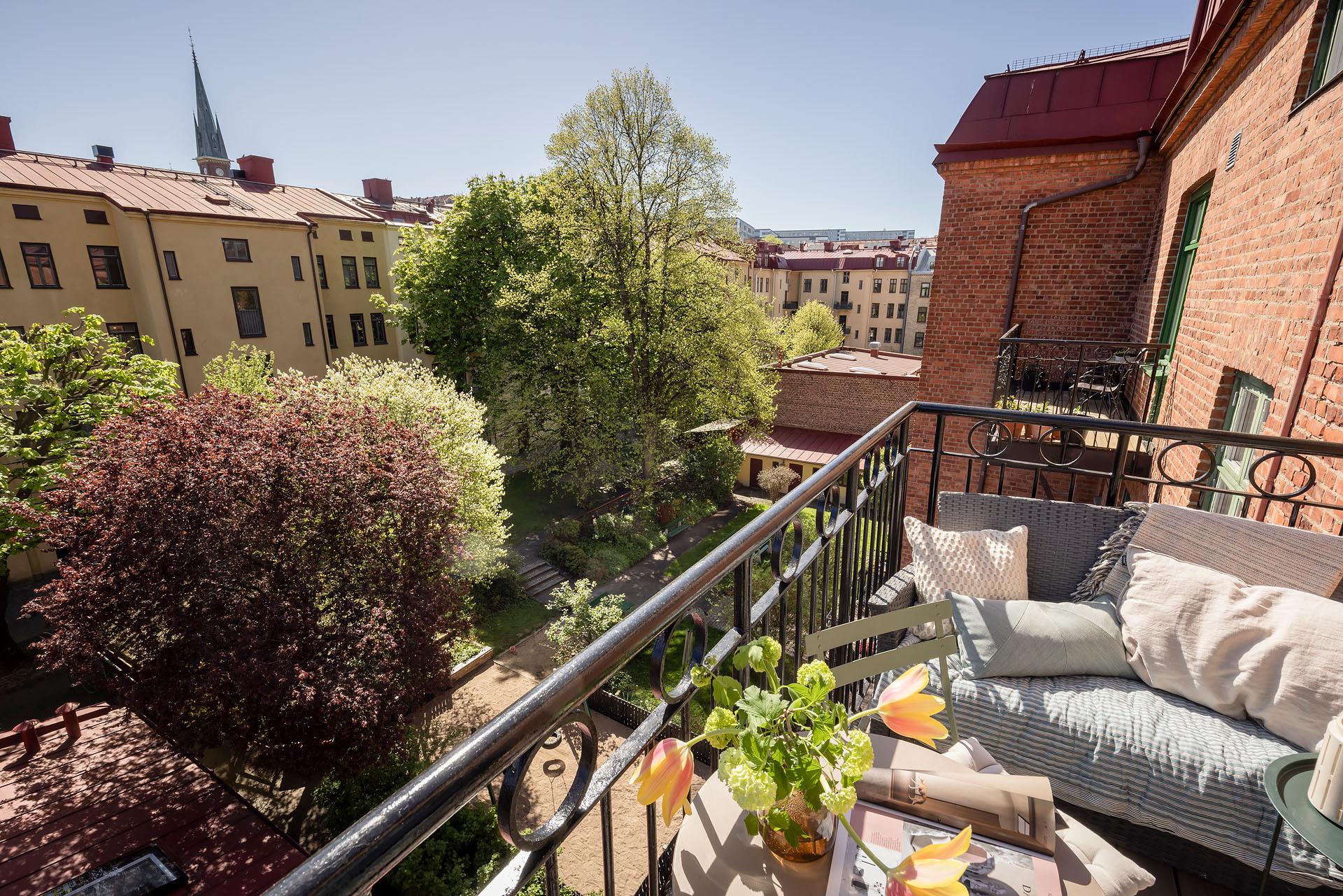 - Balkong/Uteplats: Ja. Balkong i söderläge och tillgång till grönskande innergård.
