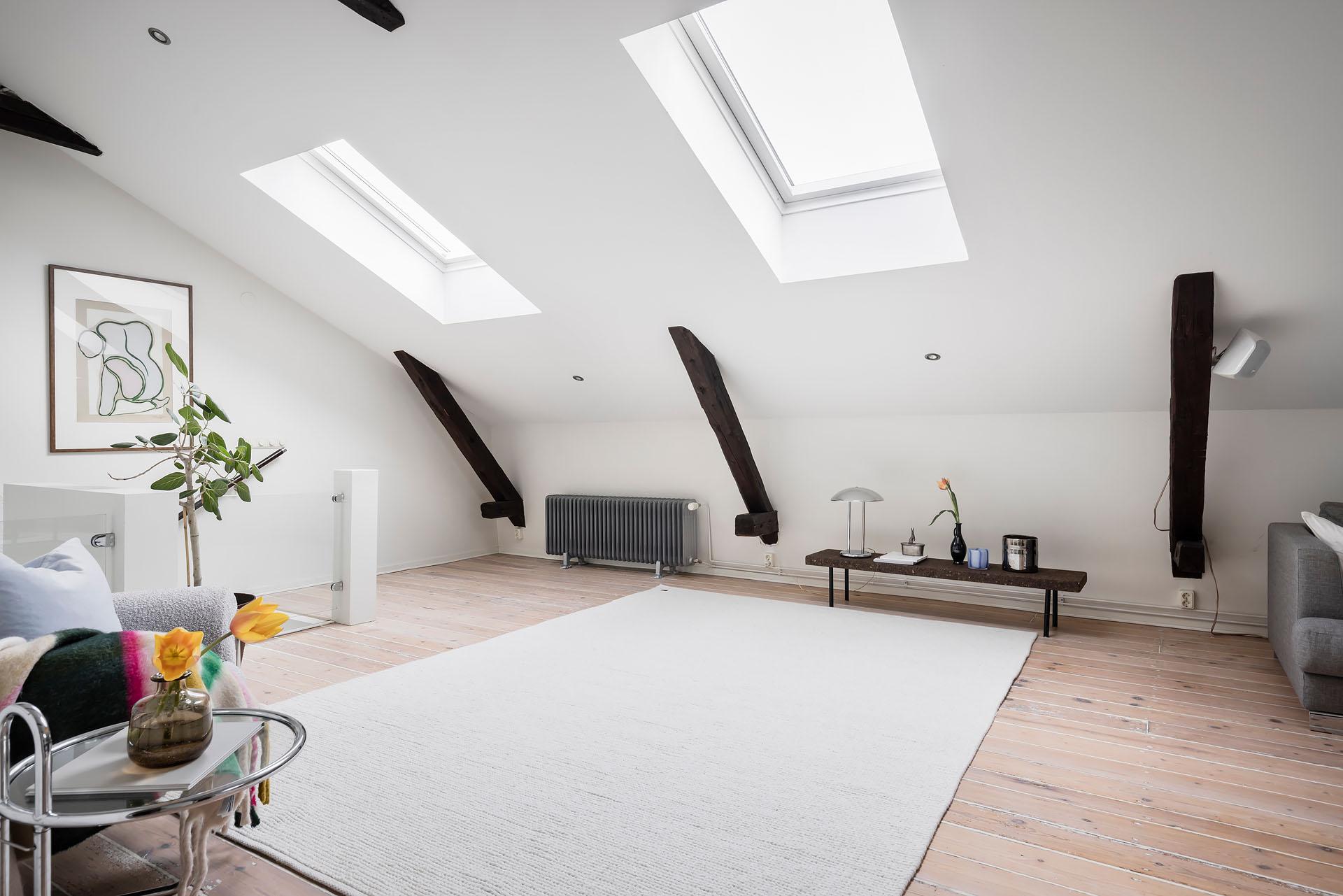 Välkommen till en unik etagelägenhet om totalt 143 kvm – med karaktär, ljus och sociala ytor i två plan. Här finns tre sovrum (möjlighet till fyra), två renoverade badrum – varav ett med bastu – kamin samt generösa sällskapsytor. Entréplanet rymmer ett inbjudande kök i öppen planlösning och en stor, södervänd balkong med sol större delen av dagen. Föreningen äger ett välskött hus och har god ekonomi med låg belåningsgrad, vilket avspeglas i den låga månadsavgiften som även inkluderar bredband. Den grönskande innergården “Smacken” delas med grannföreningar och erbjuder en ovanligt lummig, parkliknande innergård mitt i Linnéstaden.