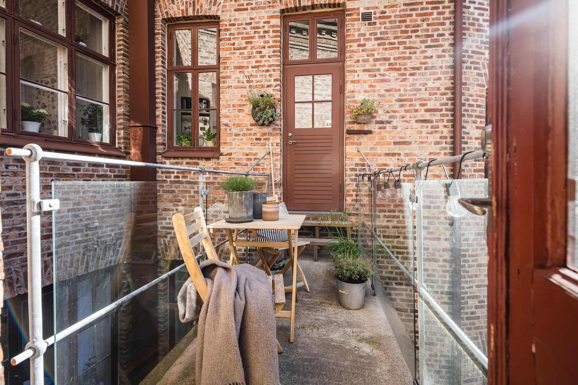 - Balkong/Uteplats: Nej. Föreningen har en gemensam terrass en halv trappa ner från lägenheten.