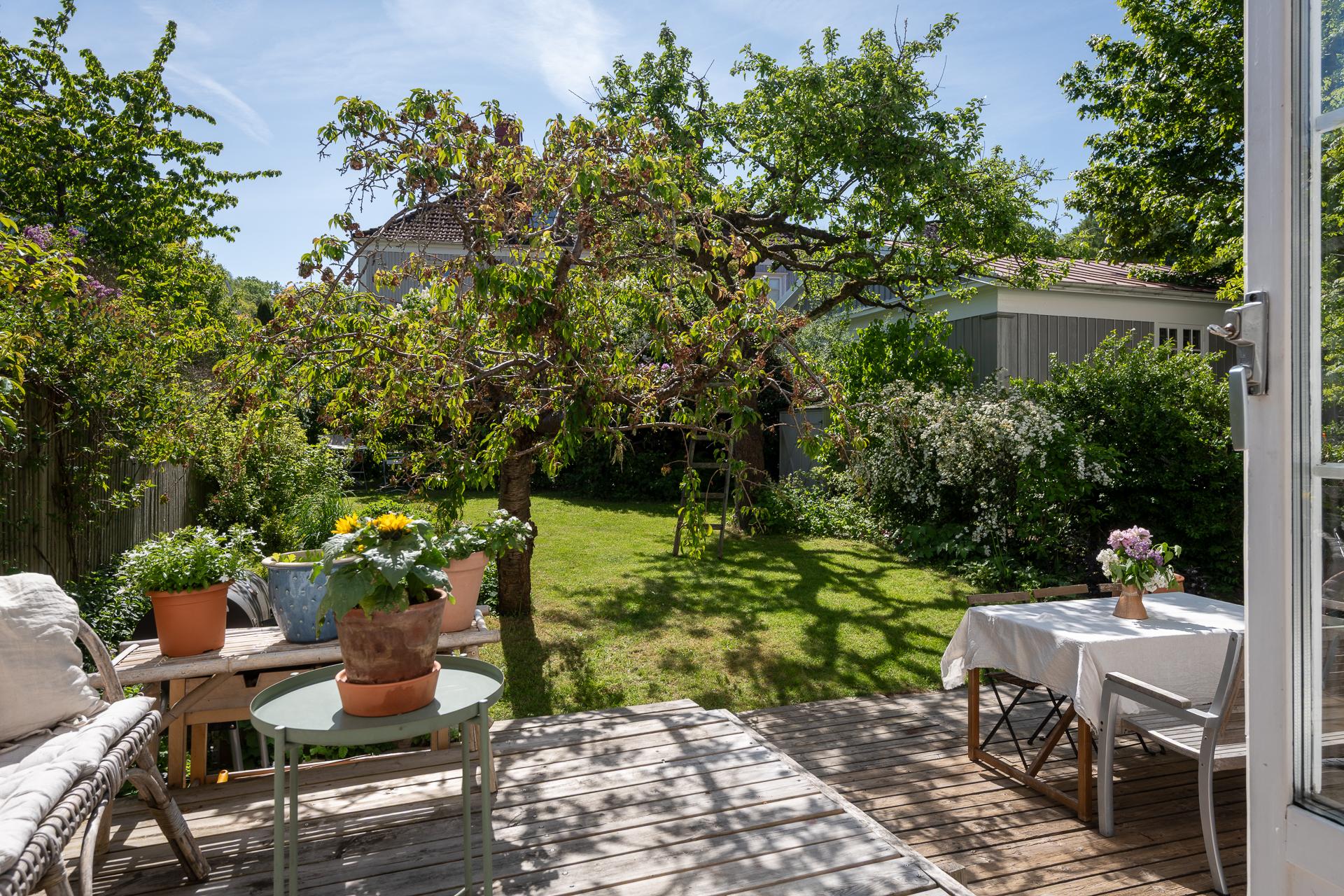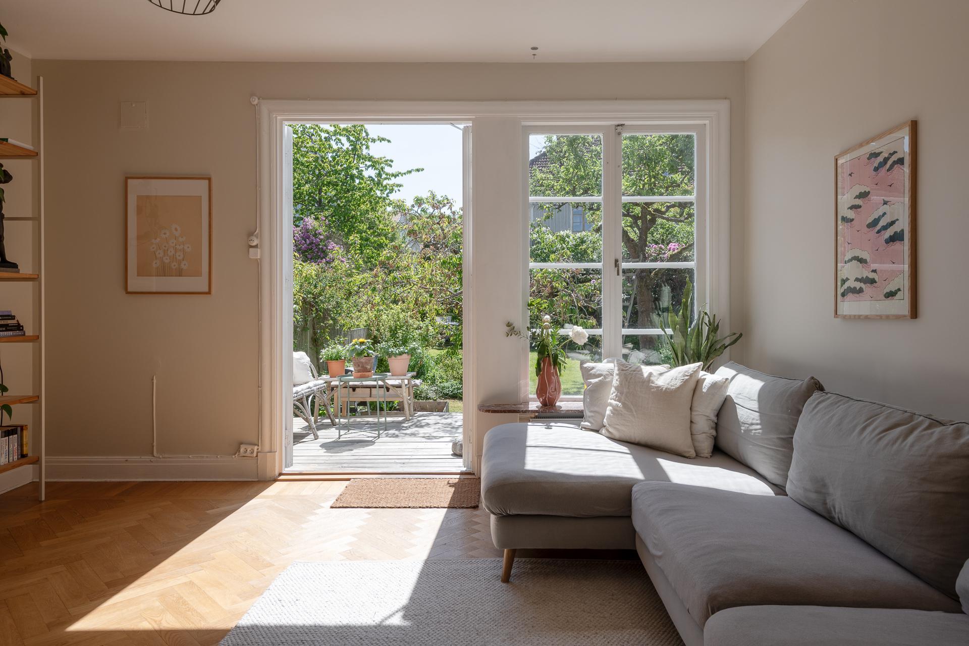 Våren spirar i ett av Göteborgs mest pastelliga områden, Änggården. Här ligger den här grönskande trean med trädgård! Till lägenheten hör också ett rum som kan hyras ut. Vardagsrummet har originalgolv, tjusiga handblåsta fönster, takrosett och dubbeldörrar som leder ut i den otroliga trädgården. Här växer fruktträd och bärbuskar och du har en egen uteplats för härliga middagar. Nämnde vi det soliga läget? Inte? Då gör vi det nu!