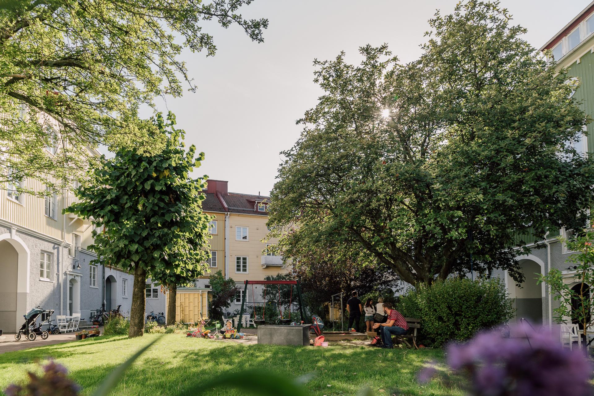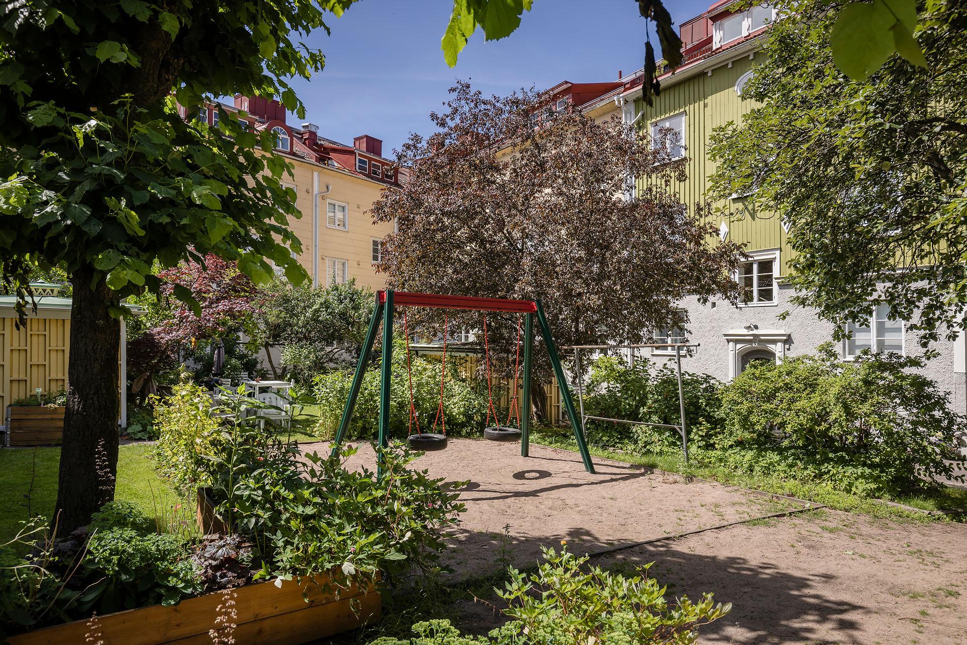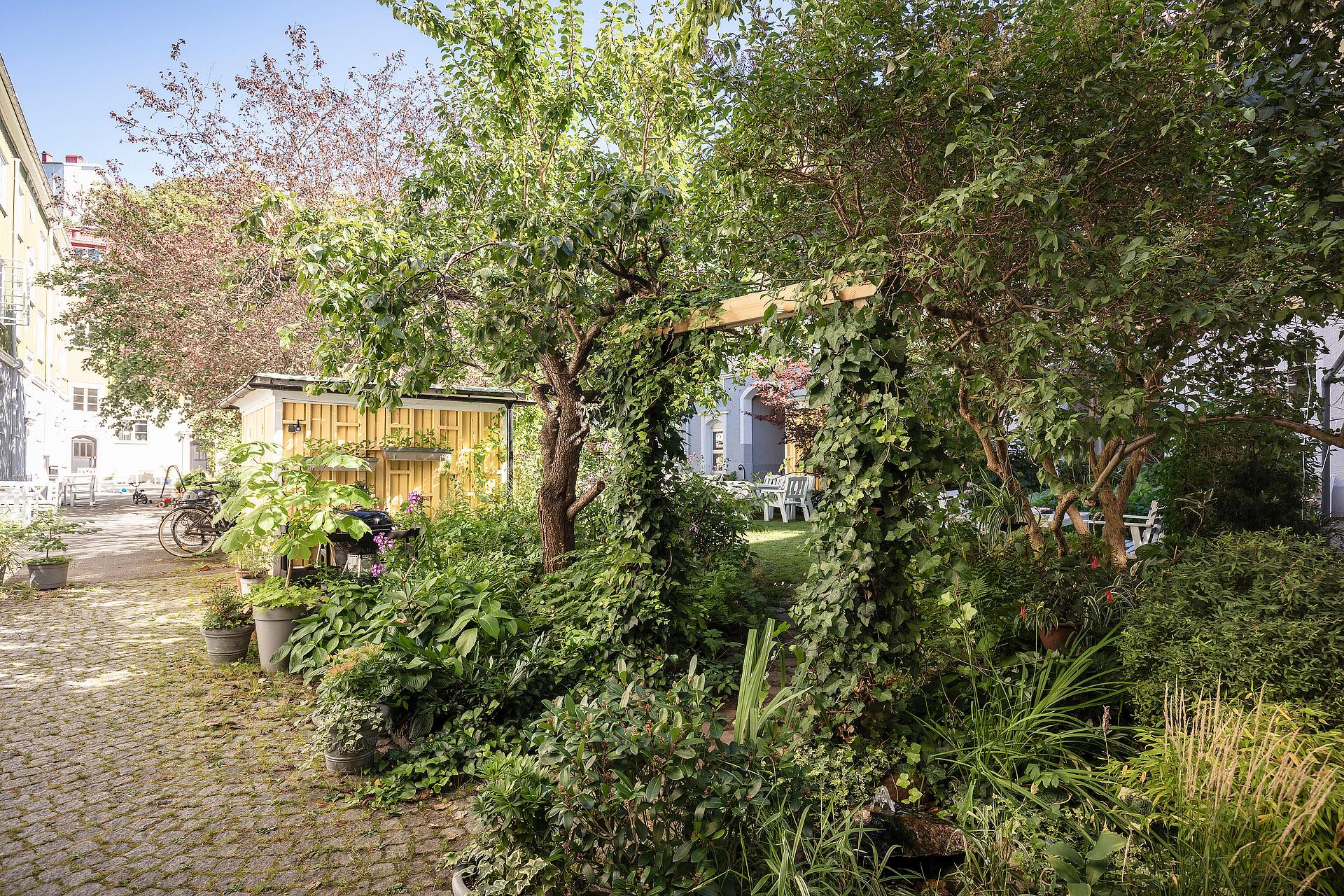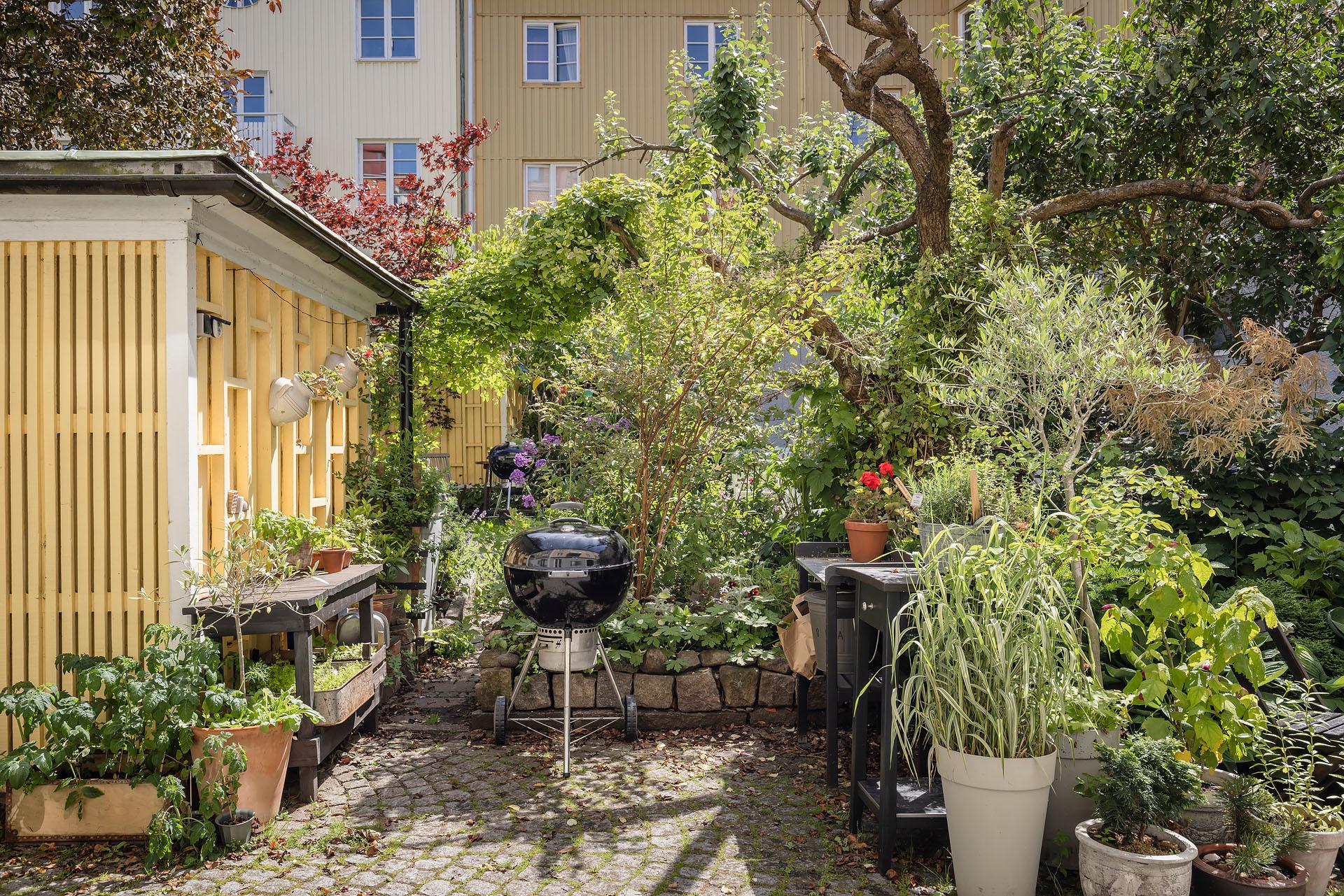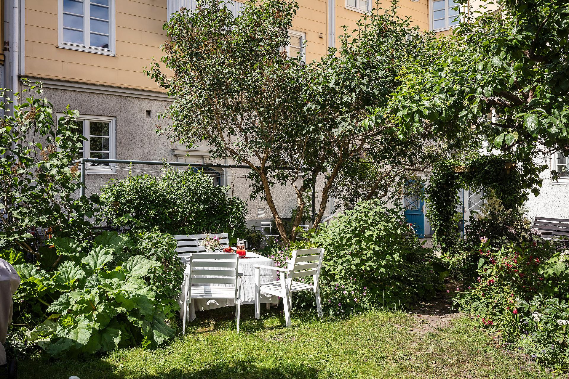 - Balkong/Uteplats: Nej. Underbar, grönskande innergård med gemensamma utemöbler.