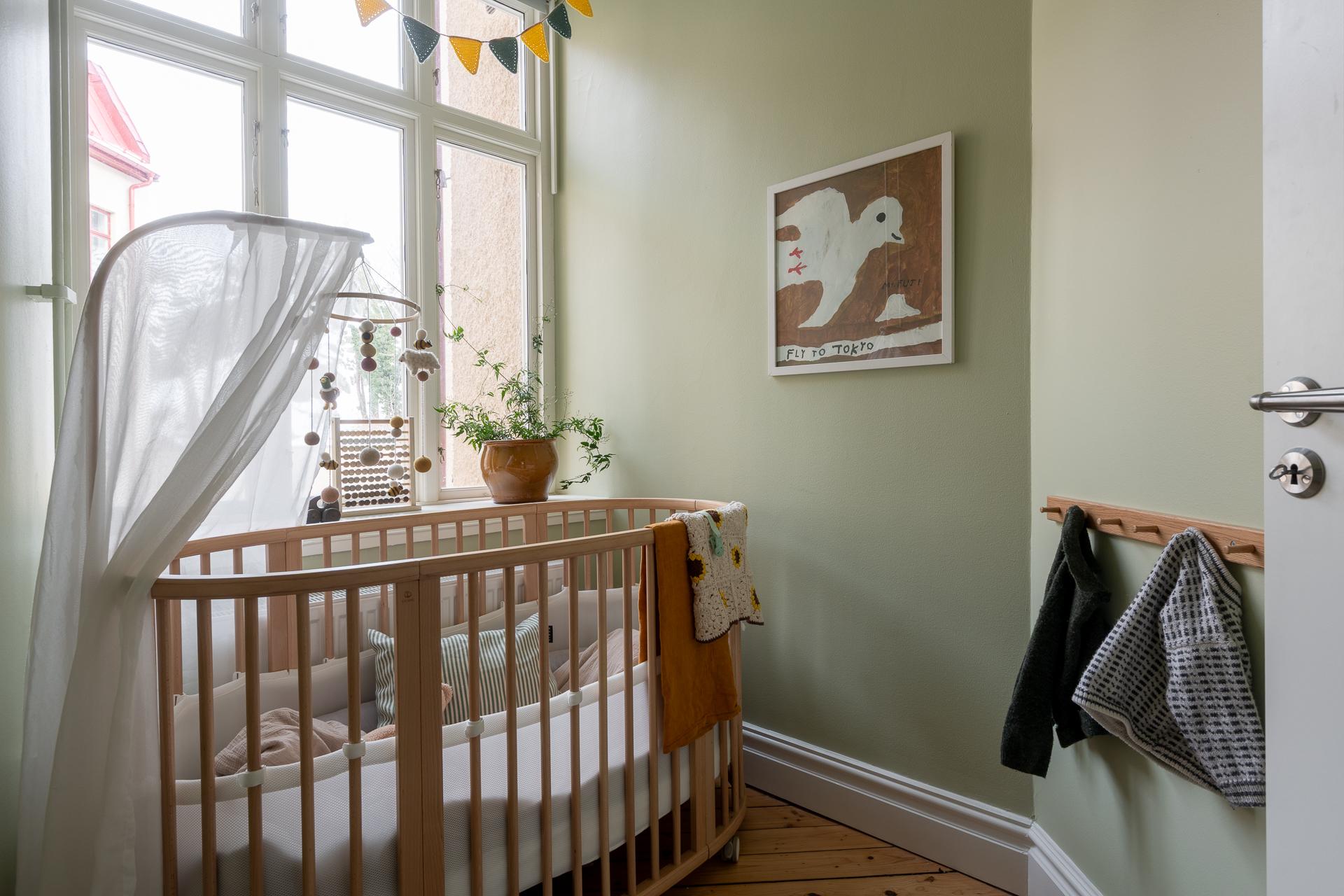 Intill köket ligger bostadens flexibla lilla rum. Nuvarande ägare har skapat detta genom att ta en del av köket – smart planerat för att rymma en 90-säng och förvaring. Perfekt som barnrum, gästrum eller hemmakontor. Önskar du ett större kök igen? Då kan rummet enkelt återställas. Väggen är varsamt uppsatt för att minimera påverkan på golvet.