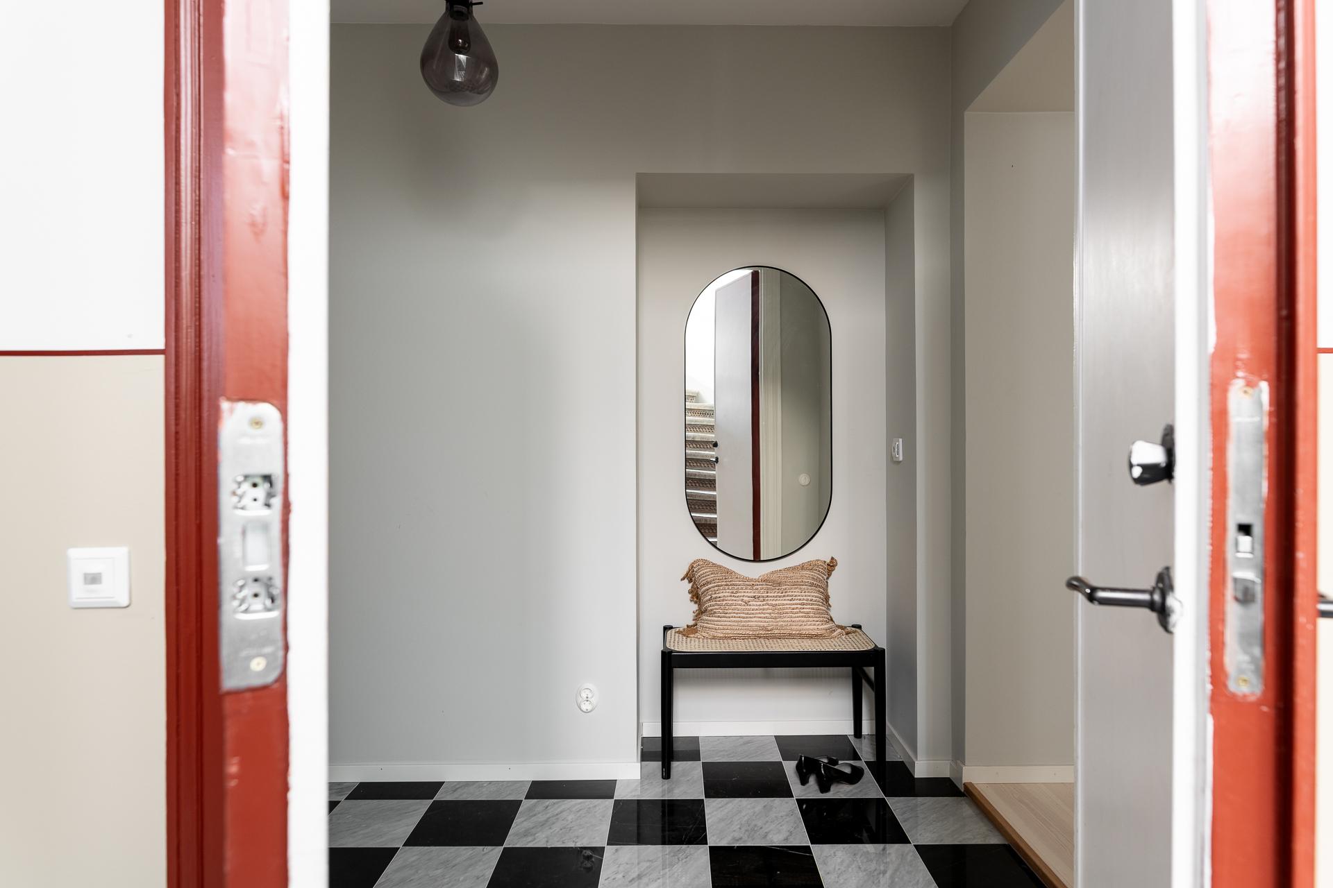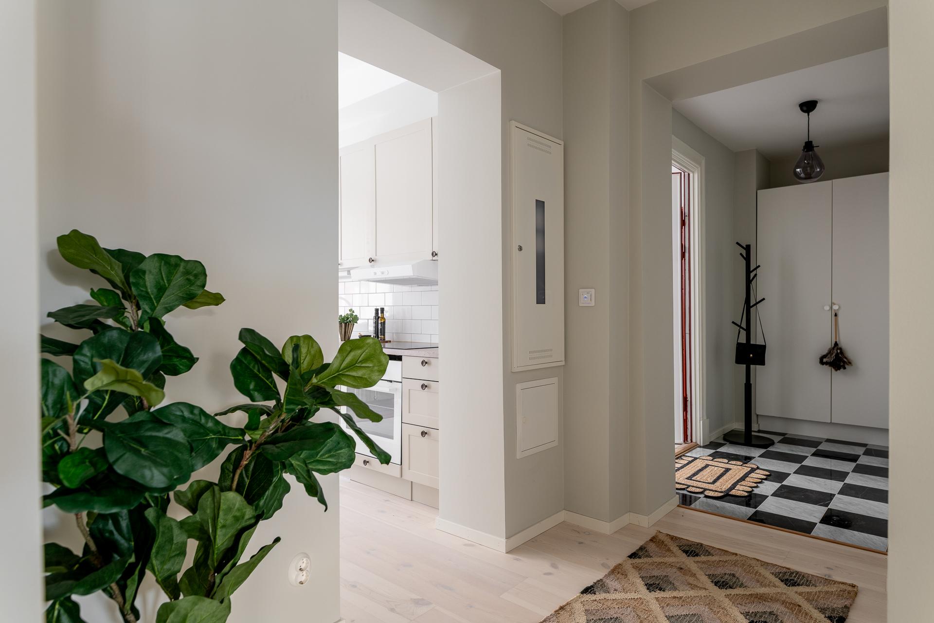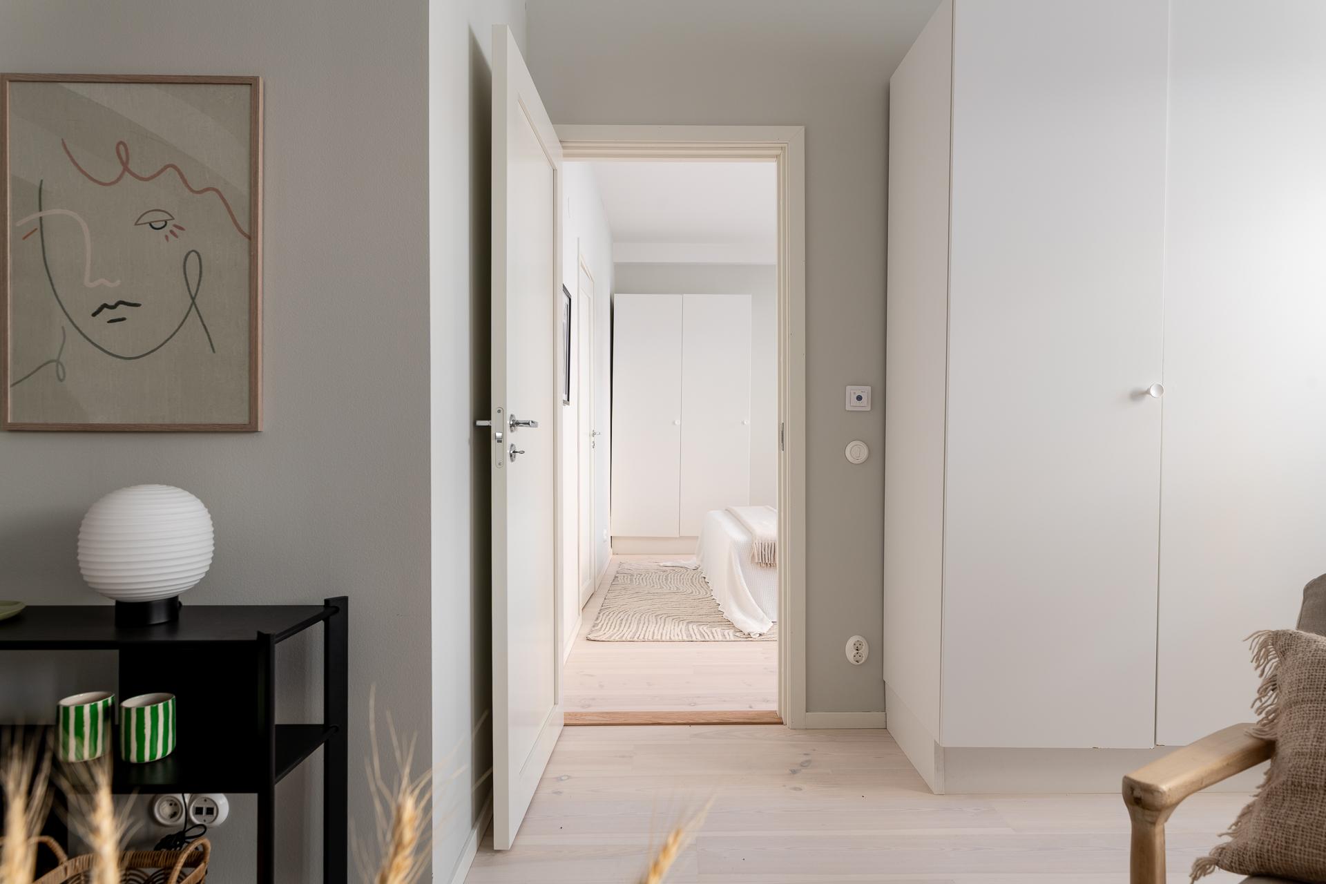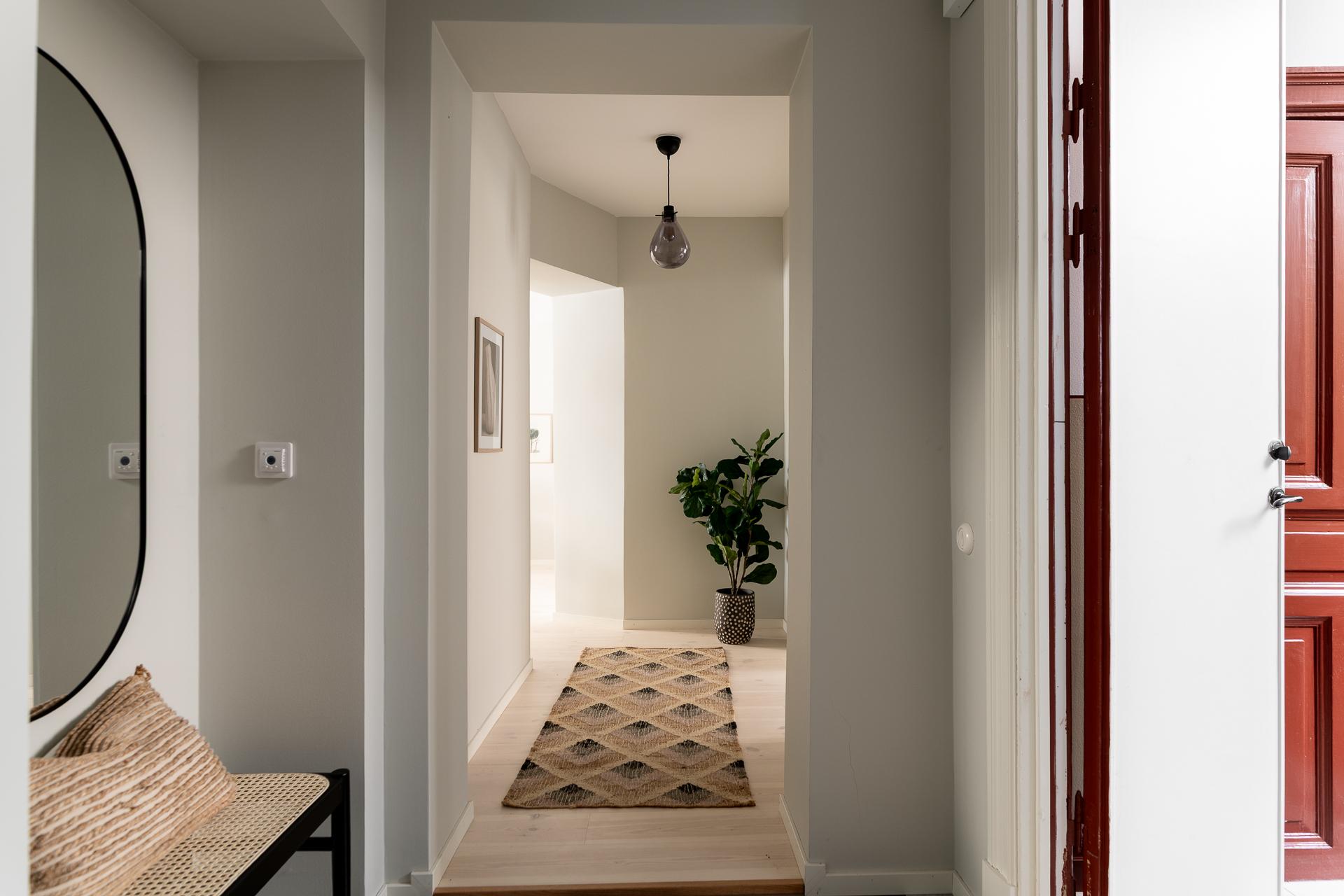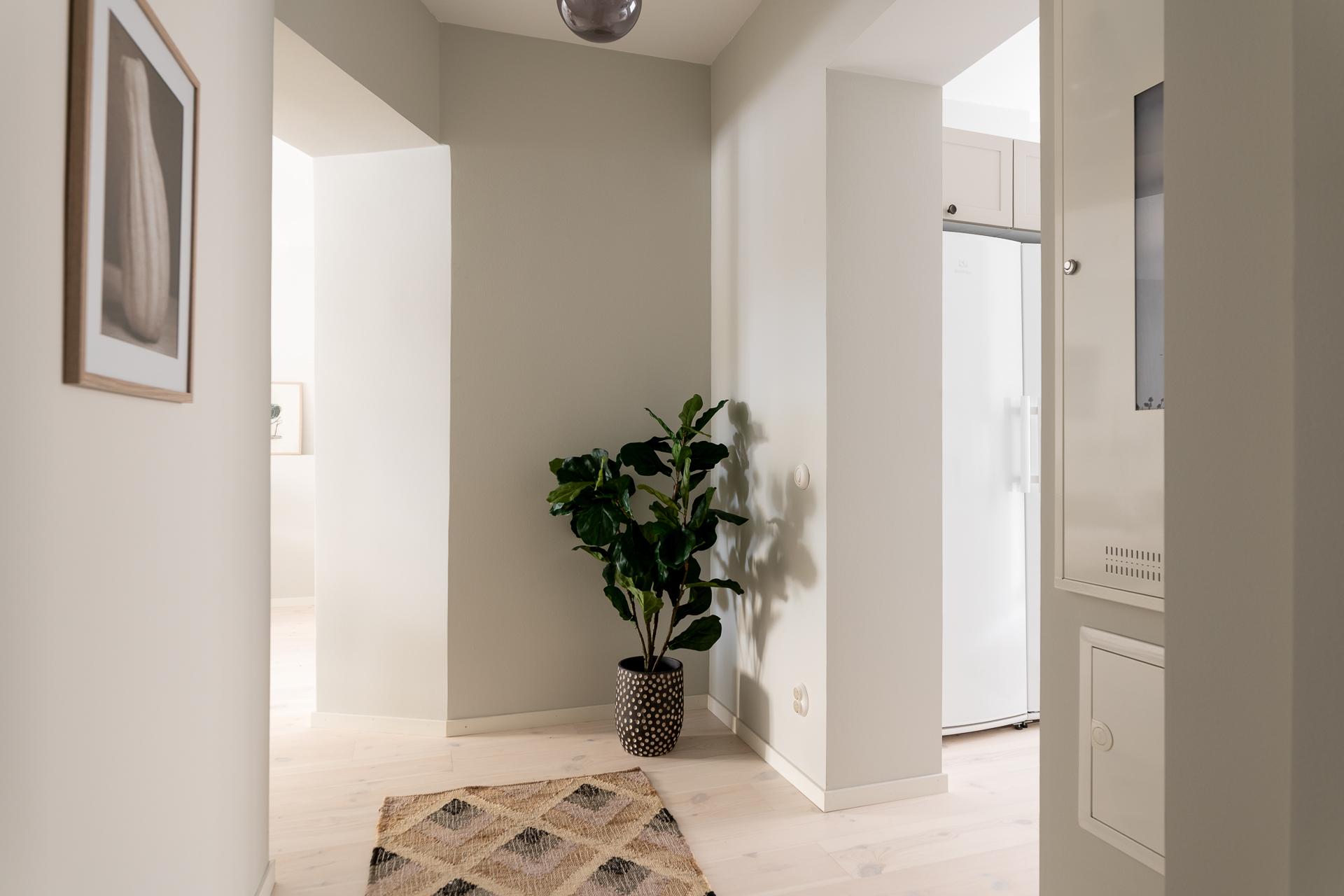 Redan när du kliver in möts du av en rymlig och välkomnande hall som sätter tonen för resten av bostaden. Här finns gott om plats för avhängning och förvaring, och den genomtänkta planlösningen gör att ytan känns både praktisk och inbjudande – en naturlig plats att landa på efter dagens alla intryck.
