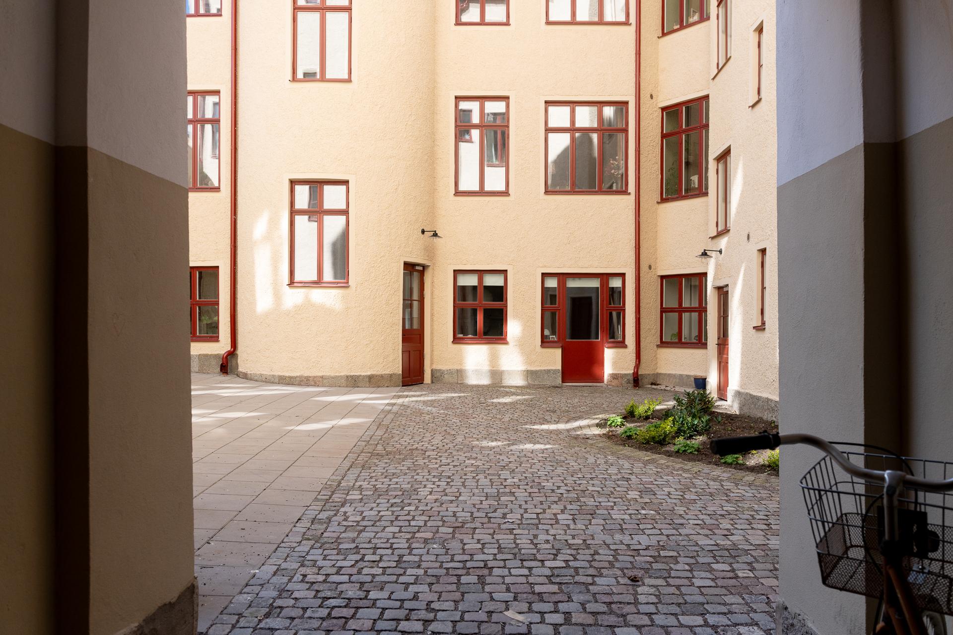 -Nytt fastighetsförråd i entréplanet som nås från innergården.