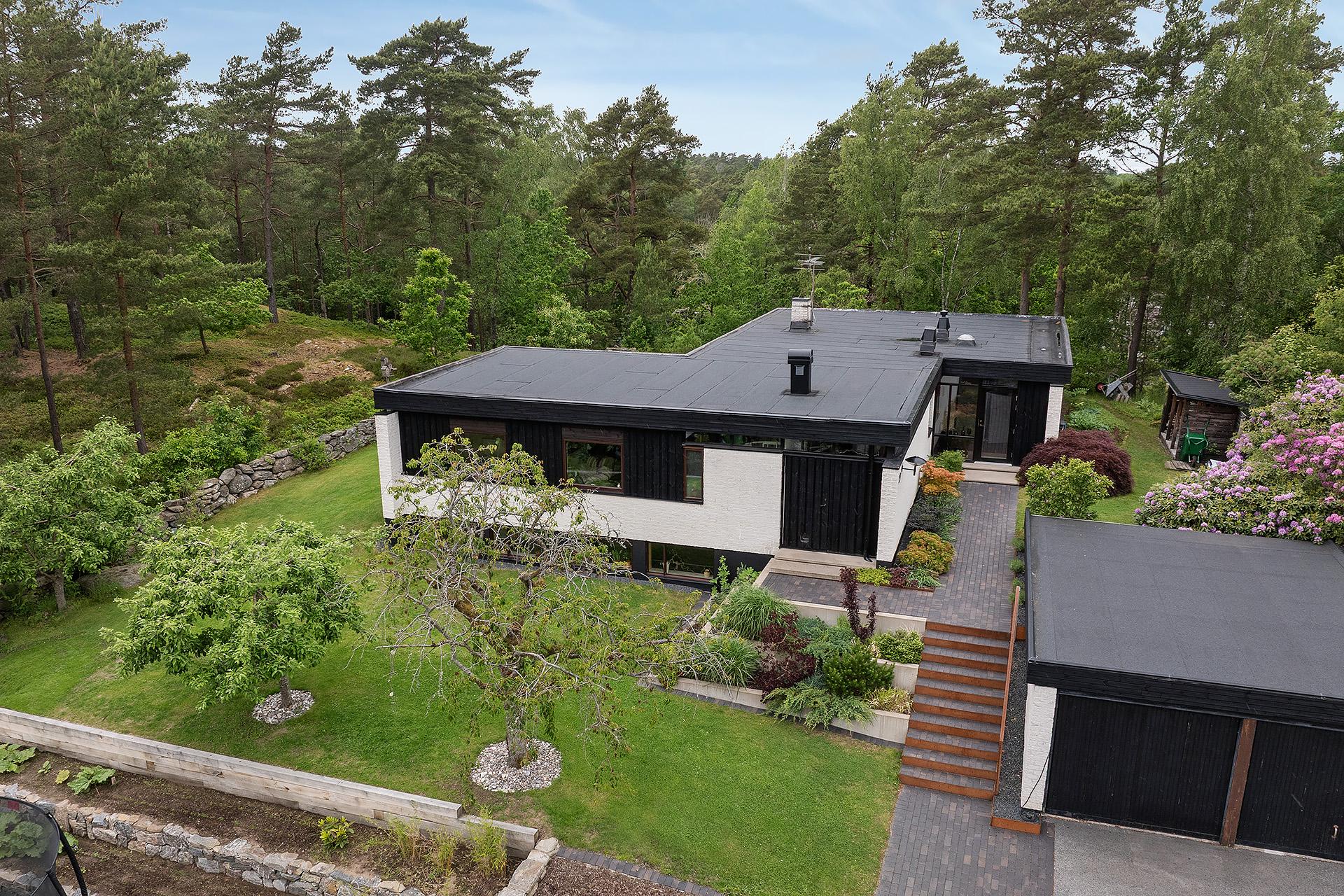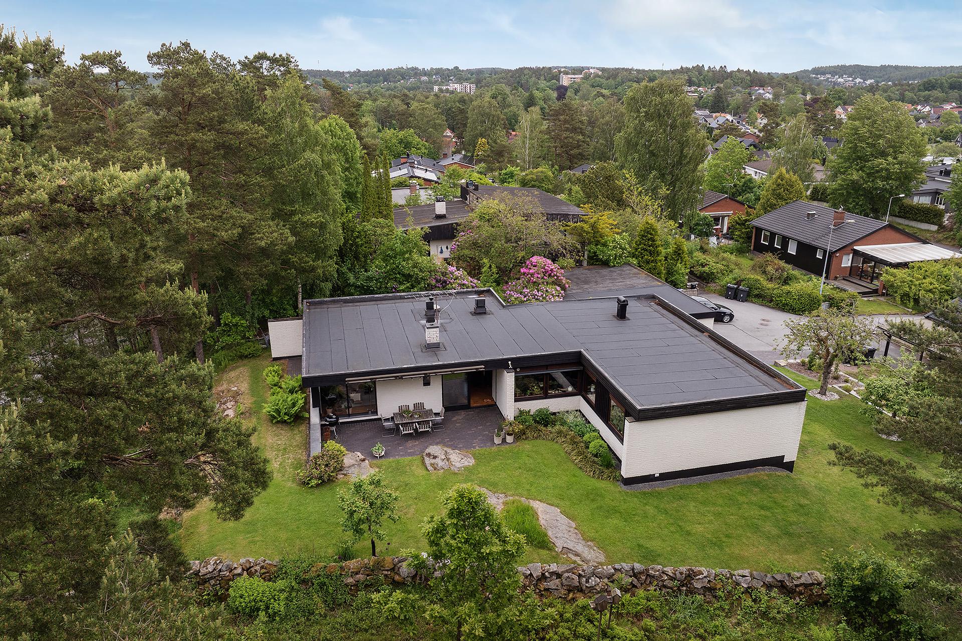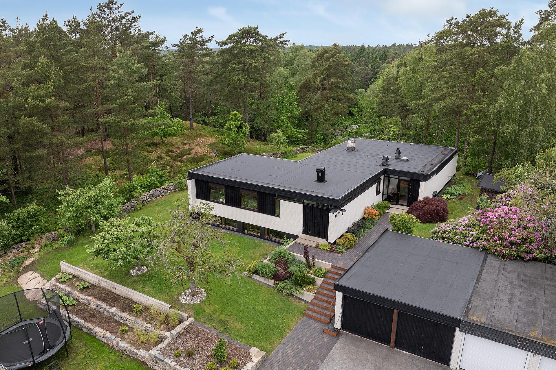 Den danske arkitekten Tage Steffensen ritade och lät bygga denna modernistiska villa till sig själv 1968. Nuvarande ägare har varsamt förädlat byggnaden ytterligare till den arkitektoniska pärla som den är idag. Läget är också det allra bästa, längst in på en återvändsgata och bokstavligen granne med naturen. Huset har en trivsam och flexibel planlösning med 4-5 möjliga sovrum och härliga sociala ytor. En vacker och spännande naturtomt. Dubbelgarage med parkering framför. Förbesiktning är utförd och tillträde sker enligt överenskommelse. Velkommen til at læse mere om Steffensens mesterværk på Basunvägen 19!