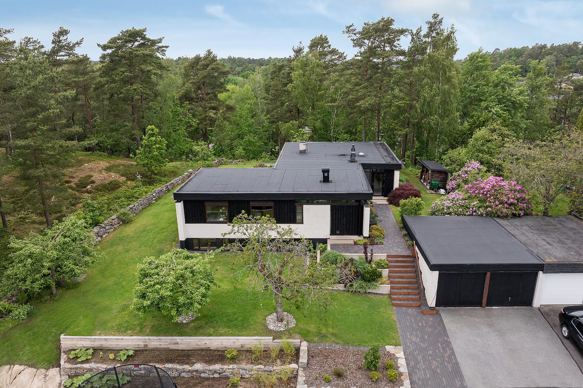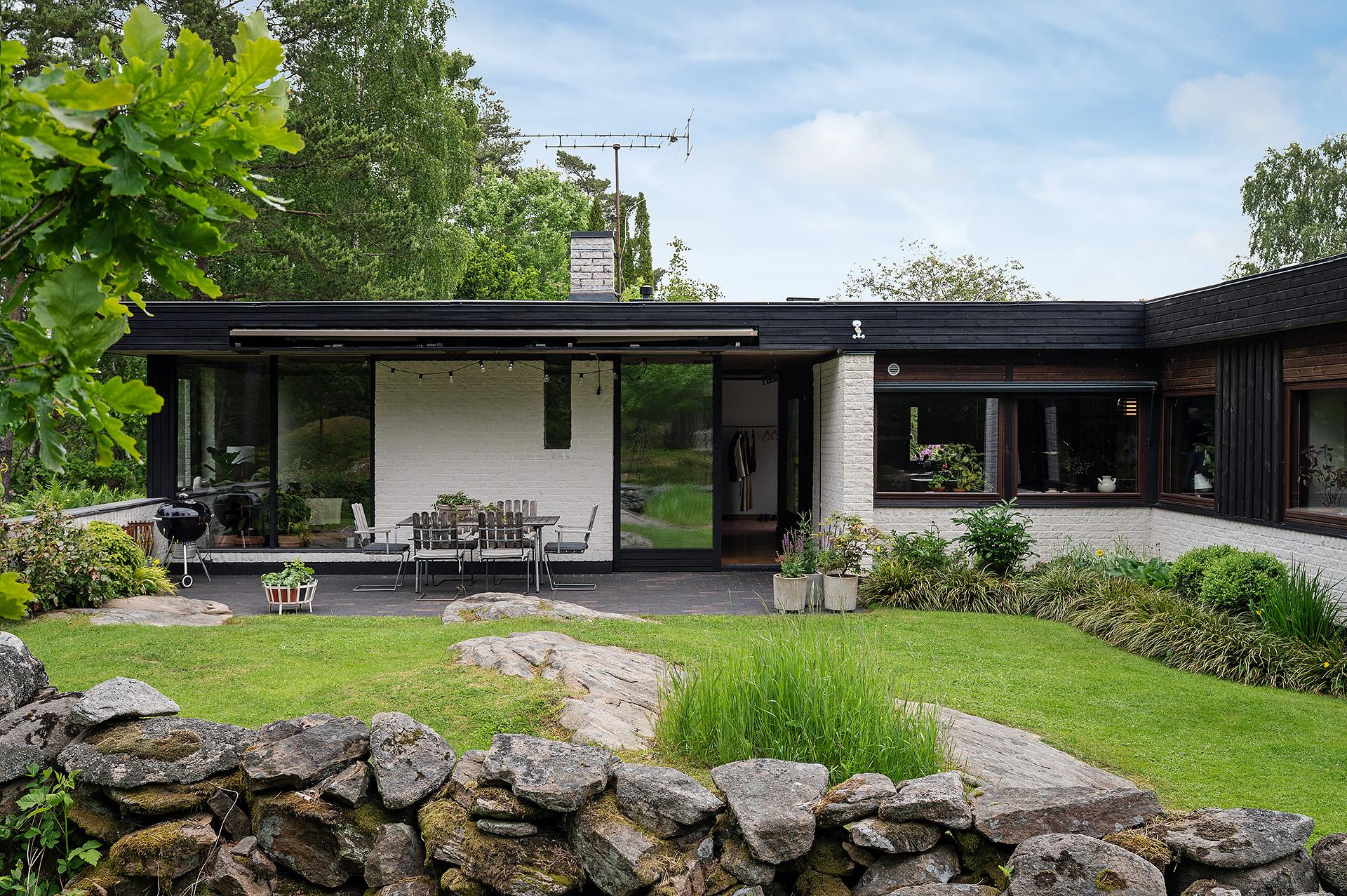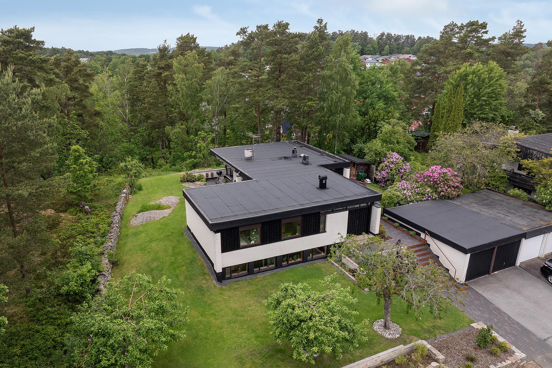 Den danske arkitekten Tage Steffensen ritade och lät bygga denna modernistiska villa till sig själv 1968. Nuvarande ägare har varsamt förädlat byggnaden ytterligare till den arkitektoniska pärla som den är idag. Läget är också det allra bästa, längst in på en återvändsgata och bokstavligen granne med naturen. Huset har en trivsam och flexibel planlösning med 4-5 möjliga sovrum och härliga sociala ytor. En vacker och spännande naturtomt. Dubbelgarage med parkering framför. Förbesiktning är utförd och tillträde sker enligt överenskommelse. Velkommen til at læse mere om Steffensens mesterværk på Basunvägen 19!
