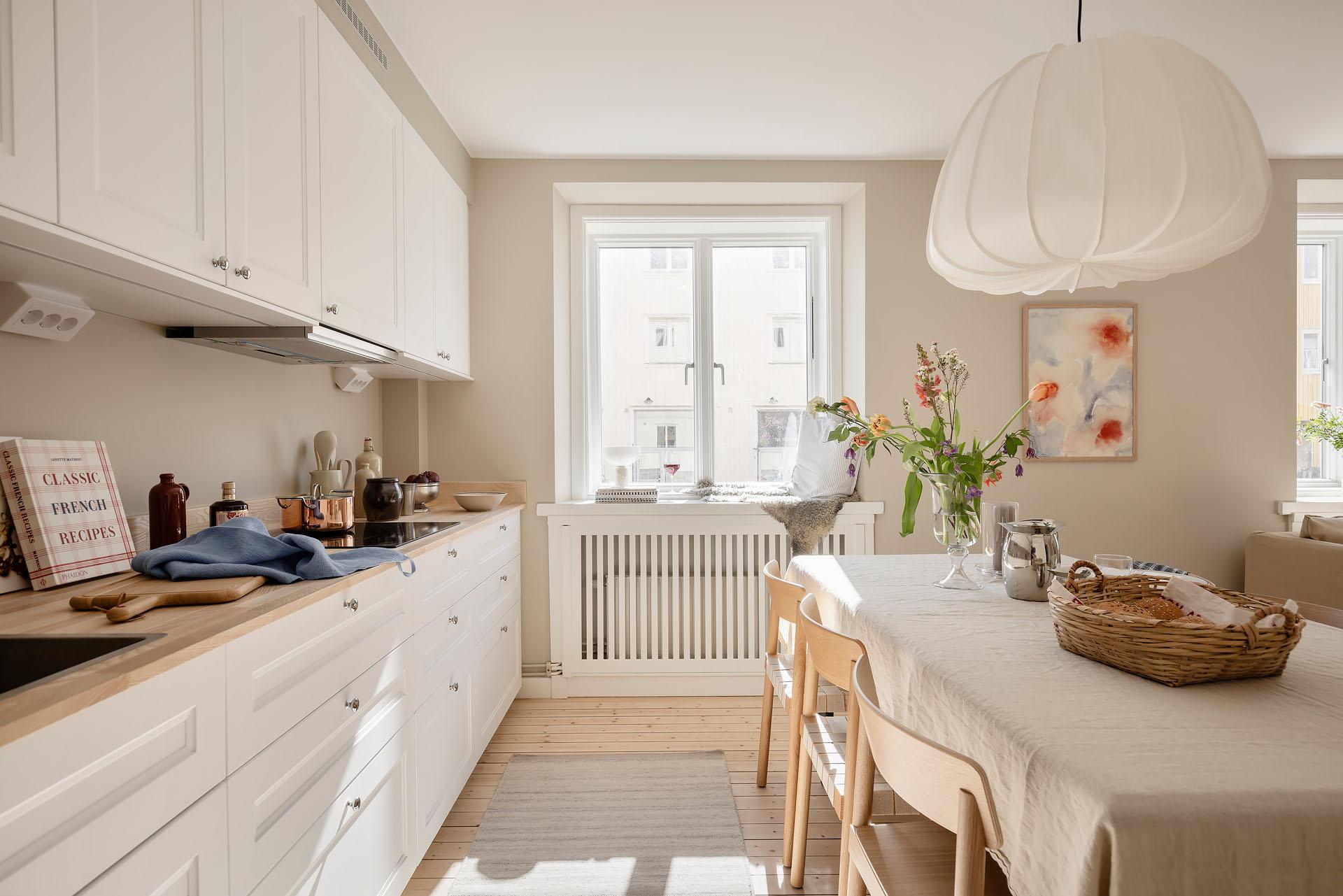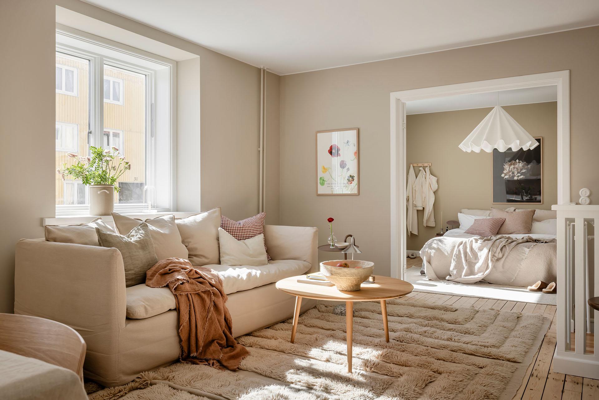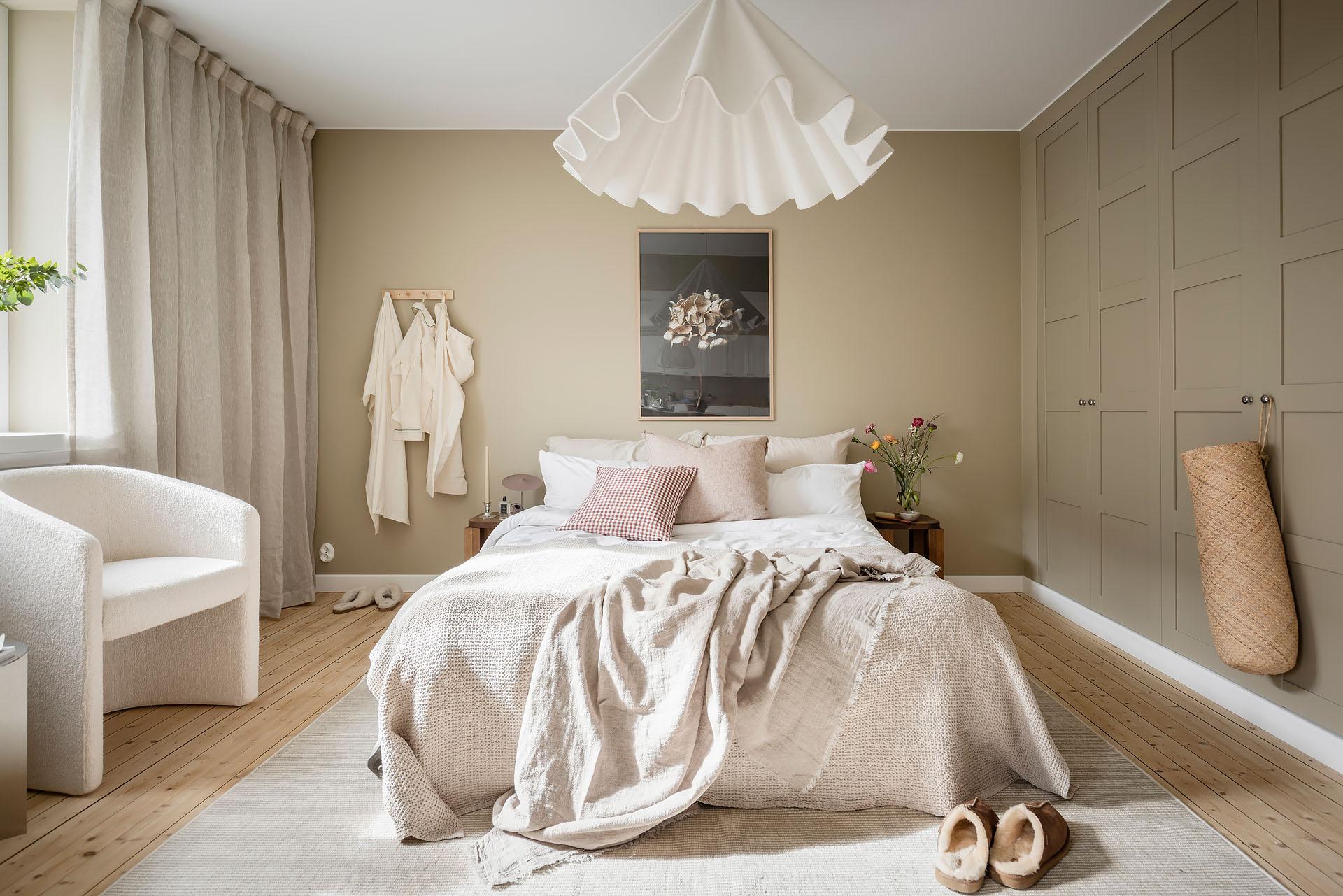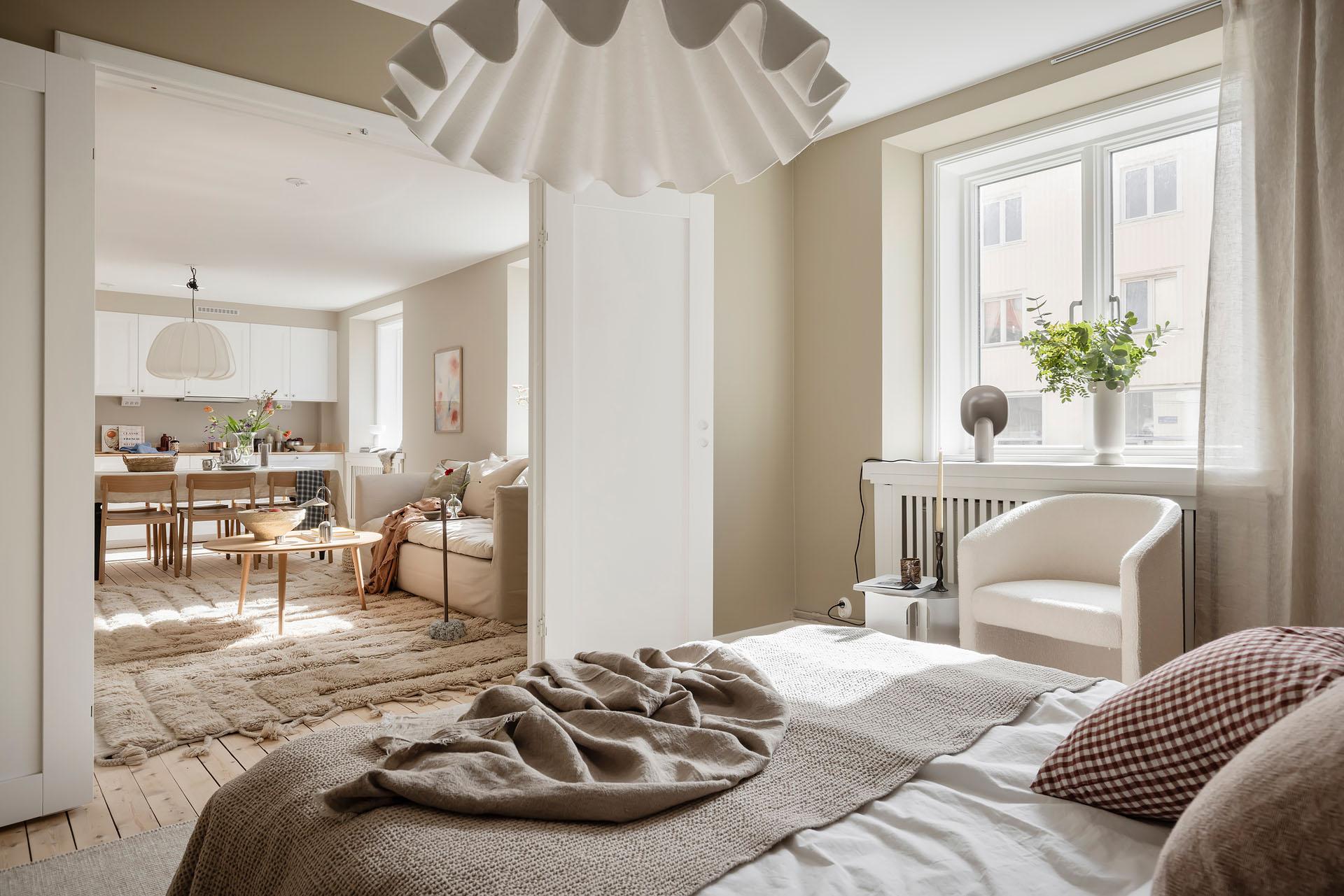 Det är lätt att föreställa sig en långsam helgmorgon här, hur ljuset letar sig in och hur man i lugn och ro vaknar till ljudet av morgonbestyr från köket och doften av nybryggt kaffe som någon mer morgonpigg redan tagit hand om.