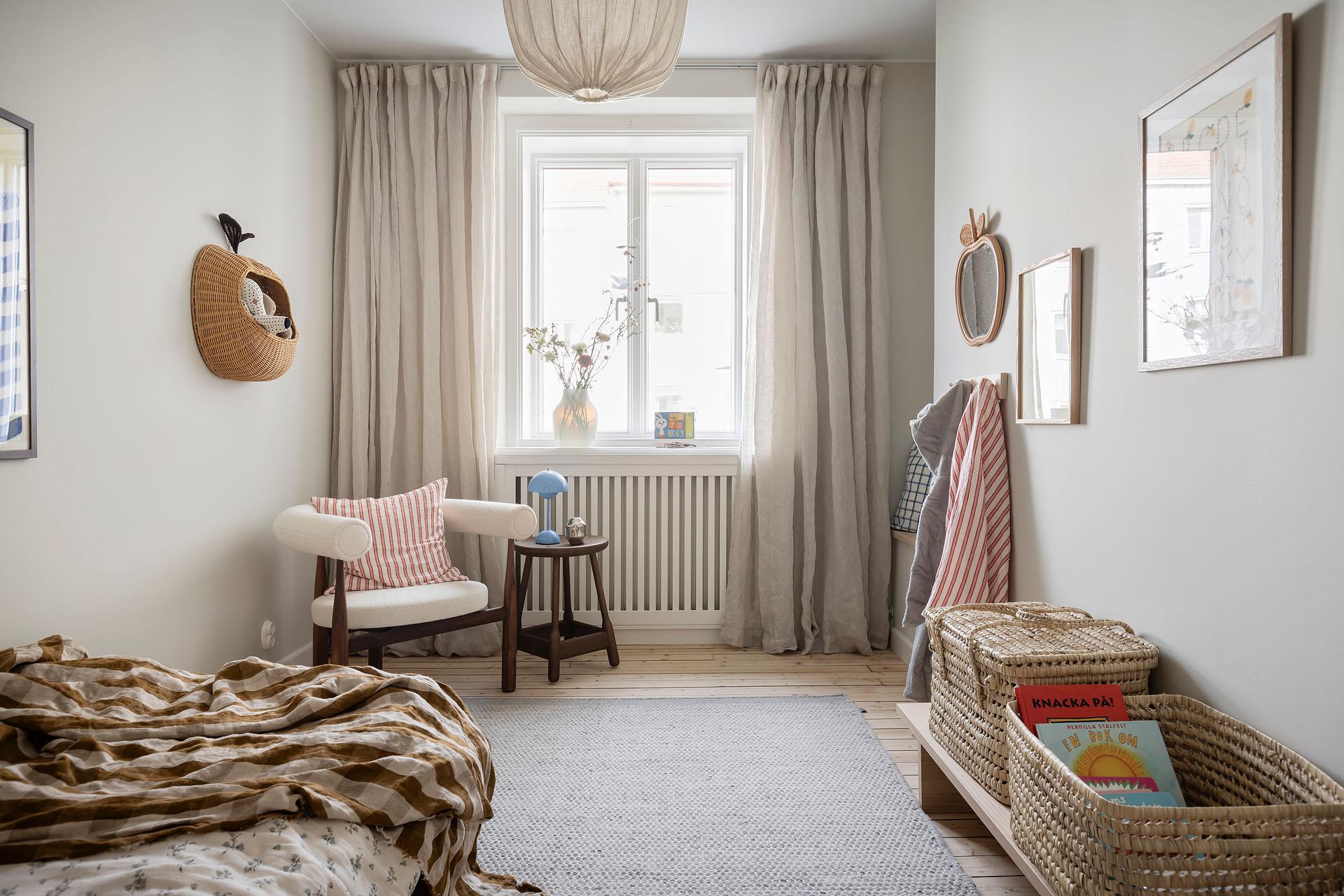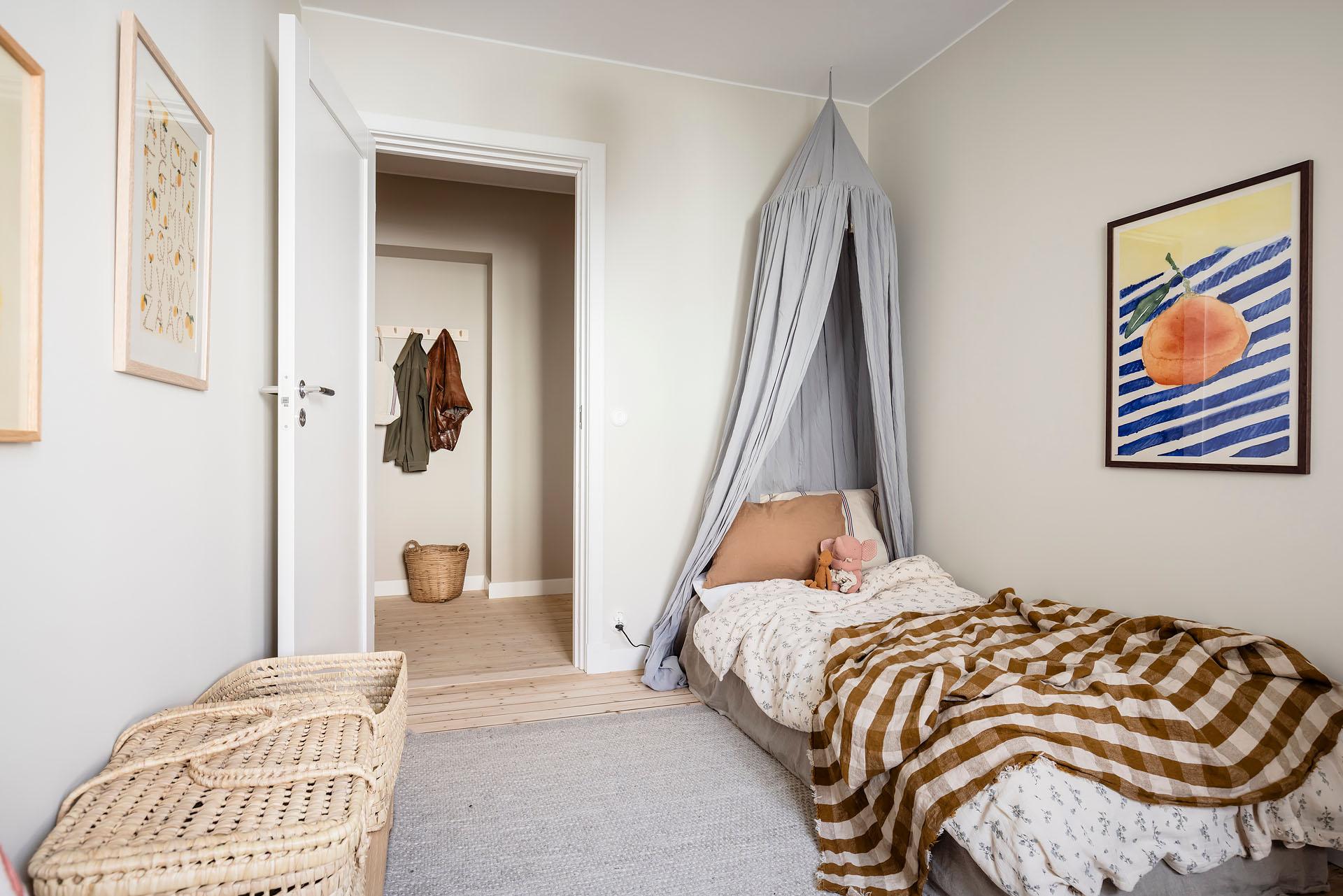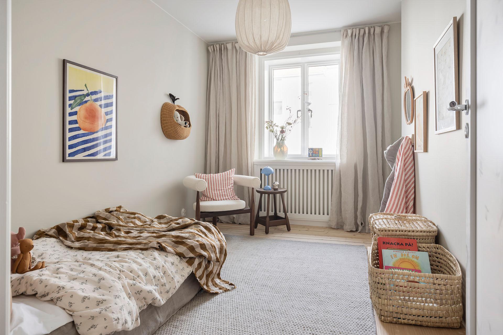 Ett rogivande och lättmöblerat rum som passar lika bra som barnrum, gästrum eller arbetsrum. Ljust och trivsamt med samma fina materialval som övriga bostaden.