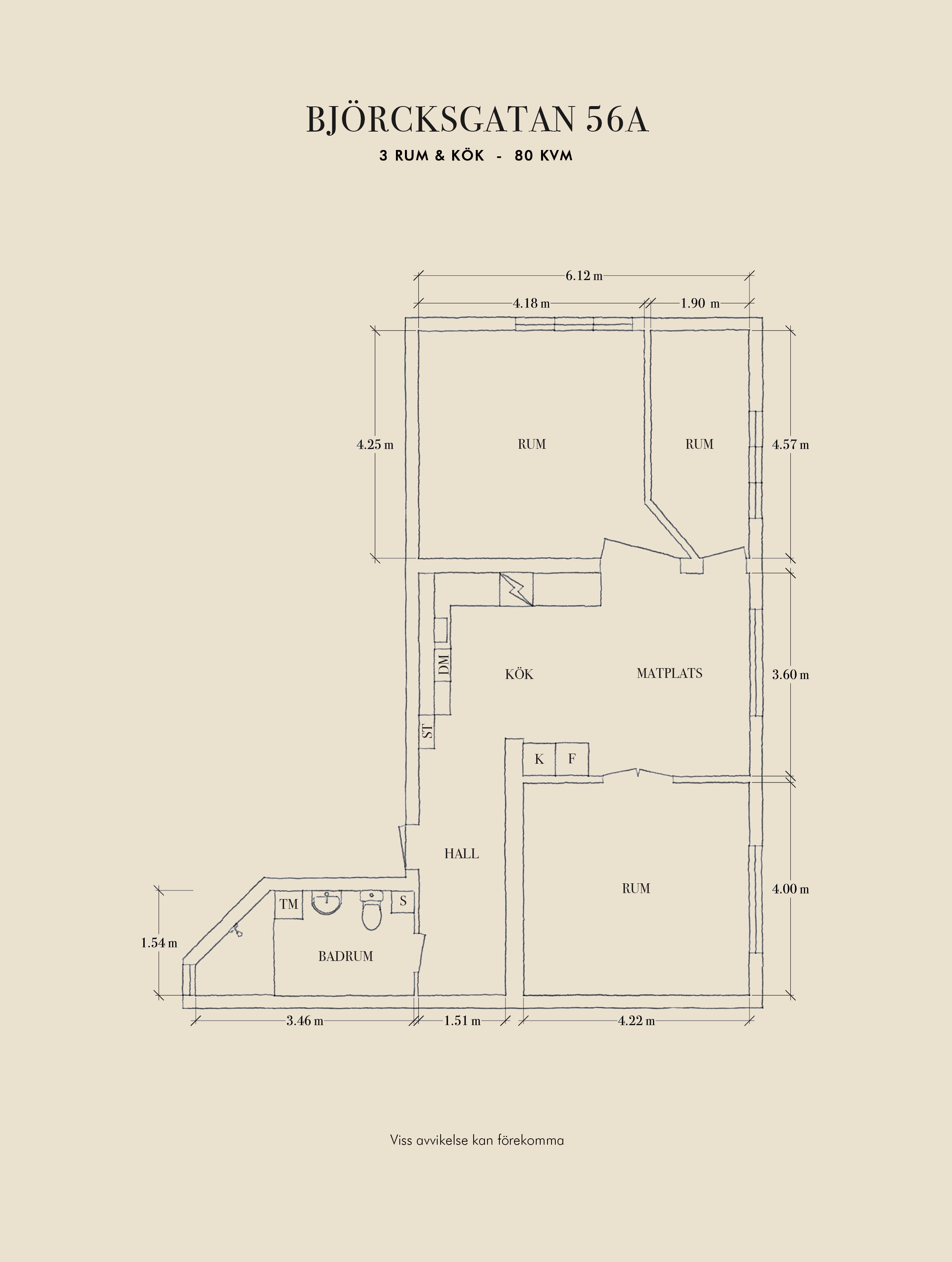 En ljuvlig trea i mycket fint skick med sällskapsvänlig planlösning, pardörrar, och stora fönster i fördelaktiga väderstreck. Här är det bara att flytta in och trivas direkt. Läget på Björcksgatan 56 är ett av Kålltorps bästa. Helt ostört men med lekplats, Delsjöområdet, små verksamheter, matbutik och spårvagn runt hörnet. Föreningen sköts med omsorg och har låg belåning, och bredband ingår i avgiften.