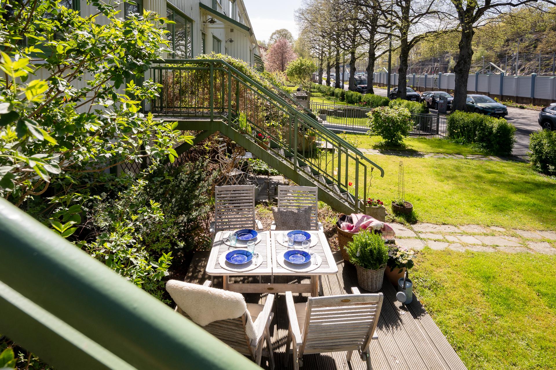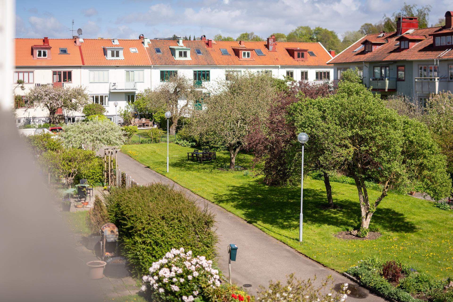 Våren står i full blom i Änggårdens prunkande och grönskande trädgårdar. Nu har du chansen att köpa en tvåa, som kan göras till en trea, med nyrenoverade ytskikt med noga genomförda detaljeringar, nyslipad fiskbensparkett och renoverat badrum i marmor. Med en egen uteplats i väster och en balkong i öster kan du bo i en lägenhet som många liknar med ett radhus precis invid Änggårdsbergens populära friluftspår men ändå är du bara en kort promenad från Linnéstaden och Slottskogen. Det här är ett läge för dig som vill bo väldigt centralt men i ett villaområde. Den separata entrén från den egna uteplatsen tar dig in i en rymlig tvåa i fint skick. Många grannar har flyttat köket och därmed fått ett andra sovrum och skapat en trea. Föreningen är historiskt sett otroligt stabil och har det mesta att erbjuda. Stor gemensam trädgård, övernattningslägenheter, gym, trädgårdsförråd och hobbyrum är några av föreningens gemensamhetsutrymmen. Ta gärna ett varv runt huset för det här är någonting väldigt speciellt. Varmt välkommen på visning!