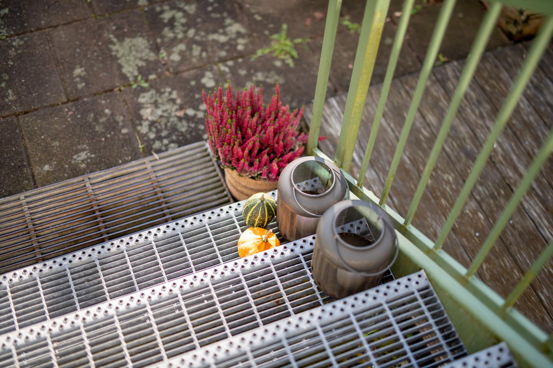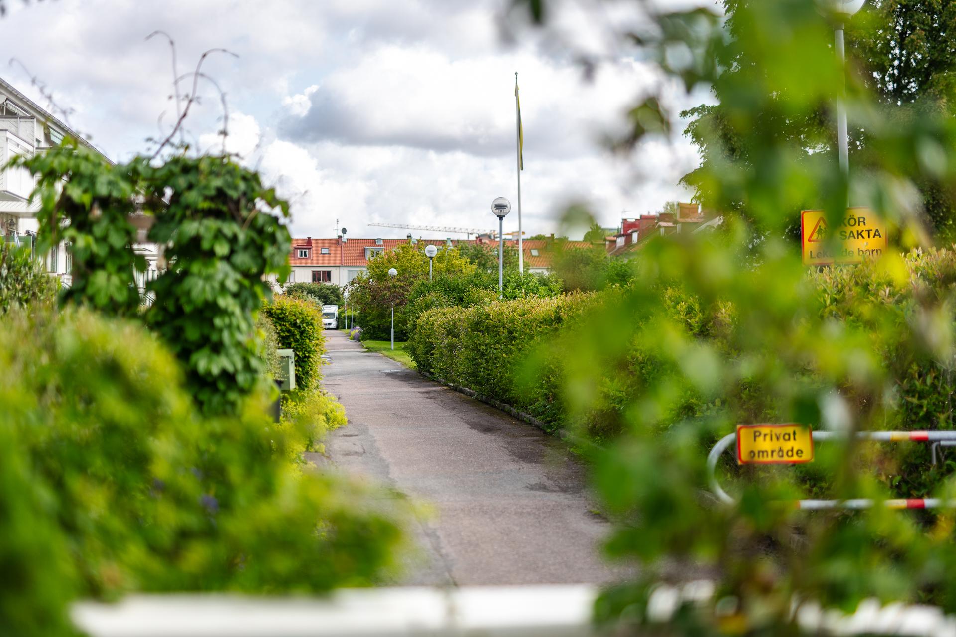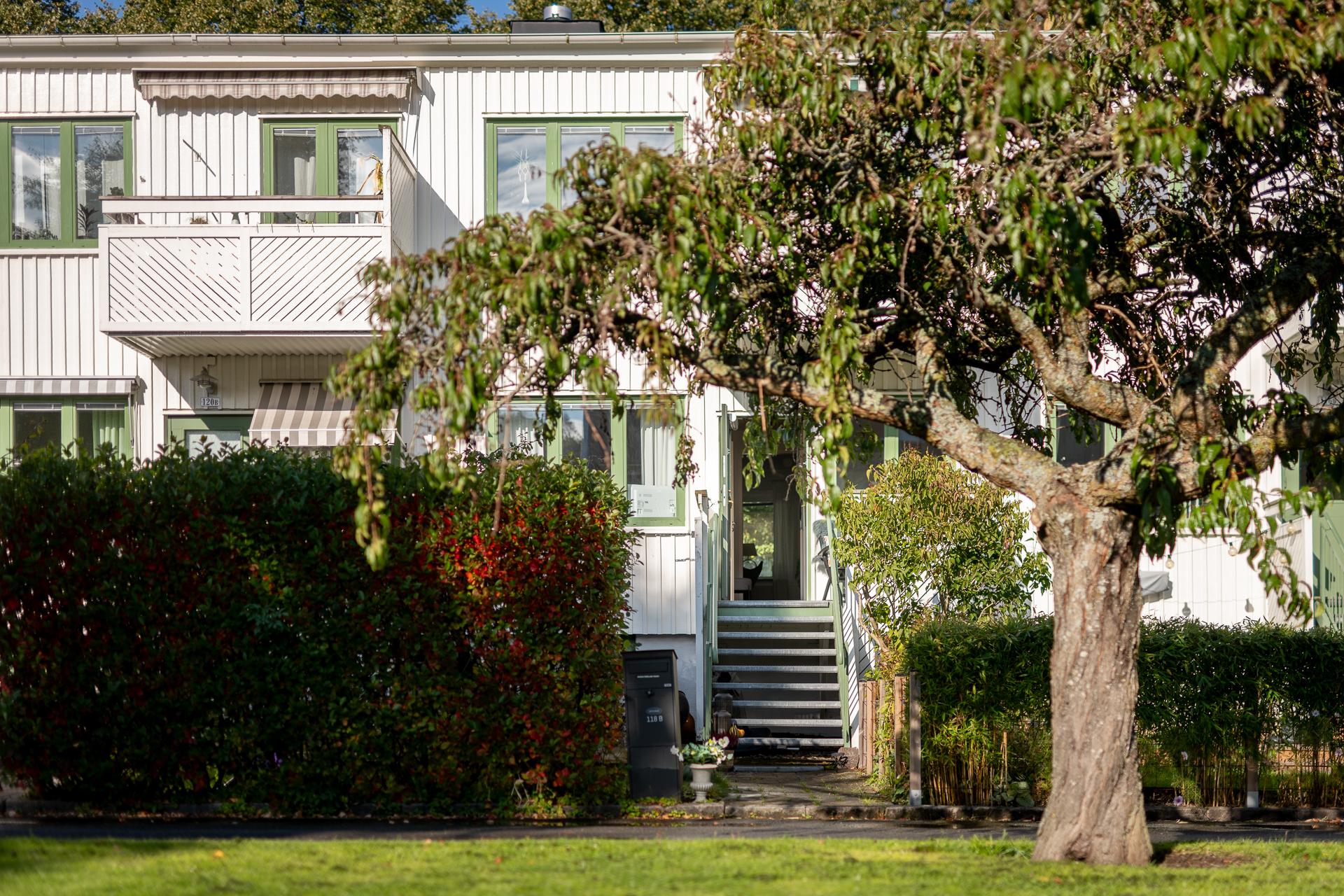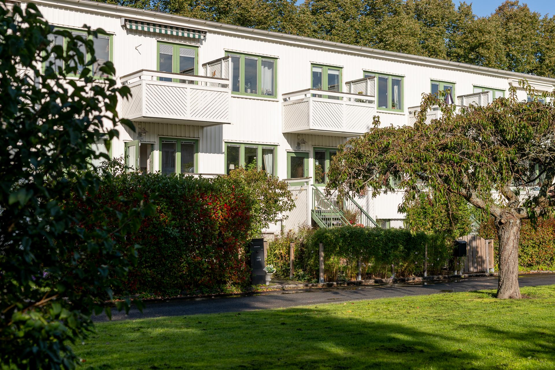 Föreningen äger marken och uteplatserna som är i anslutning till lägenheterna. I samråd med styrelsen och sina grannar bekostar man själv planteringar, inredning och trädäck och står själv för underhåll och återställning av dessa om föreningen exempelvis skulle behöva tillgång till husgrunden.
