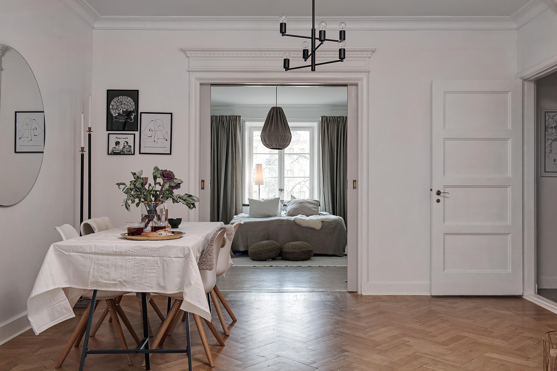 Eleganta tre rum och kök om 87 kvadratmeter, totalrenoverade med kärlek samt omtanke till byggnadens ursprung. Ett hem i fastighet signerad år 1929 med ett siktdjup mellan sovrum och vardagsrum på cirka 14 meter. Fiskbensparkett i original, framtagna vitbetsade brädgolv, pardörrar, serveringsskåp, takrosetter, djupa fönsternischer, ljuvliga listverk och stuckaturer, allt med typiskt 20-talssnitt. Carrera marmor och obehandlade mässingsdetaljer går som en tråd i hela hemmet. Ett osedvanligt rejält badrum med både badkar och förberett för egna tvättmöjligheter. Balkong in mot gården. Fungerande, vacker öppen spis. Exemplarisk förening med övernattningslägenhet. All närservice inom ett verkligt stenkast samt fantastiska kommunikationsmöjligheter, bokstavligen runt hörnet.