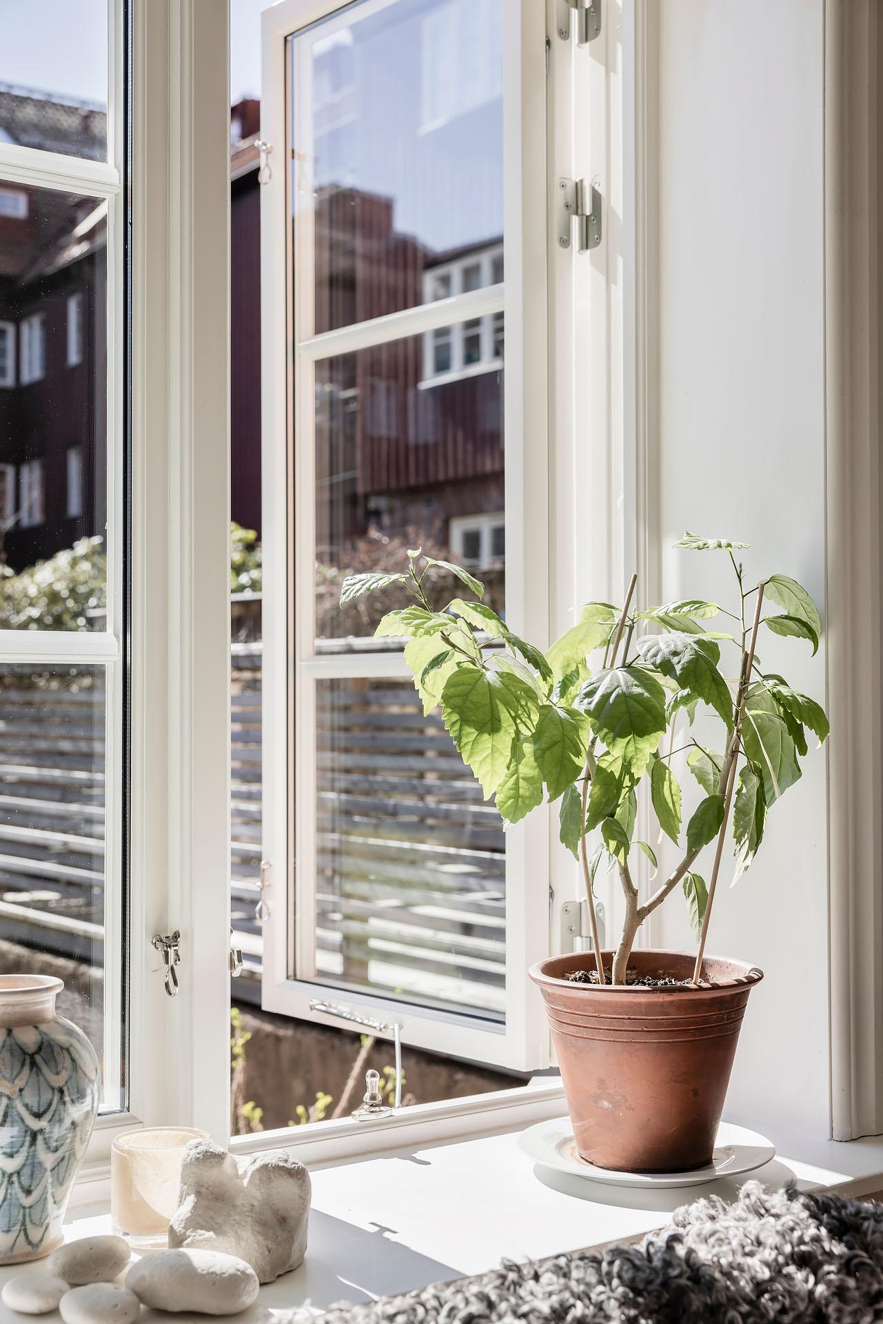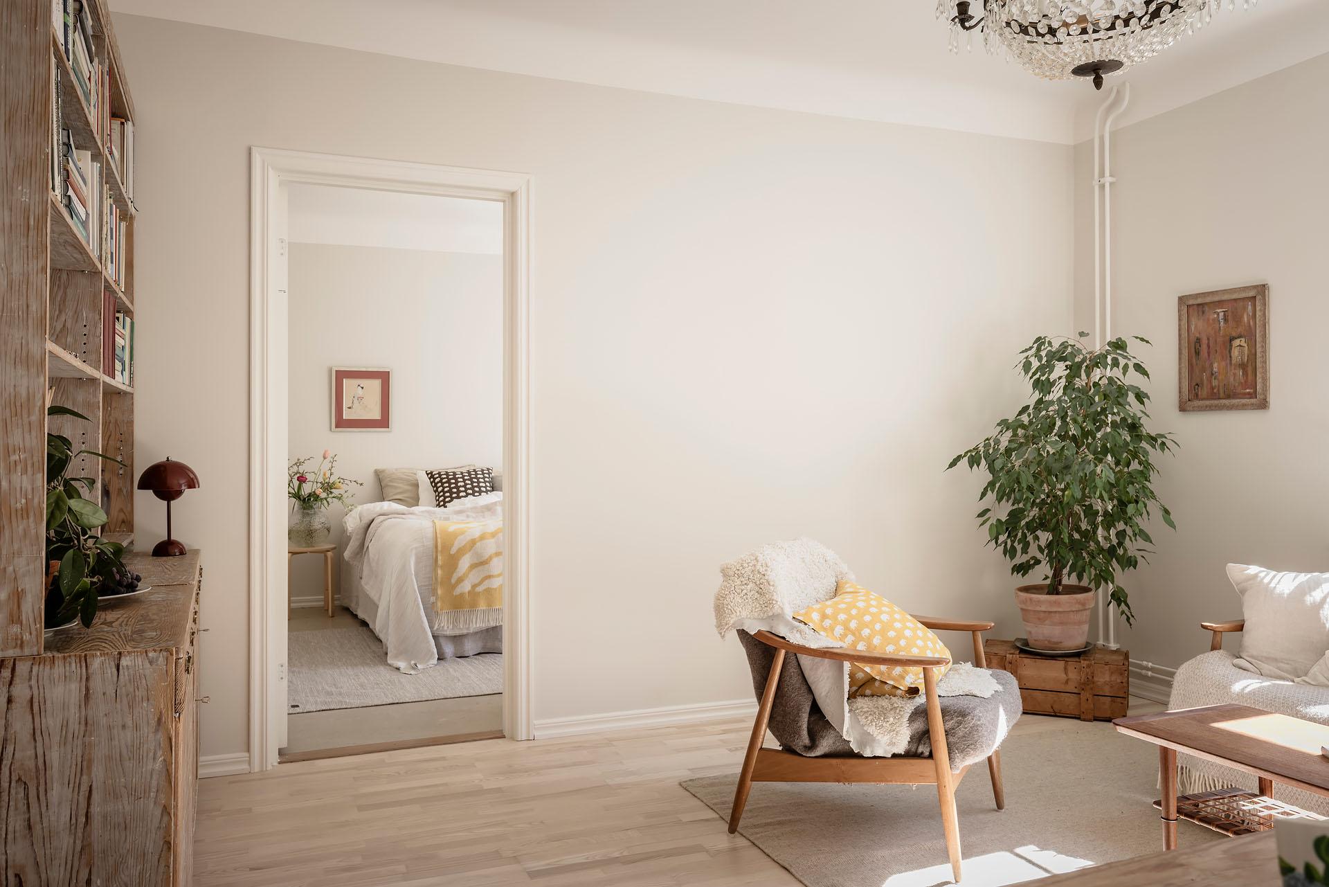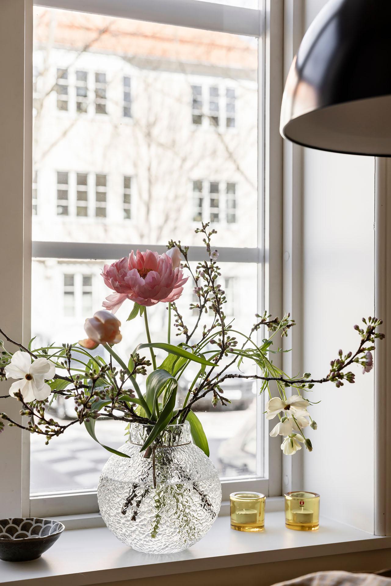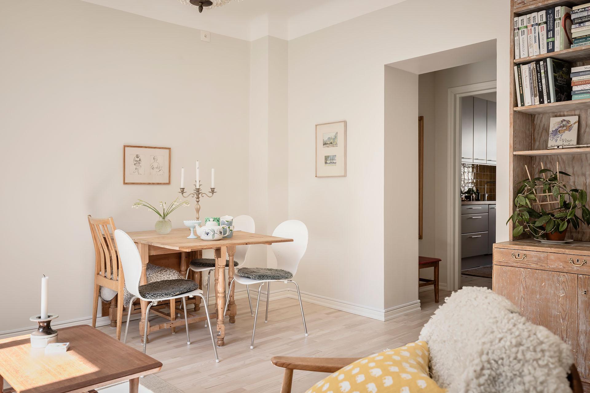 I hjärtat av Bagaregården, med ett tyst och ostört läge, ligger denna omsorgsfullt renoverade bostad med en känsla som är svår att slå. En halvtrappa upp, i husets murade del, möts du av djupa fönsternischer, gedigna väggar och ett fantastiskt ljusinsläpp från spröjsade fönster som vetter mot den lummiga, parkliknande innergården. Alla val, från material till färgnyanser, är noga övervägda. Vid renovering och återställande av takhöjd i vardagsrum och sovrum anlitades en stuckatör för att få till den klassiska rundningen där tak möter vägg, och återställa takrosetten