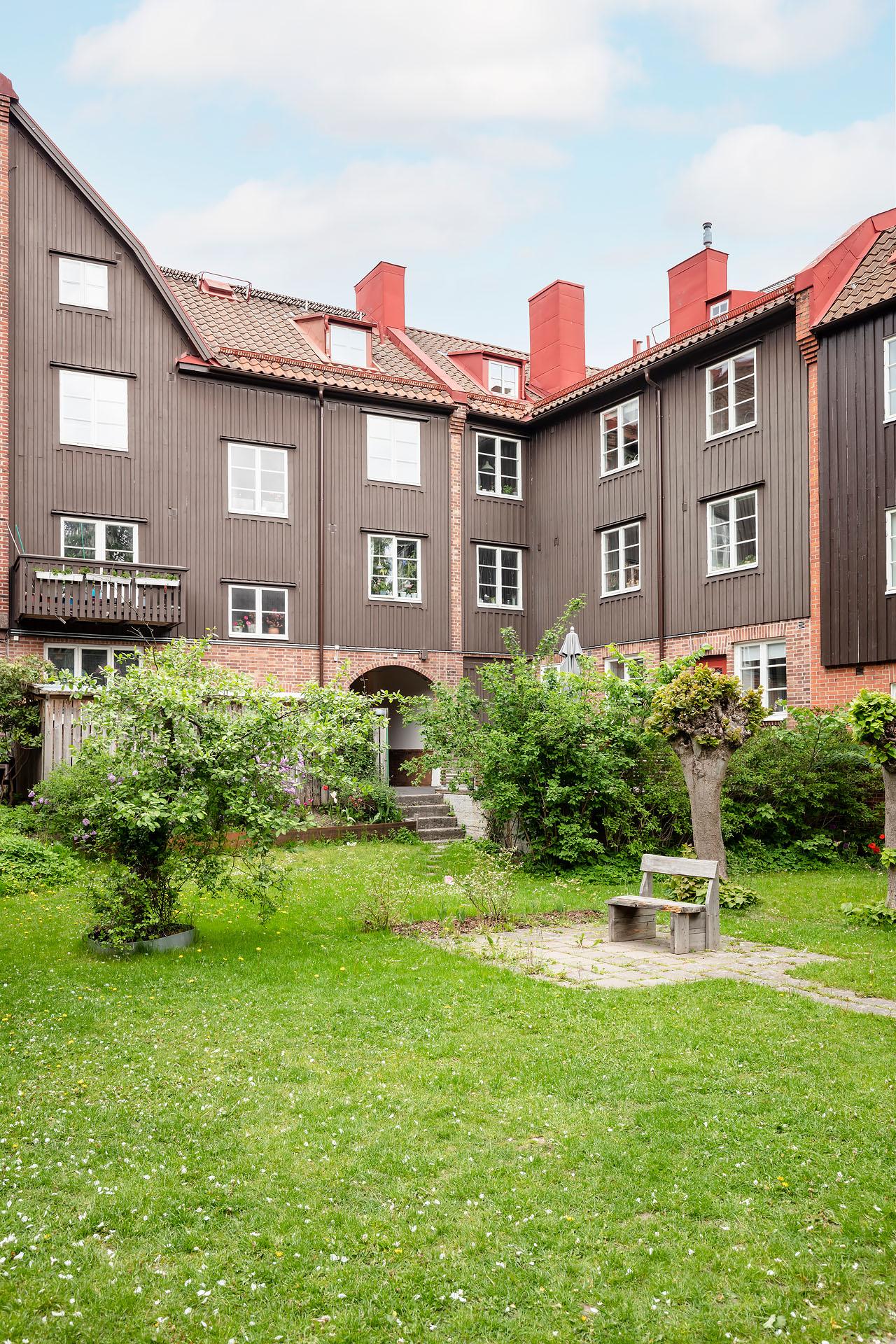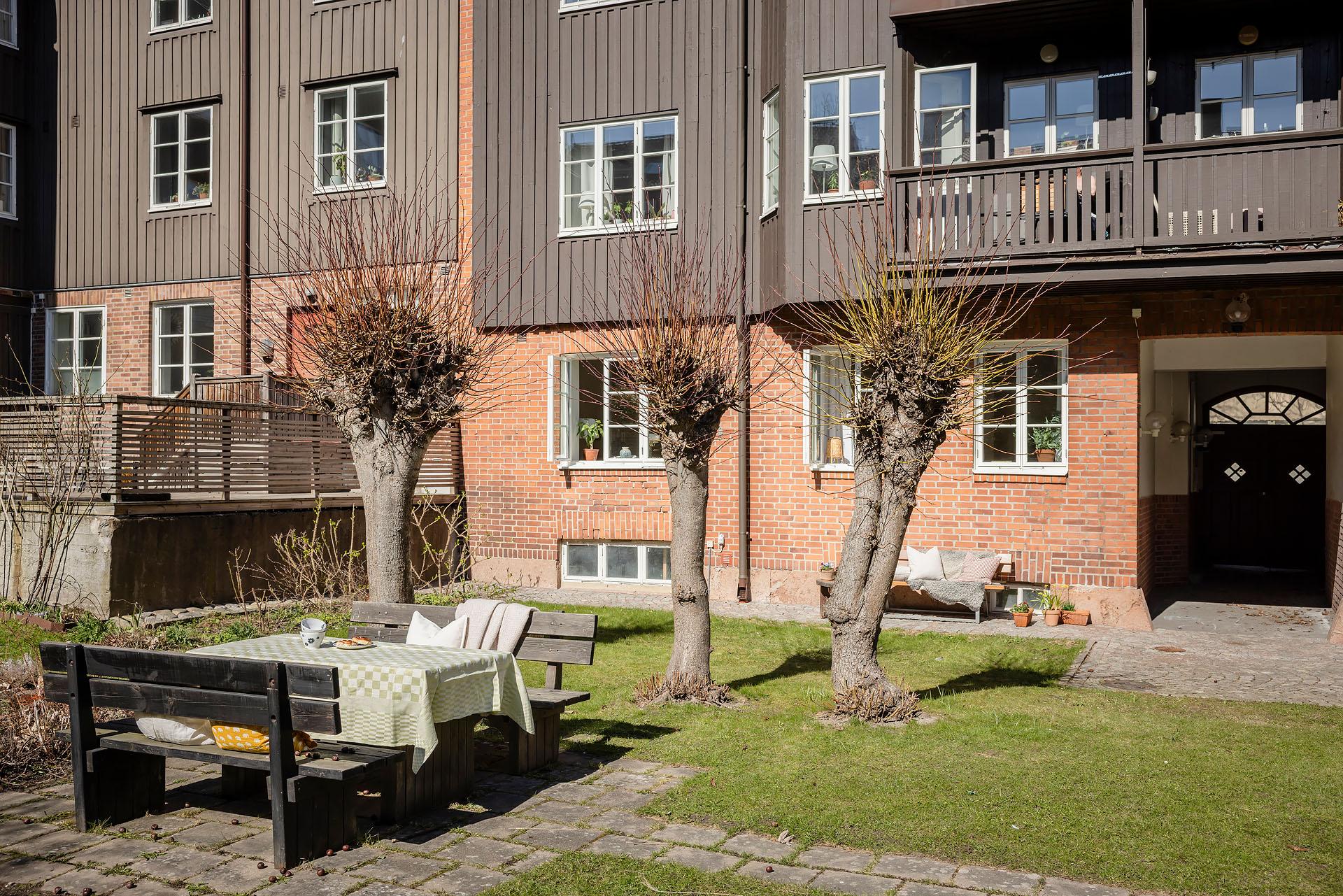 - Balkong/Uteplats: Ja. Parkliknande innergård med grönytor, planeringar, och utemöbler i soligt läge.