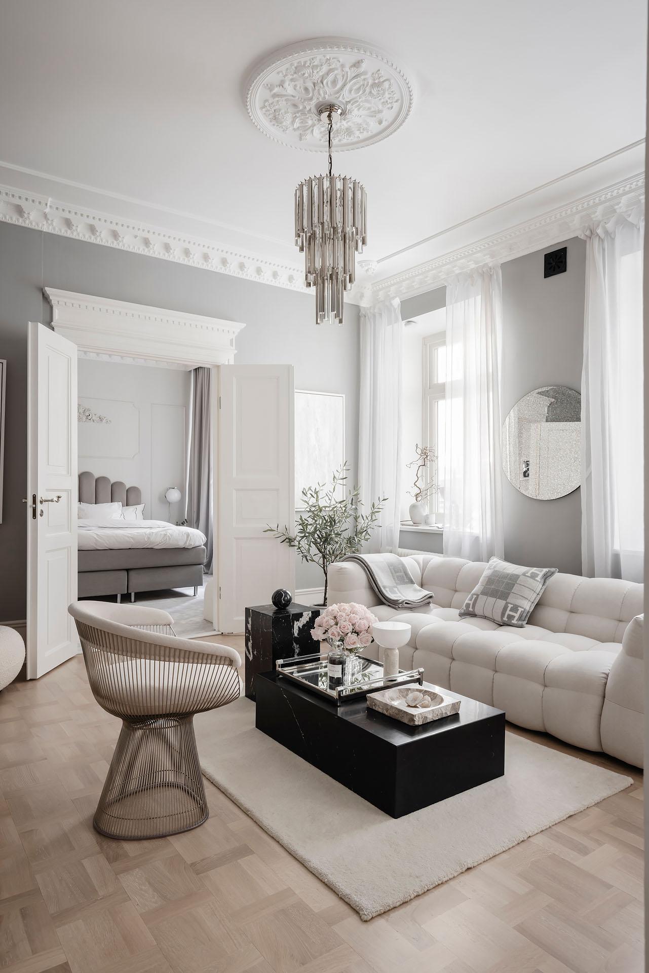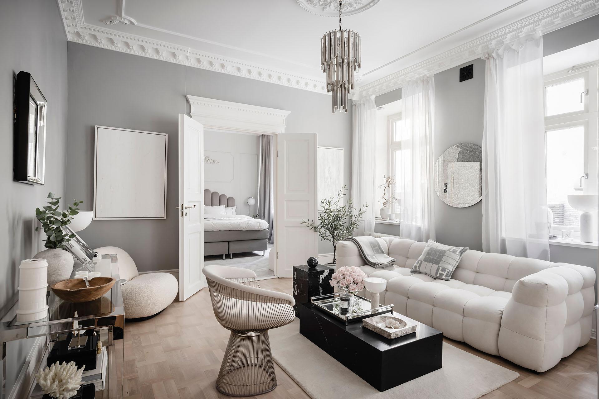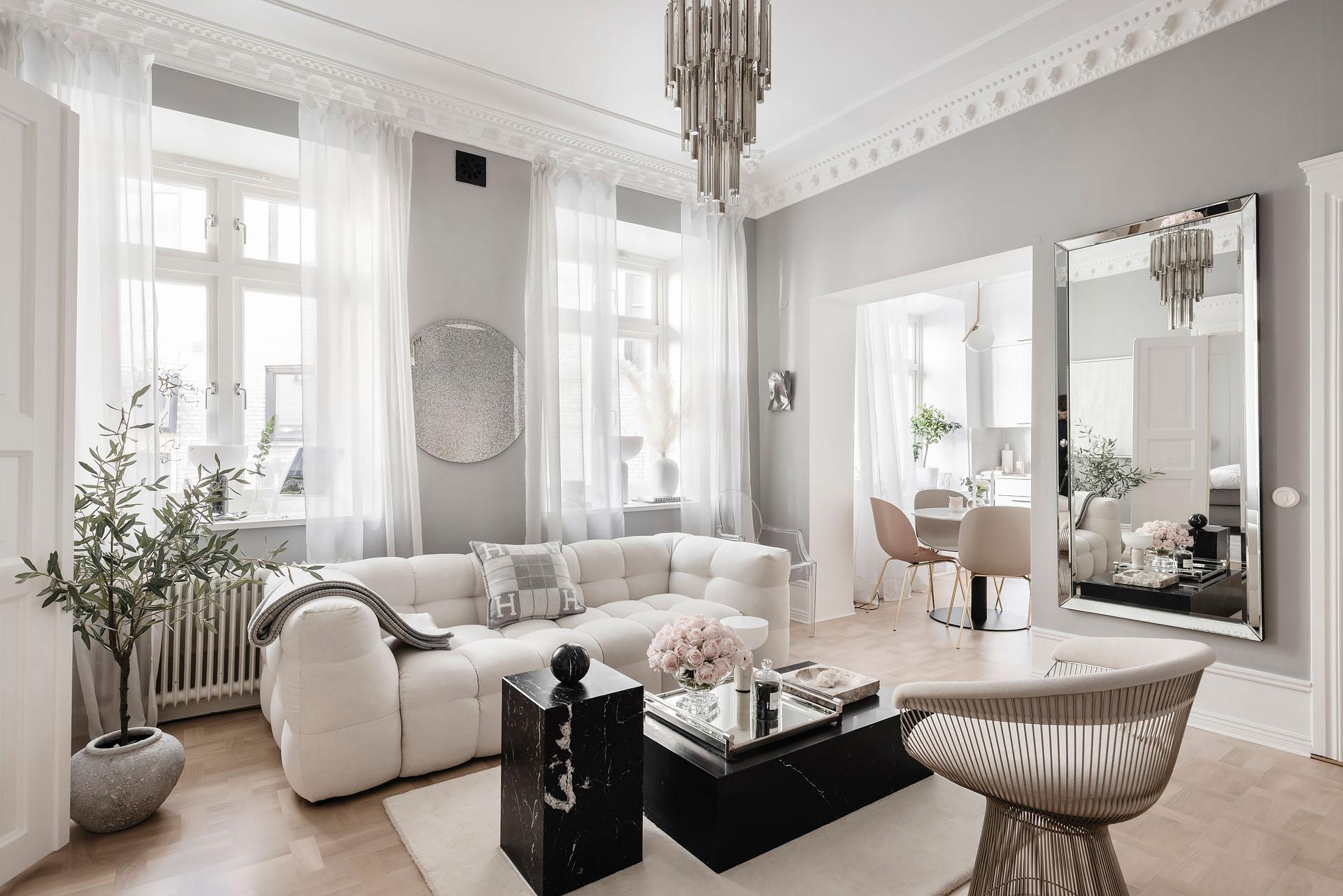 I hjärtat av Linné, med ett svårslaget läge i eftertraktade kvarter vid hörnet Linnégatan/Fjärde Långgatan, erbjuds nu en minutiöst renoverad sekelskiftestvåa där varje detalj noggrant valts för att lyfta fram bostadens ursprungliga karaktär. Här bor du med ett stenkast till Haga, omgiven av mysiga caféer och med en Michelinkrog vägg i vägg – samtidigt som bostaden erbjuder ett knäpptyst gårdsläge. Här samspelar tidstypiska attribut med moderna inslag i en sällsynt harmonisk helhet. Generös takhöjd om dryga tre meter, vackra stuckaturer, takrosetter och stora fönster skapar en luftig och elegant atmosfär. Den öppna planlösningen mellan kök och vardagsrum förstärker rymden ytterligare och ger ett hem som både är representativt och inbjudande.