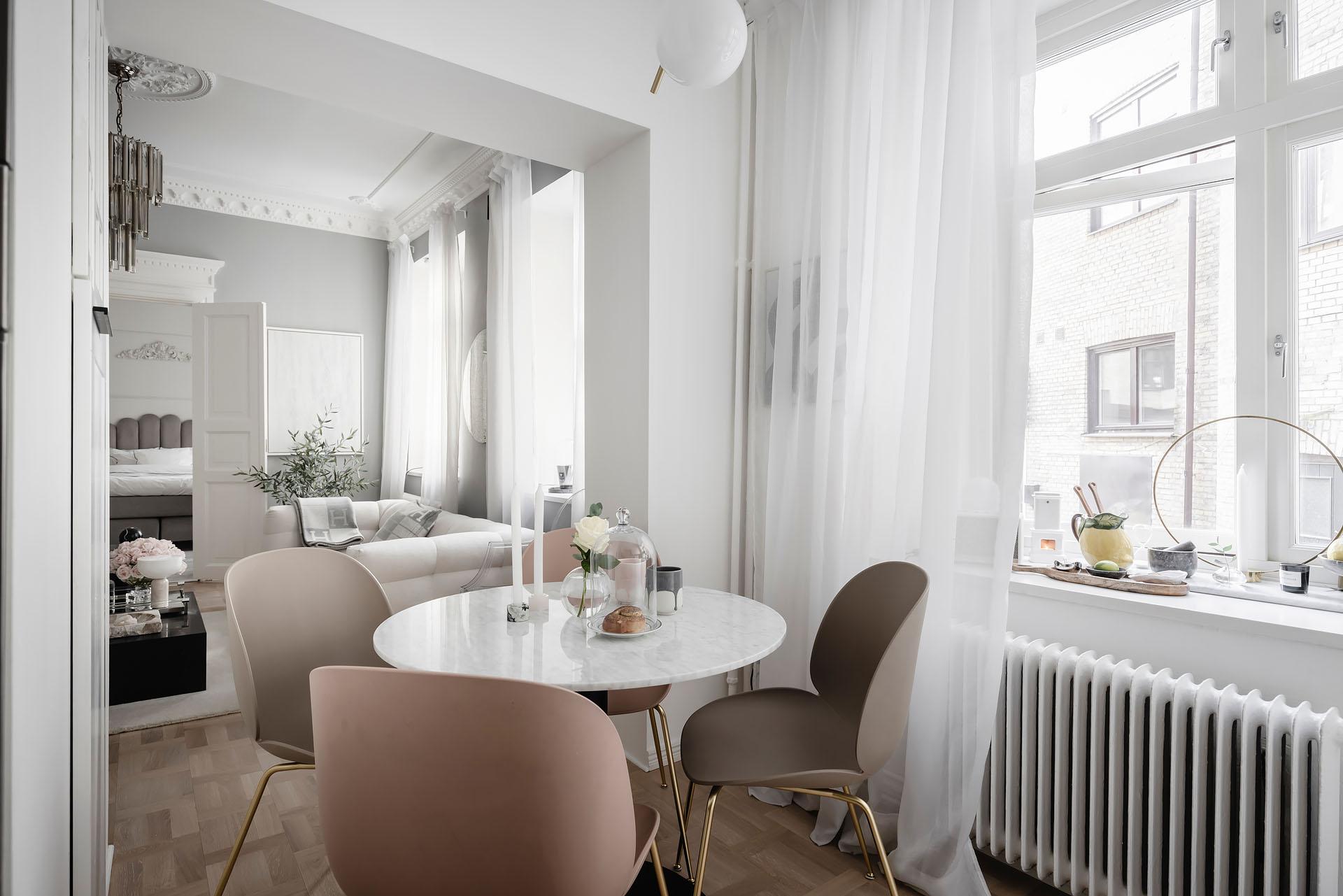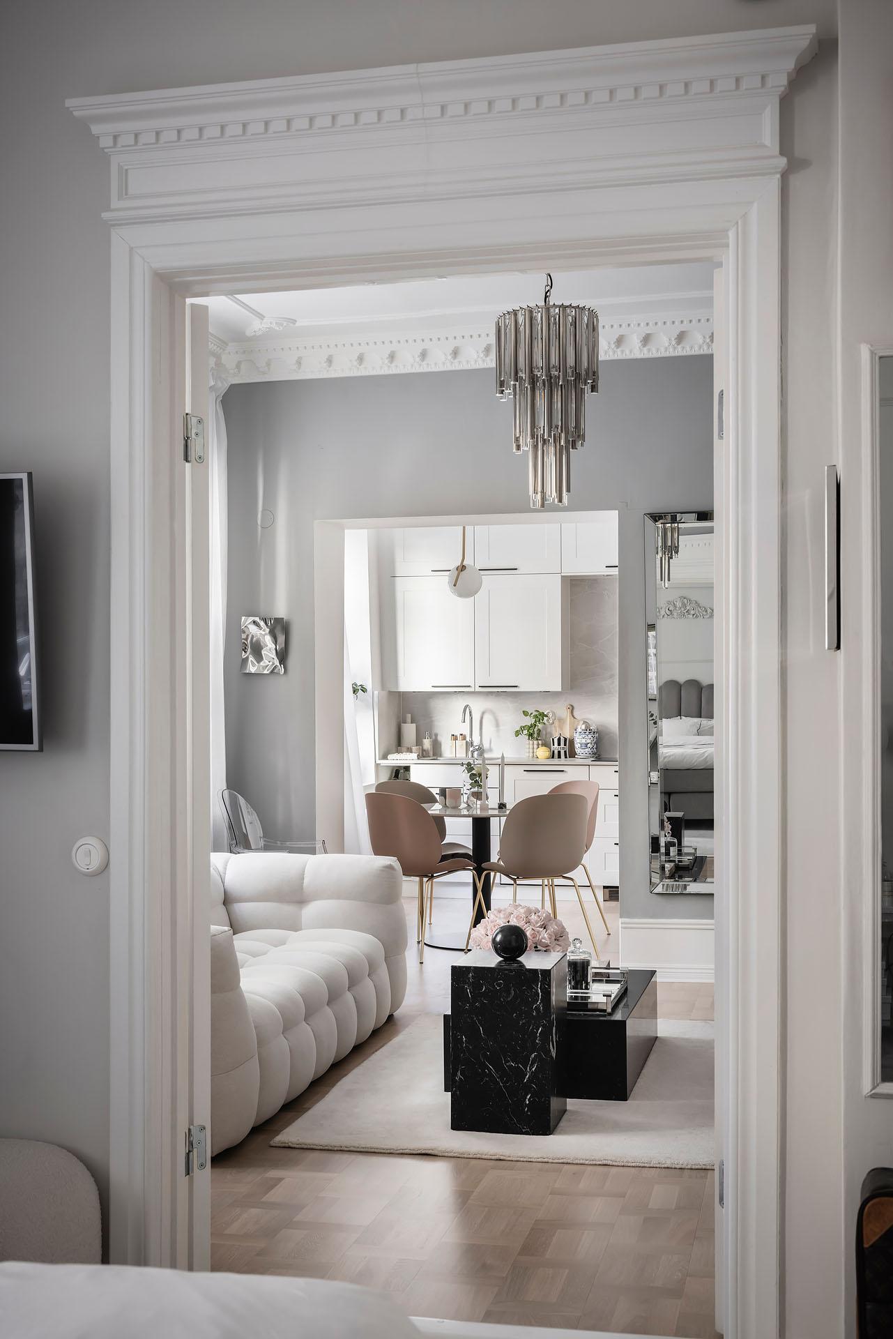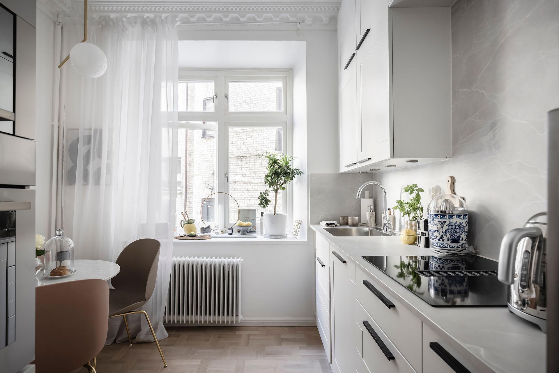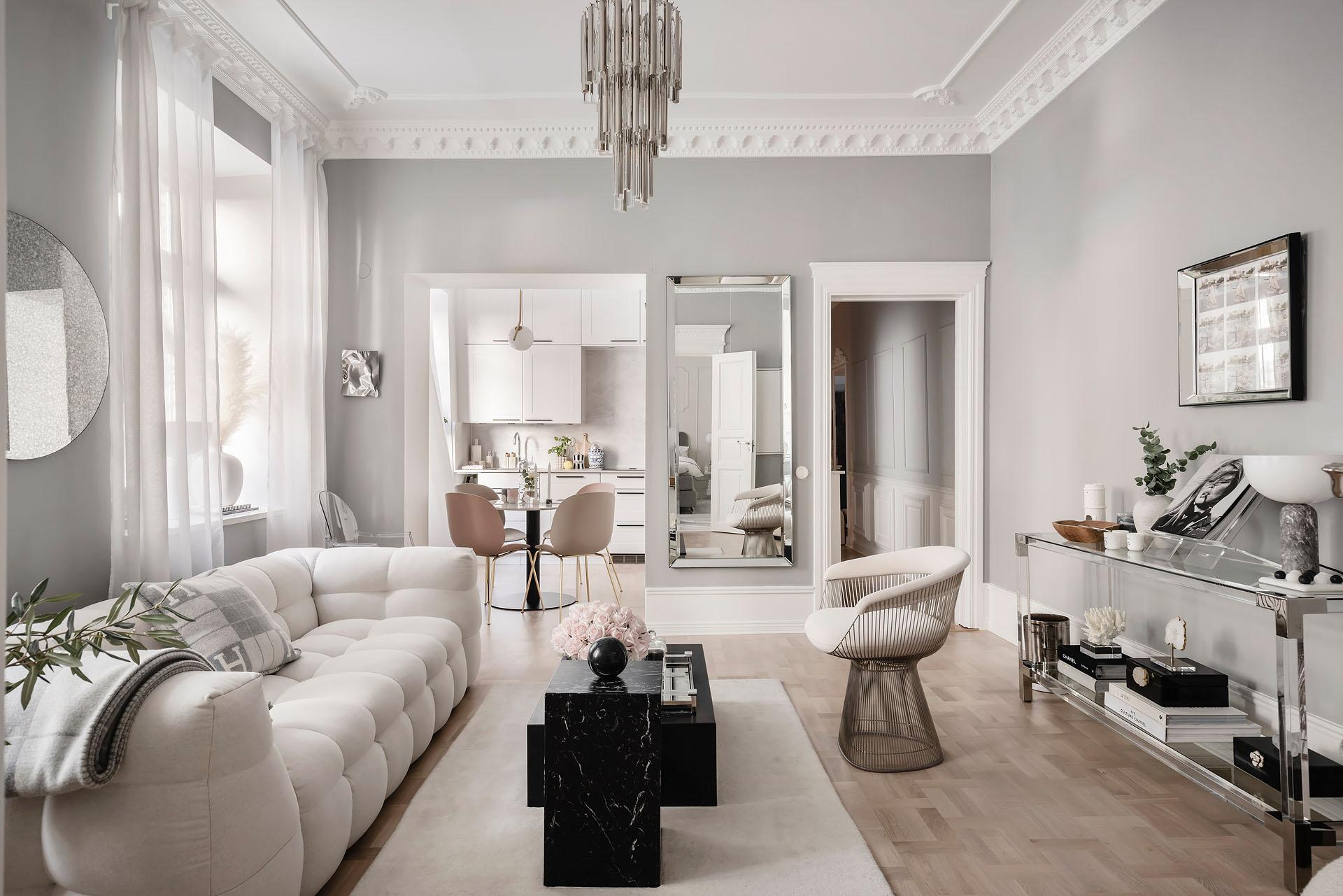 I hjärtat av Linné, med ett svårslaget läge i eftertraktade kvarter vid hörnet Linnégatan/Fjärde Långgatan, erbjuds nu en minutiöst renoverad sekelskiftestvåa där varje detalj noggrant valts för att lyfta fram bostadens ursprungliga karaktär. Här bor du med ett stenkast till Haga, omgiven av mysiga caféer och med en Michelinkrog vägg i vägg – samtidigt som bostaden erbjuder ett knäpptyst gårdsläge. Här samspelar tidstypiska attribut med moderna inslag i en sällsynt harmonisk helhet. Generös takhöjd om dryga tre meter, vackra stuckaturer, takrosetter och stora fönster skapar en luftig och elegant atmosfär. Den öppna planlösningen mellan kök och vardagsrum förstärker rymden ytterligare och ger ett hem som både är representativt och inbjudande.