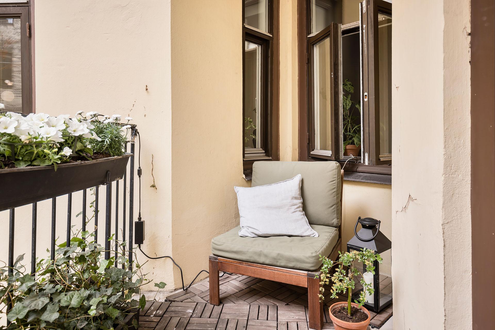 - Balkong/Uteplats: Ja. Stor balkong i soligt söderläge