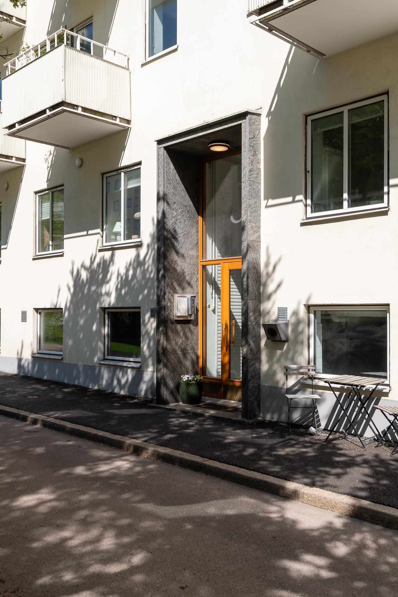 I Johanneberg råder en avslappnad och rogivande atmosfär med omgivningar som har allt du kan önska dig. Trevliga kaféer, mysiga butiker och kvarterskrogar varvas med alla de härliga grönområden som kännetecknar stadsdelen. Här bor man nära Chalmers och flera av universitetets institutioner, runt hörnet finns Carlanderska parken och grönskan uppe vid Humanisten och Näckrosdammen. En kort promenad bort finns Södra Vägen och Göteborgs paradgata Avenyn som rymmer allt från shopping till nöjes- och kulturliv, men också restauranger, hotell och salonger, evenemangstråket med Liseberg, Svenska mässan, Scandinavium, biografen Bergakungen och sist men absolut inte minst Ullevi. Korsvägen som är en stor knytpunkt för kollektivtrafiken där man med buss och spårvagn kan ta sig till Göteborgs alla hörn och kranskommuner nås efter en kort promenad. Här går dessutom flygbussen direkt till Landvetter flygplats för resor vidare ut i Sverige och världen. Tar du dig runt med bil når du leden både södergående och norrgående på bara ett par minuter. Alldeles intill huset ligger en busshållplats som trafikeras av täta turer.