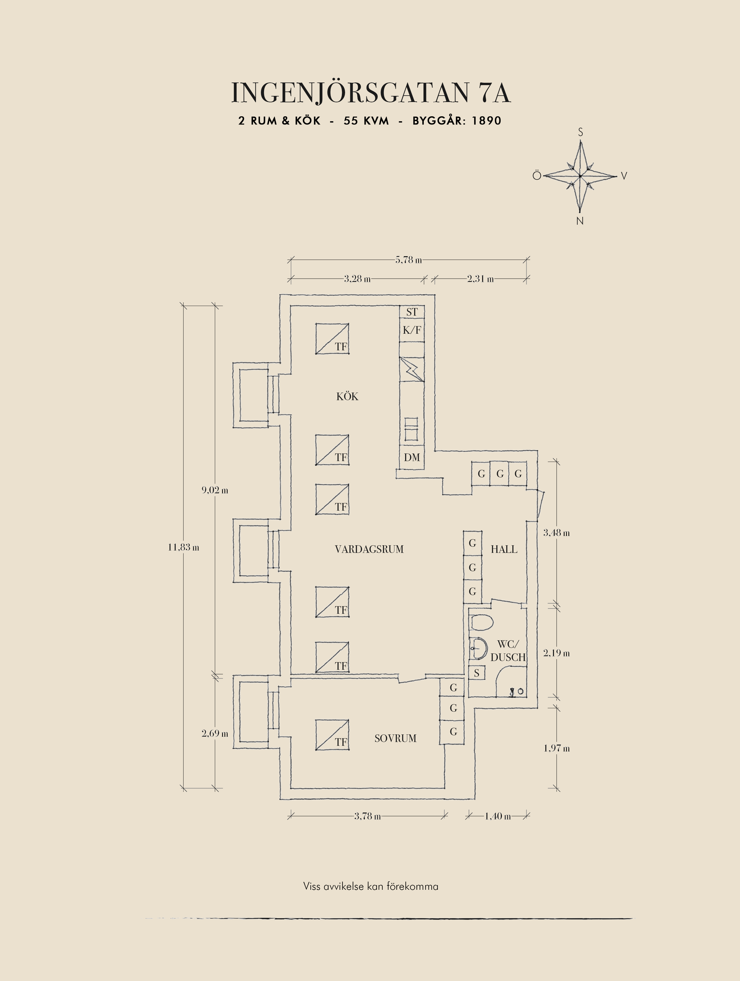 Tack vare den öppna planlösningen mot köket så får man plats att umgås många här, både i köksdelen och i vardagsrummet. Den naturliga matplatsen hamnar intill köket vid fönstret, men duka upp för långbord är inga problem tack vare de stora ytorna. Här blickar ni ut över Ingenjörsgatan och dess vackra stenfastigheter från förra sekelskiftet, liksom molnen som rör sig ovanför. Köket är utrustat med allt ni behöver - en stor arbetsbänk för hemmakocken, gott om förvaring tack vare generöst med bänk- och överskåp, kyl/frys, fläkt, diskmaskin och induktionshäll.