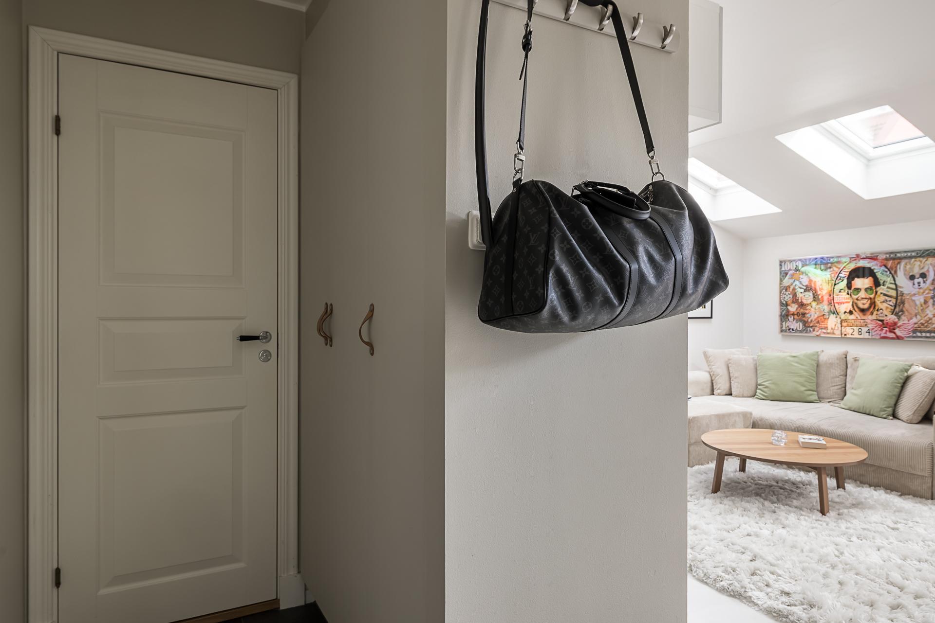 Med lätta steg traskar ni upp till översta våningsplanet. Högst upp - vilken känsla va! Hallen tar precis lagom med plats och bjuder på ett starkt första intryck. Mycket gott om förvaring med flertalet garderober både till vänster och höger. Efter en kall dag ute är det skönt att snöra av sig kängorna och njuta av golvvärmen som finns under klinkergolvet. Bortom hallen skymtar ni vardagsrummet, och ljuset som möter er får er att vilja utforska mer.