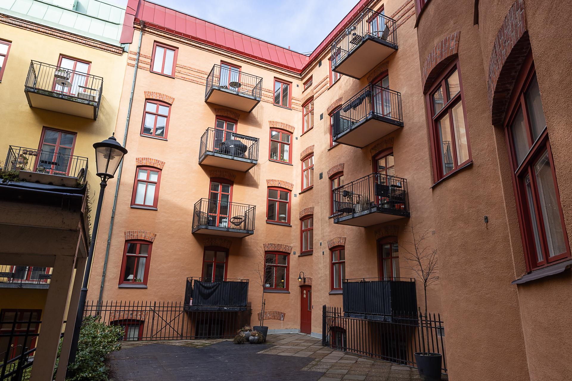 Så det är alltså mitt i detta som BRF Hästtorget stoltserar med ett välskött och tidsenligt hus. Ingenjörsgatan 7A välkomnar med ett pampigt och fint trapphus som delvis smyckas av bevarade detaljer från sent 1800-tal. Det är svårt att tro att du befinner dig mitt i kärnan mellan innerstadens mest attraktiva stadsdelar. Föreningens gård genomsyras av ett välkommet lugn och påminner vår och sommartid om en härlig uteservering. Här inne samsas solstolar och diverse utemöbler med grill och planteringar och innergården är en uppskattad mötesplats. Här inne skapar de rustika huskropparna en skyddande atmosfär åt de boende och bredden mellan fastigheterna tillåter solen att finna sin väg in.