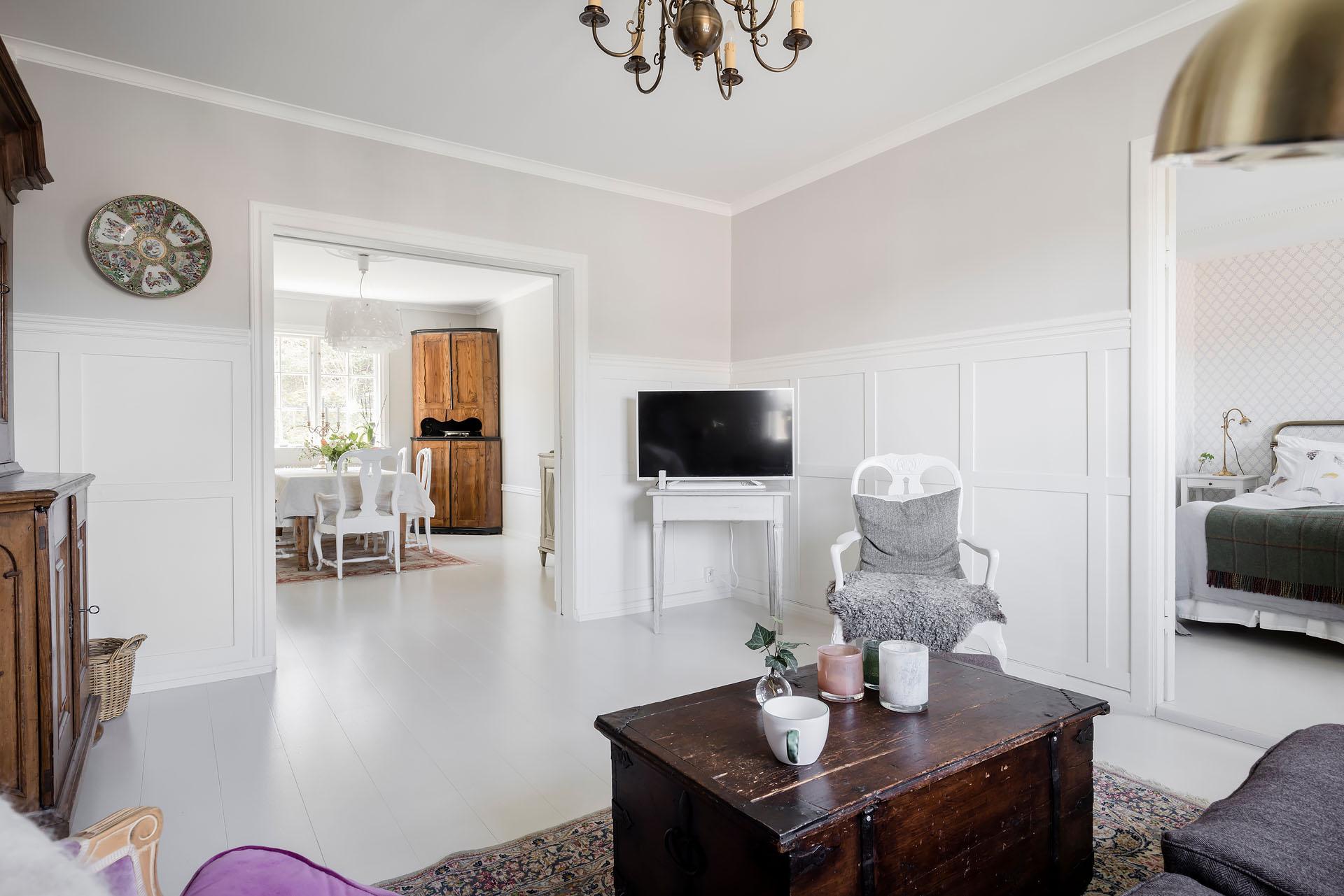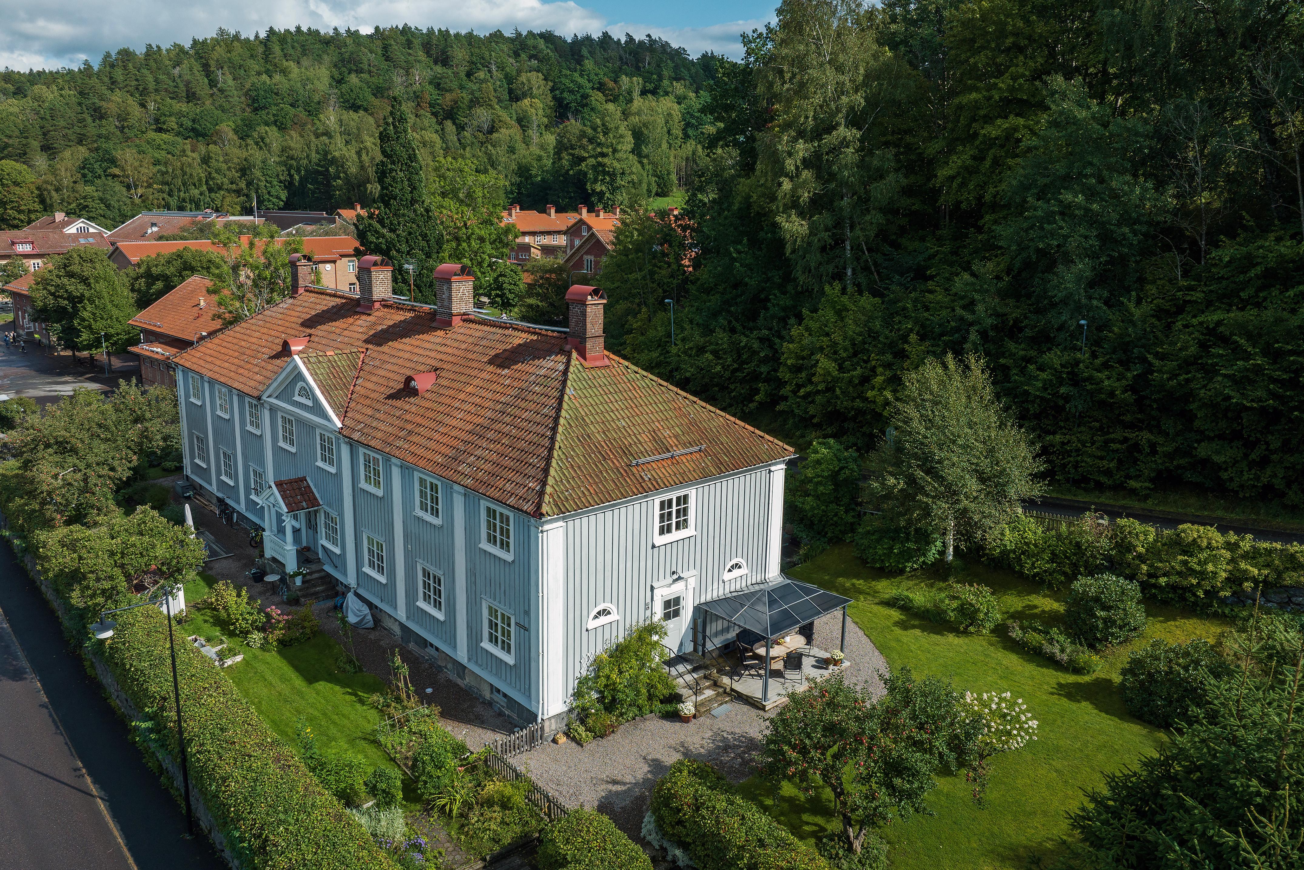 Välkommen till idylliska Jonsered och denna ljuvliga etagelägenhet om fem rum och kök. Lägenheten ligger högst upp i ett vackert och varsamt renoverat hus från 1918, och har renoverats i en lantlig stil som verkligen harmonierar med den gammaldags charmen. Takkupor, takfönster och handtillverkade spröjsfönster låter dagsljuset strömma in, och när kvällsmörkret väl lagt sig är det mysigt att elda i braskaminen. Kvadratmeterna är väl fördelade, och med sina stora sällskapsytor och tre möjliga sovrum passar lägenheten perfekt för en familj som gärna bjuder hem släkt och vänner. En egen del av föreningens stora och grönskande trädgård disponeras, liksom en egen parkeringsplats. Underbart läge i lummiga kvarter med närhet till badplats, natur, Jonsereds Trädgårdar med kafé och Poppels Ölbryggeri med restaurang. Varmt välkommen hem!