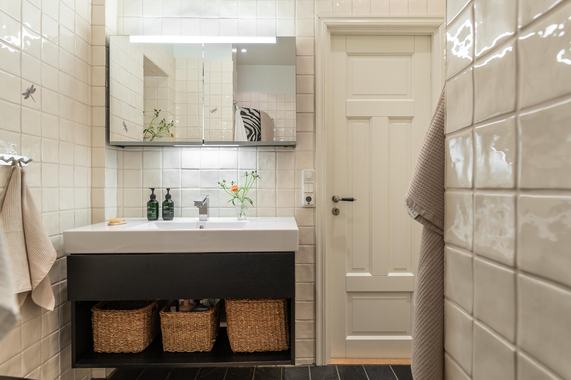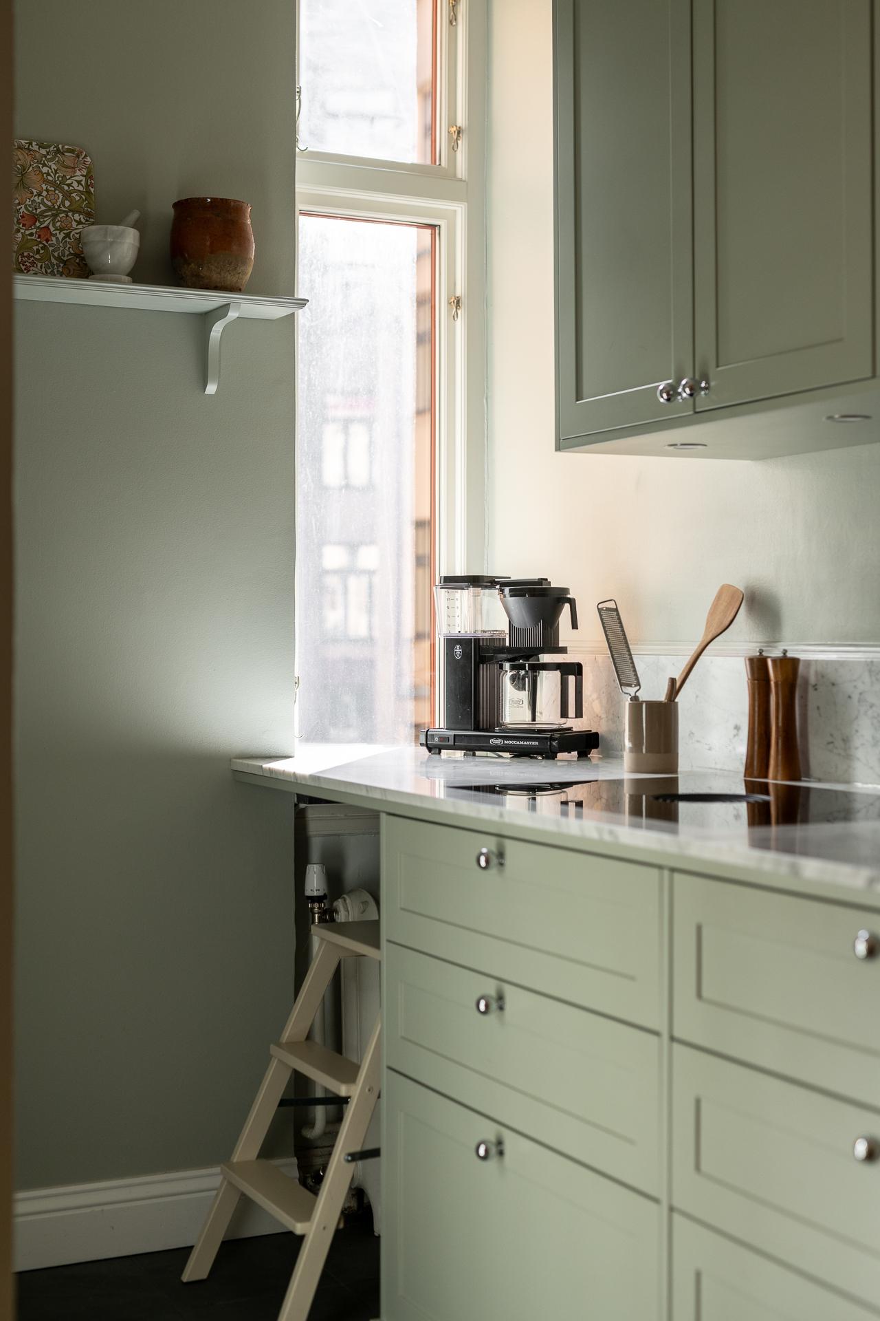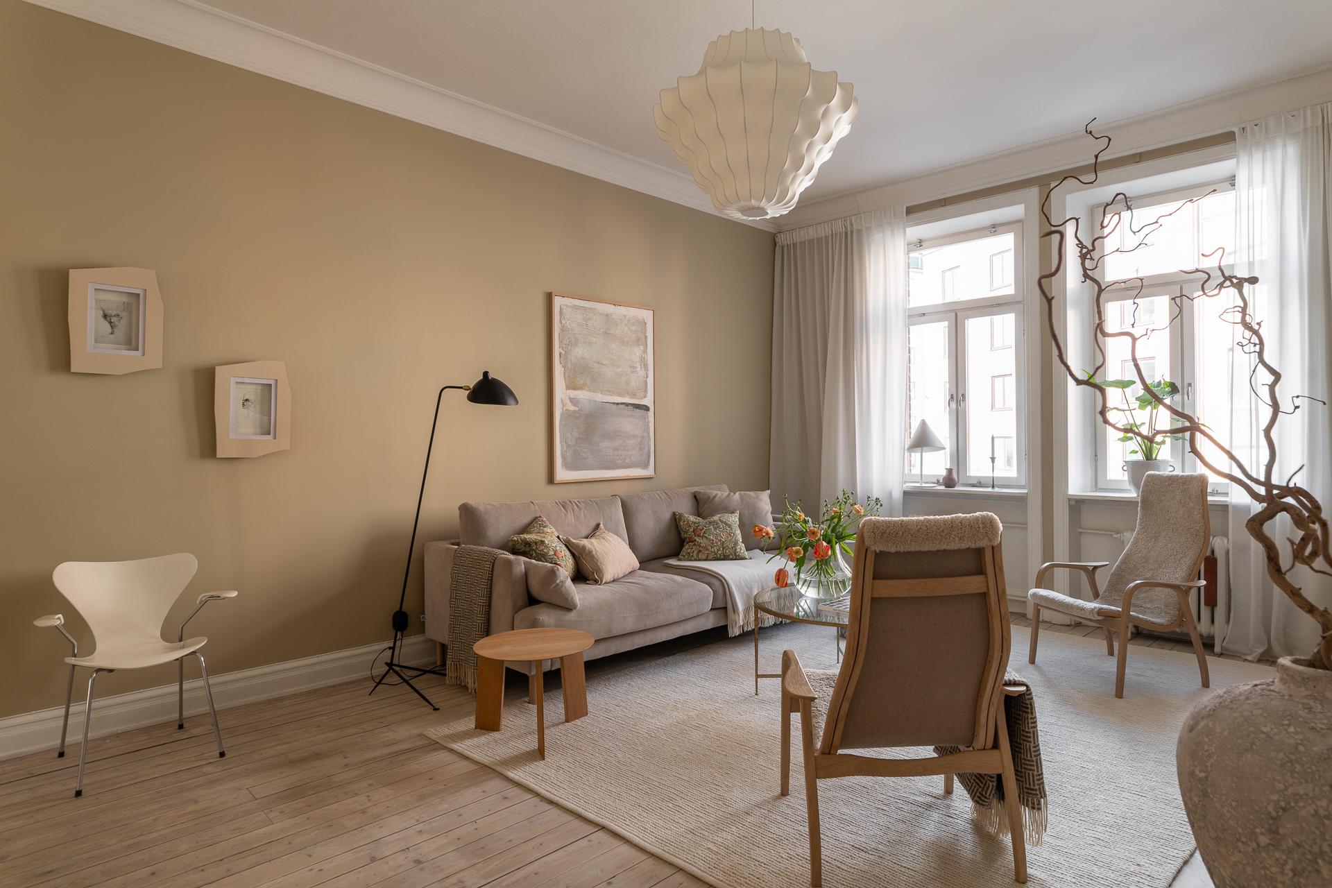 Tillbaka till lägenheten, här har hänt en hel del de senaste åren och lägenheten kan nu stoltsera med att vara sitt allra bästa jag. För den som har renoverat förr så vet ni hur många timmar och beslut som ligger bakom, utöver timmarna som rullar på när skickliga hantverkare är inblandade. Med stort fokus på kvalité och estetik tog nuvarande ägare sig an en mer eller mindre totalrenoveringen av hela våningen under 2023.