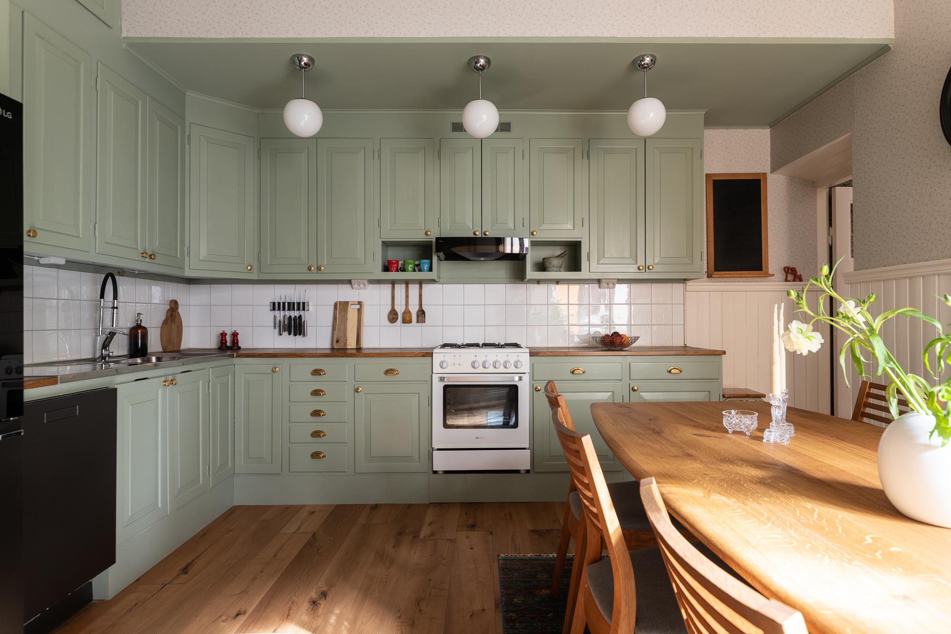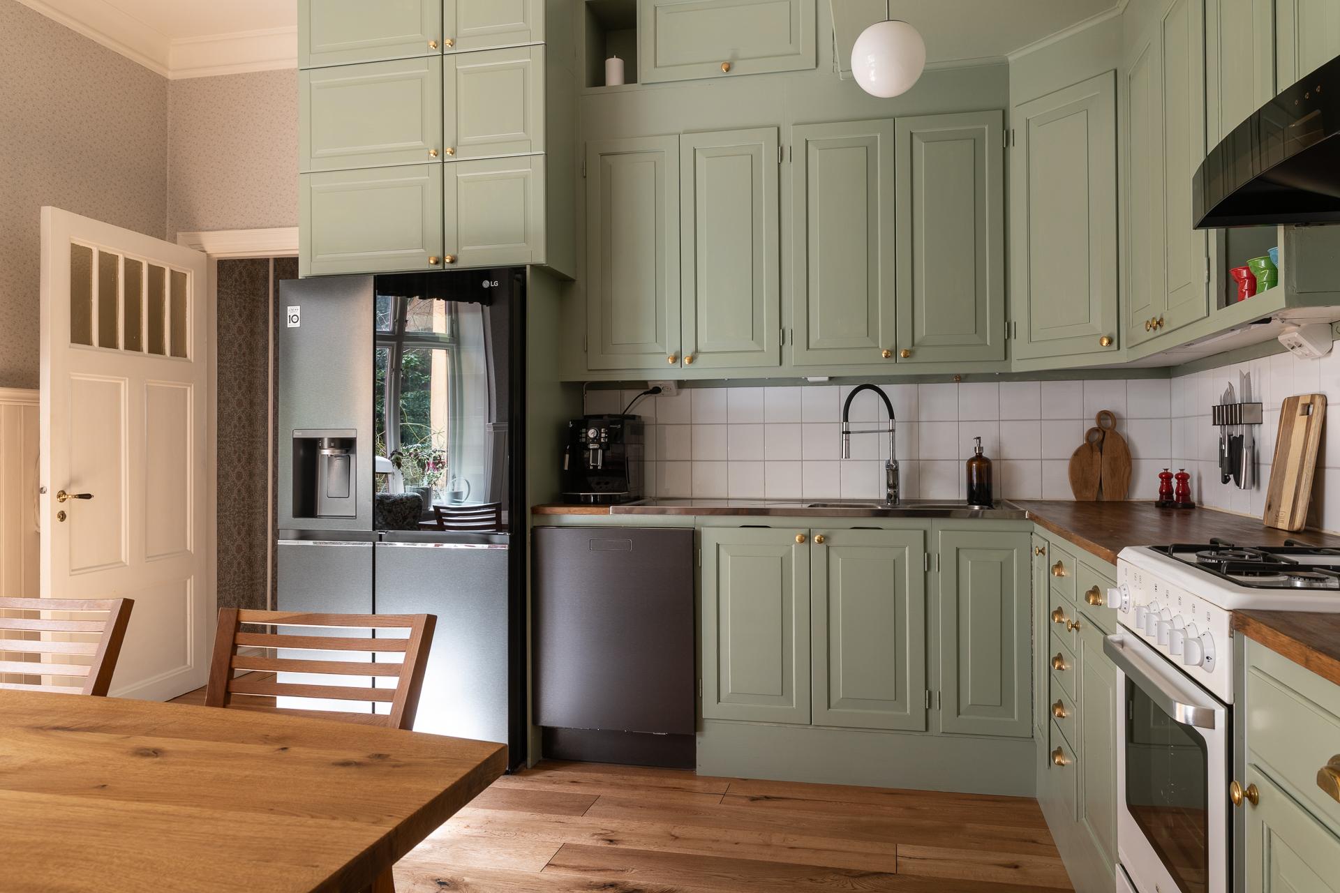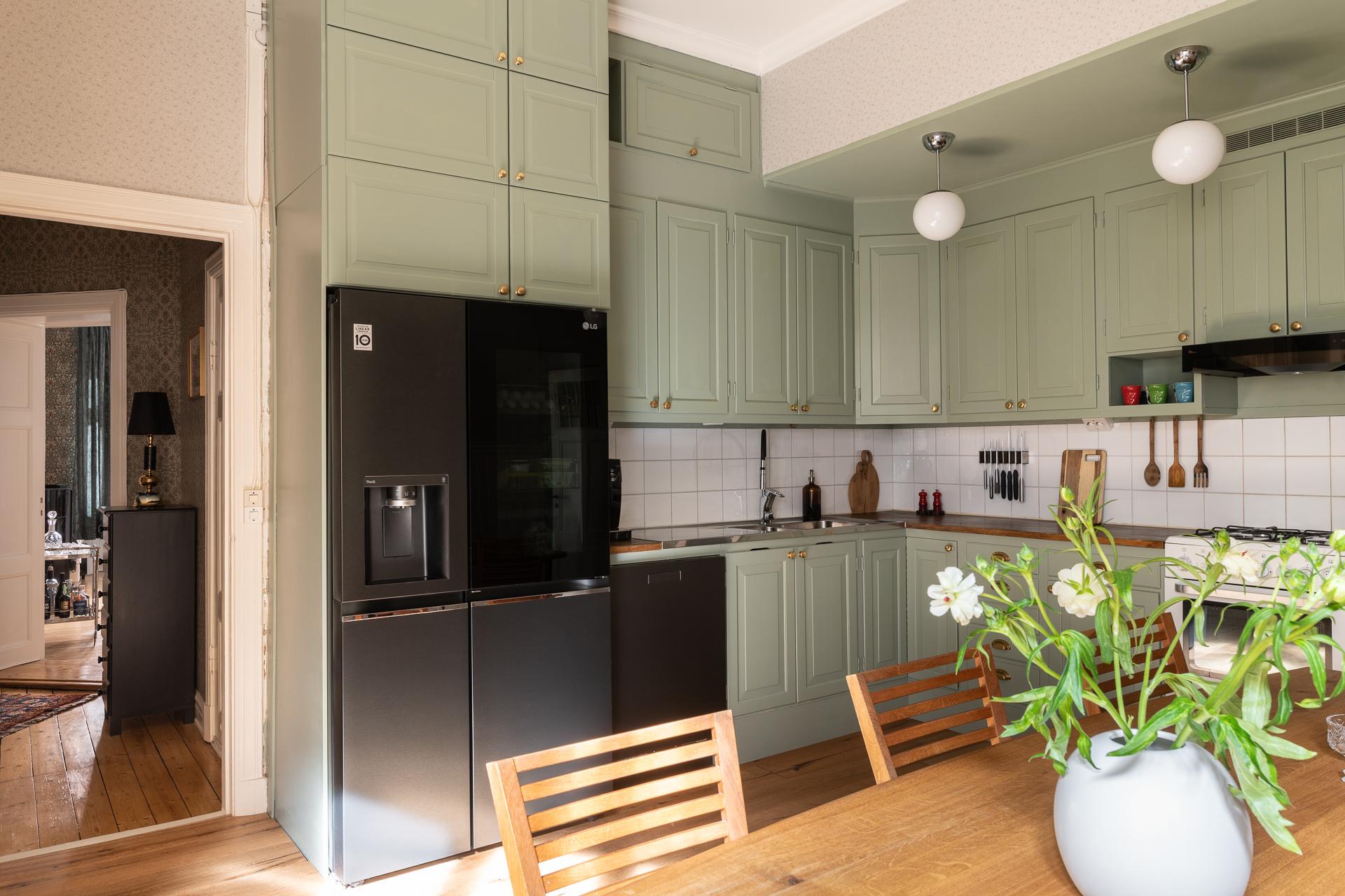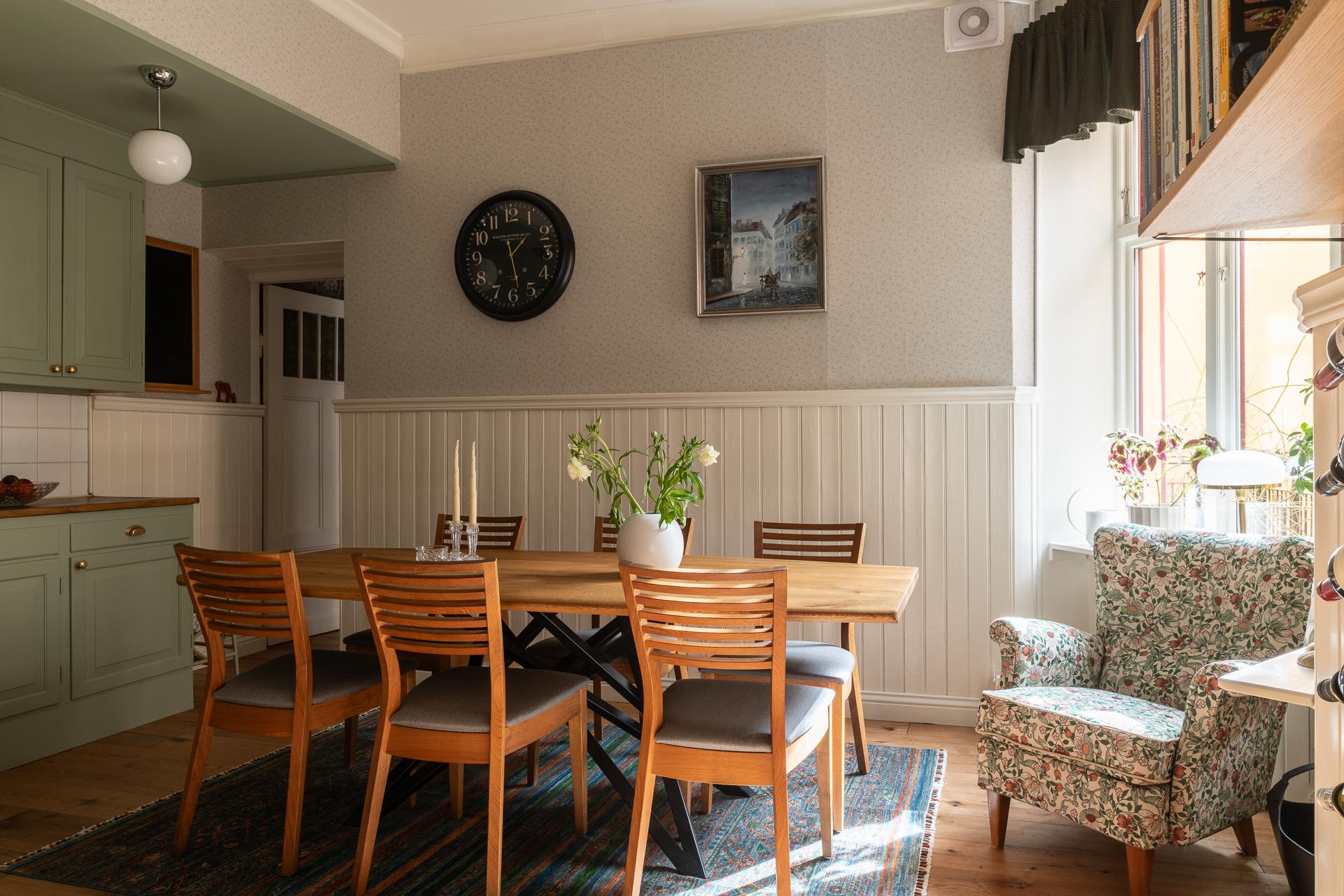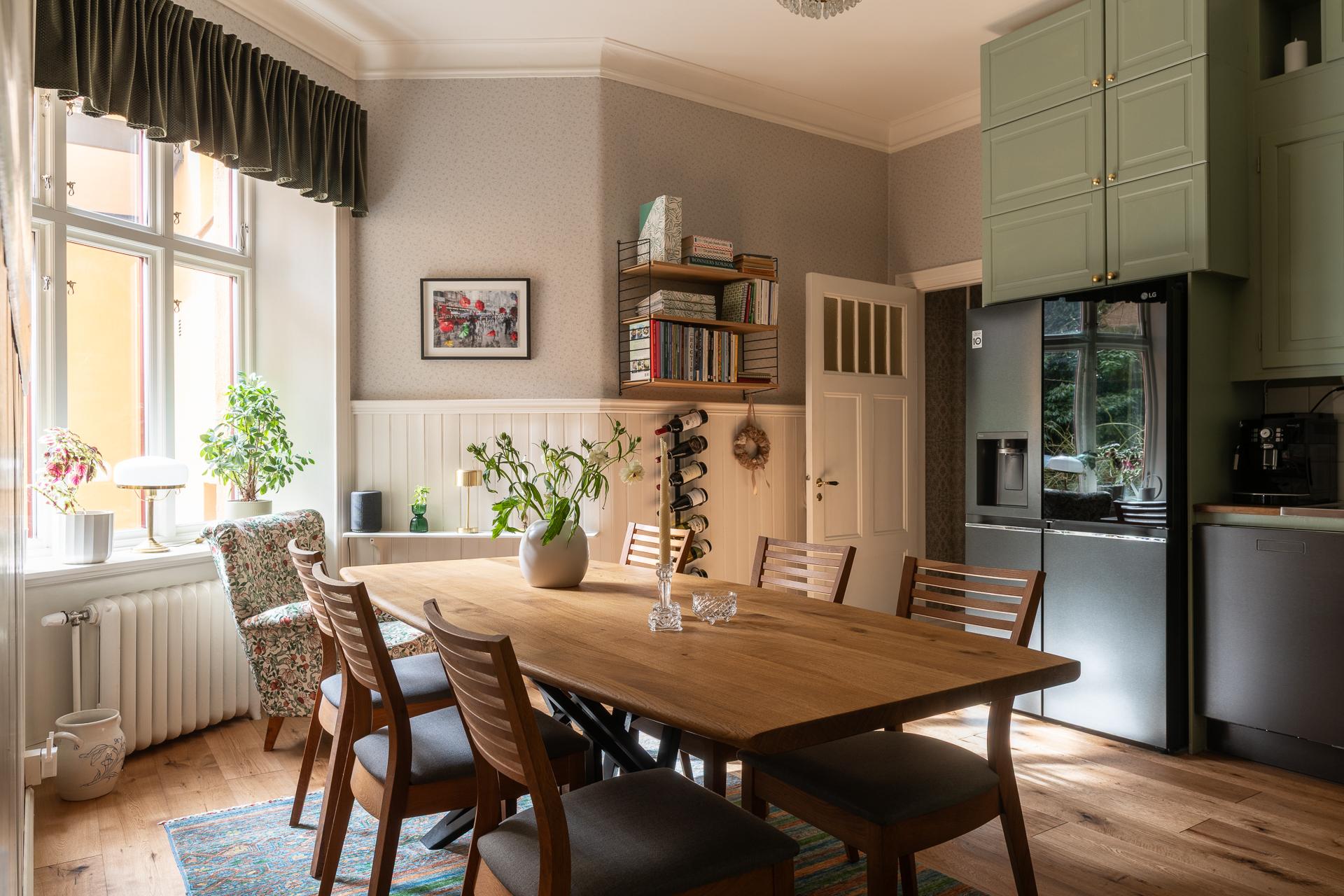 Tack vare de generösa ytorna och den centrala placeringen av köket blir det en naturlig samlingsplats när vänner och familjer önskar hälsa på. Mycket god förvaring och bra med bänkytor att arbeta på. Köket renoverades delvis 2024 då en ny diskmaskin installerades liksom ny kyl/frys. Samtidigt satte man in nya skåp samt målade om befintliga luckor, tak samt tapetserade. Även golven lades in nya. Intill fönstret lyser sydvästsolen in och här får ni plats med en rejäl matplats.