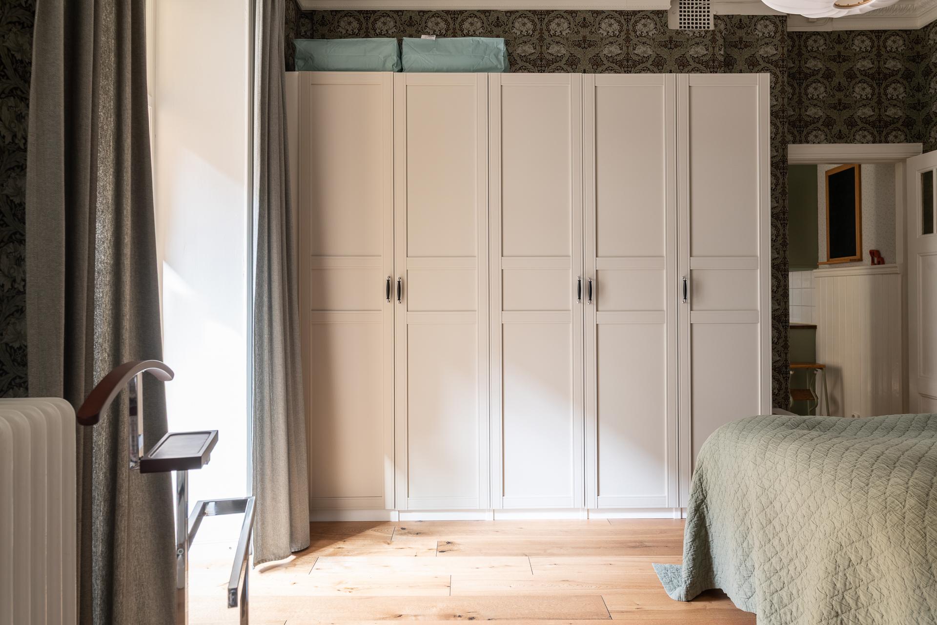 Bakom en alldeles ljuvlig spegeldörr ligger det största av de två sovrummen, fint placerad och belägen mot föreningens gemytliga innergård. Ett synnerligen stort och ombonat sovrum med stora garderober och gott om ytor för att möblera som ni själva önskar. Mot den lugna innergården bjuds ett osedvanligt lugn vilket borgar för en god natts sömn. Öppna upp balkongdörrarna och låt eftermiddagsljuset flöda in. 2025 sattes de nya garderoberna in liksom nya golv. Tak och fönsternischer målades och väggarna tapetserades.