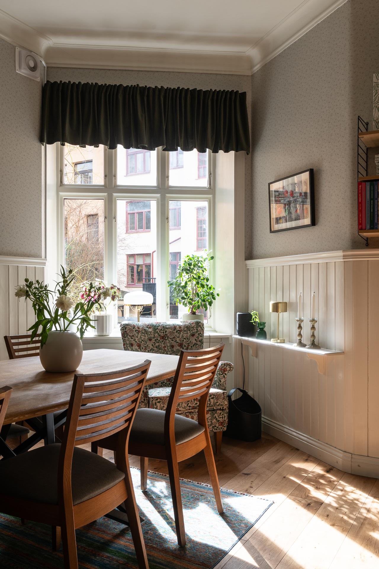 Innan rundvandringen tar vid i lägenheten kan vi nämna några ord om förädlingsprocessen som ligger bakom detta vackra hem. När nuvarande ägare tog över bostaden var det en så kallad oslipad diamant, och nu efter många timmar, kloka beslut och skickliga hantverkare kan nästa ägare med gott samvete flytta in direkt och njuta av det härliga livet mitt i stan. Samtliga ytskikt är renoverade, köket delvis renoverat och badrummet nytt i sin helhet. Välkommen att hänga på in.