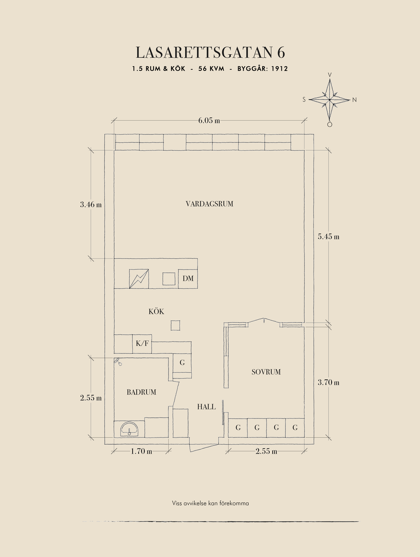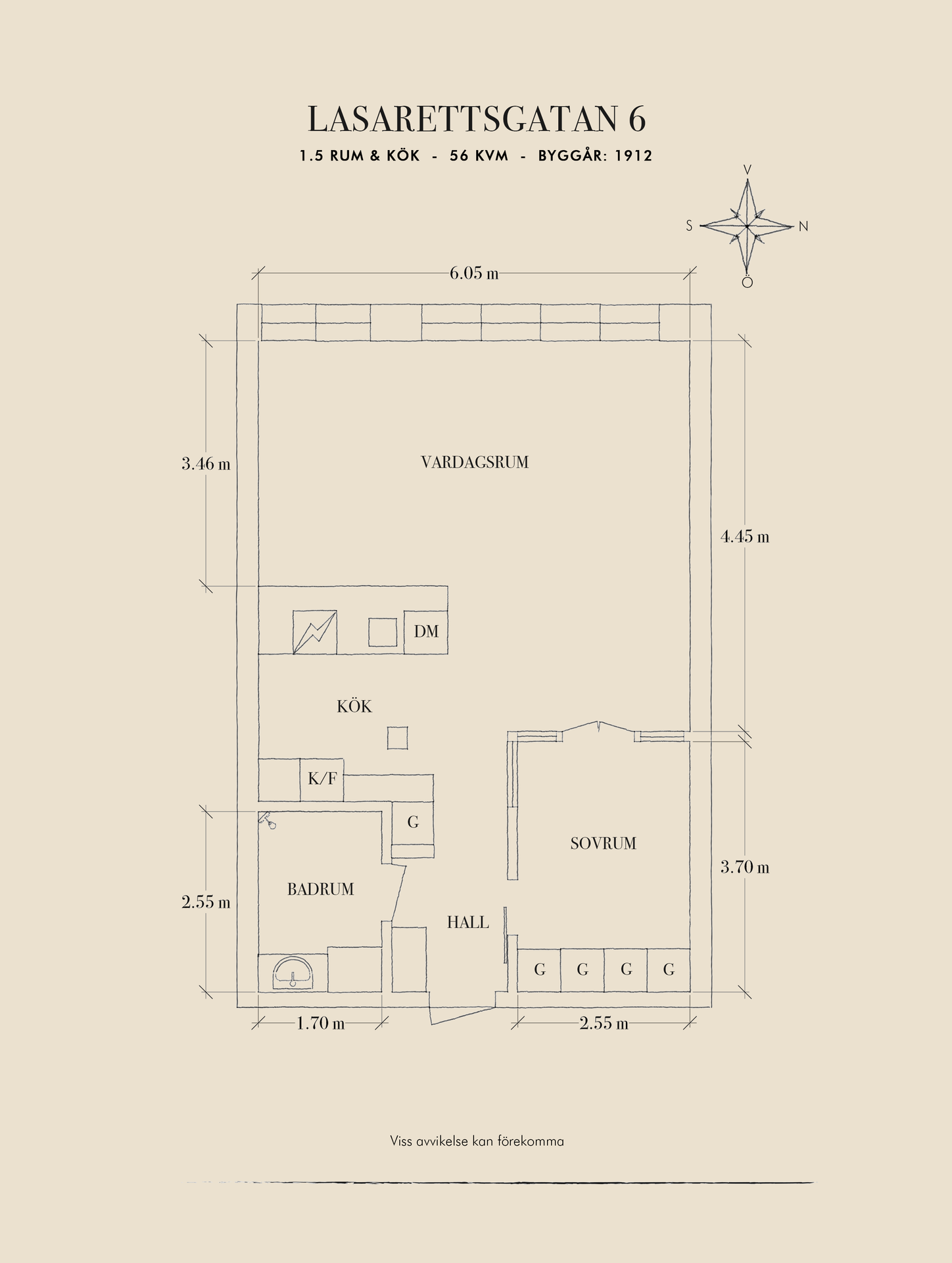 - Boarea: 56 kvm