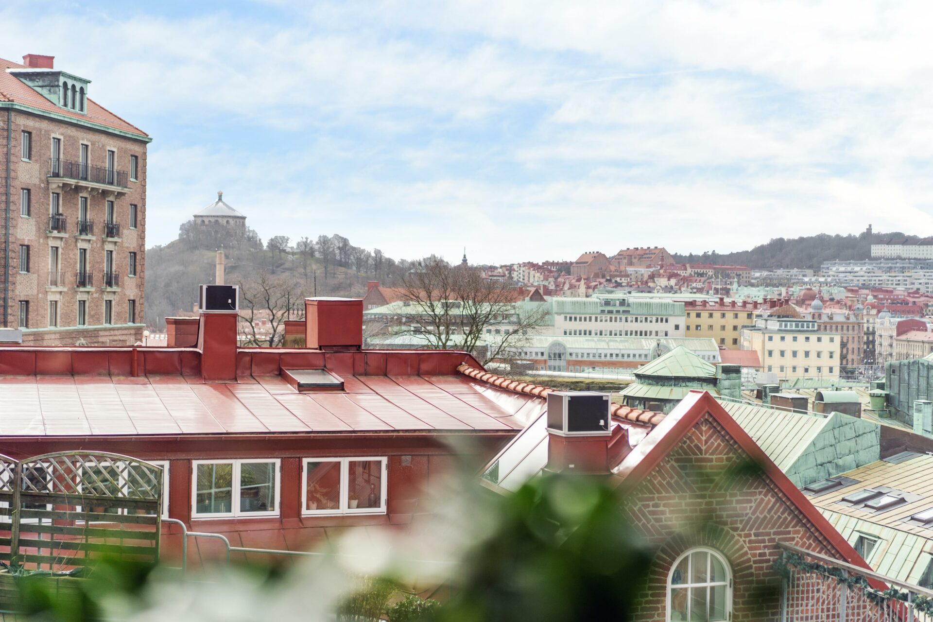 En unik vindstrea, högt upp i pampig tegelfastighet anno 1912, belägen endast ett stenkast från stadspulsen. Skyddad från insyn och det fria läget ger ett otroligt ljus och solen flödar in genom fönster i tre väderstreck. Utsikten över innerstadens takåsar, Skansen Kronan, Masthuggskyrkan och hamninloppet är magisk och karakteristiska vindsattribut som framtagna takbalkar, öppet till nock och oregelbundna vindar sätter tonen. I fint skick med ytskikt i sobra toner och stilfull renoverat badrum. Förening med god ekonomi och en trappa ner finns en gemensam takterass om cirka 150 kvadrat. Våning 7/8 och hiss så klart.