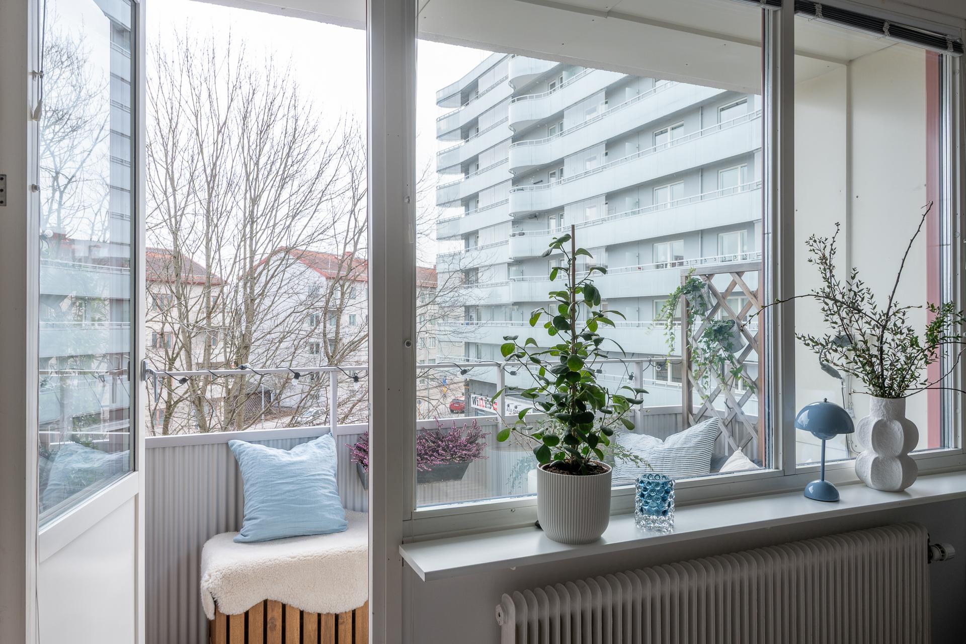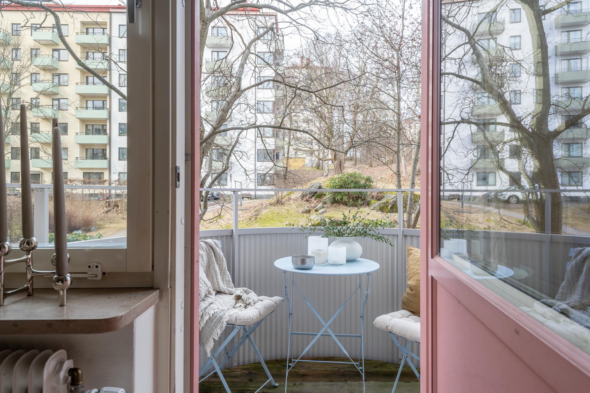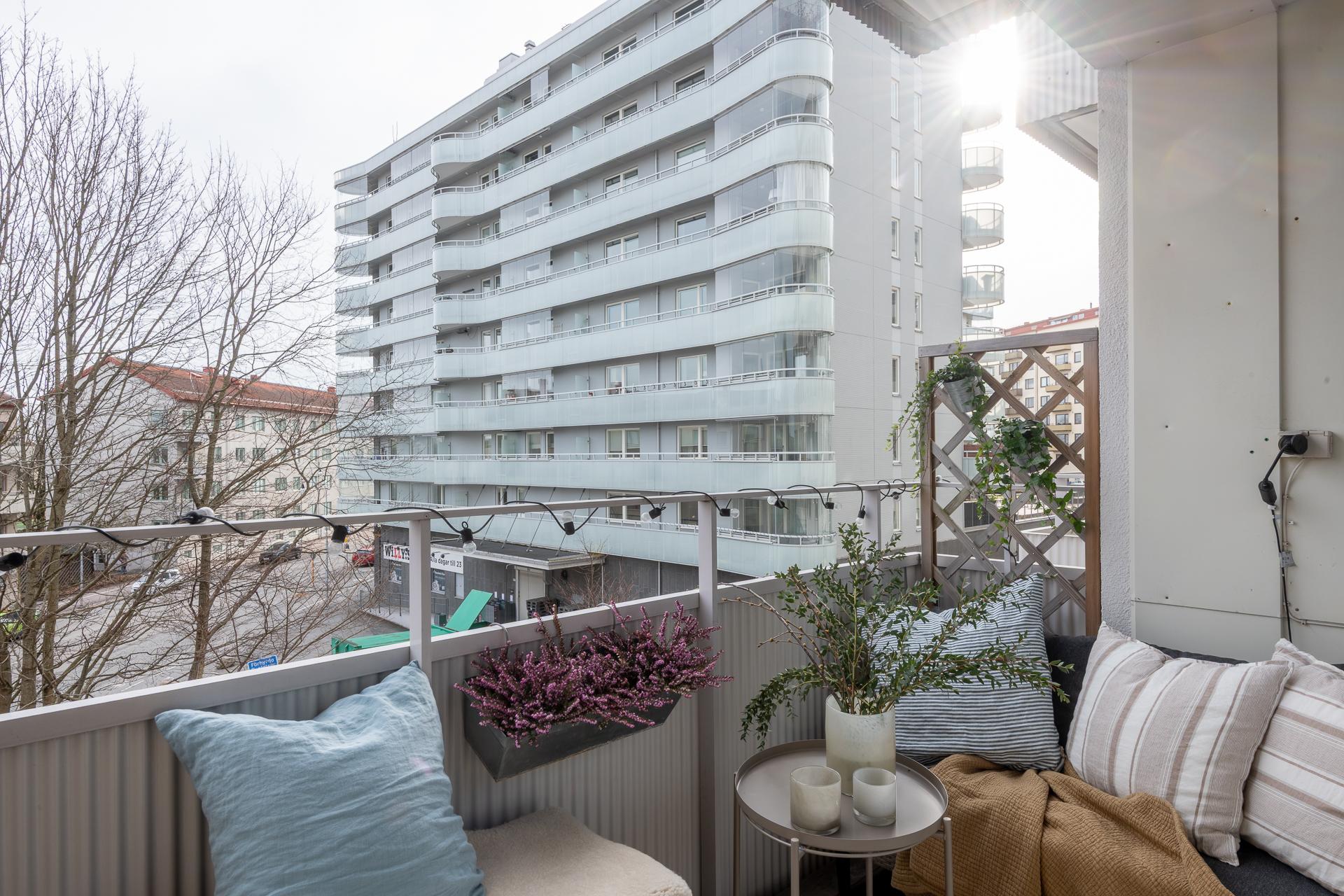 - Balkong/Uteplats: Ja. Lägenheten har två balkonger i motsatta väderstreck. Föreningen har en parkliknande uteplats på föreningens baksida med utemöbler och grillplats.