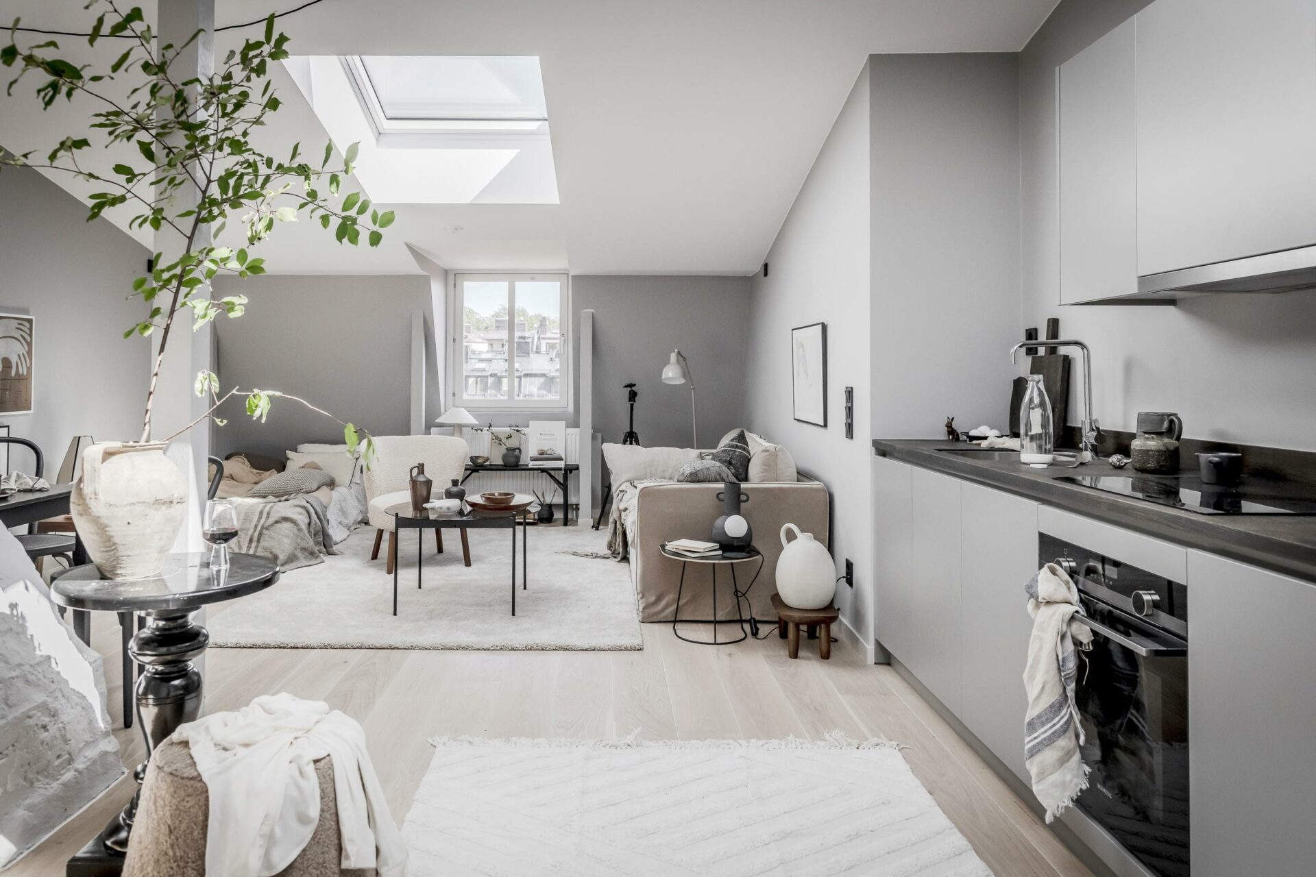 Alldeles fantastiskt vindsetta med högt i tak, stora takfönster och kök från Kvänum. Här är frihetskänslan total, med högt, fritt läge över Linnégatan, utsikt mot Skansen Kronan och Kommendantsängens takåsar. Gemensam takterrass i sydvästläge. Högt över Linnéstadens vimmel och puls finns fem nybyggda vindslägenheter. Fyra av dem är om ett rum och kök. Den femte är en minitvåa med terrass. Huset är från det förra sekelskiftet och ett av de mest omtyckta längs gatan. När vi kom upp på taket och såg denna del av Linné ovanifrån blev det osökt så att vi började drömma oss bort till Paris takåsar. Vi låtsas att vi befinner oss mitt i La Belle Epoque bland poesi, vin, måleri, baskrar, rouge, skarpa page-kanter, glädje, ostar, frihet, champagne, skrivmaskinsknaster, ungdom, stolthet, passion, baguetter, stafflier, dans, randiga tröjor, penslar, sorglöshet, bulliga kullerstenar, äkthet, etcetera, etcetera, etcetera. Känslan är där. Känn den. Besök projektsidan för att få en överblick över alla lägenheter och mer information; https://www.alvhem.com/objekt/linnegatan-37-linnestaden-7/ eller alvhem.com