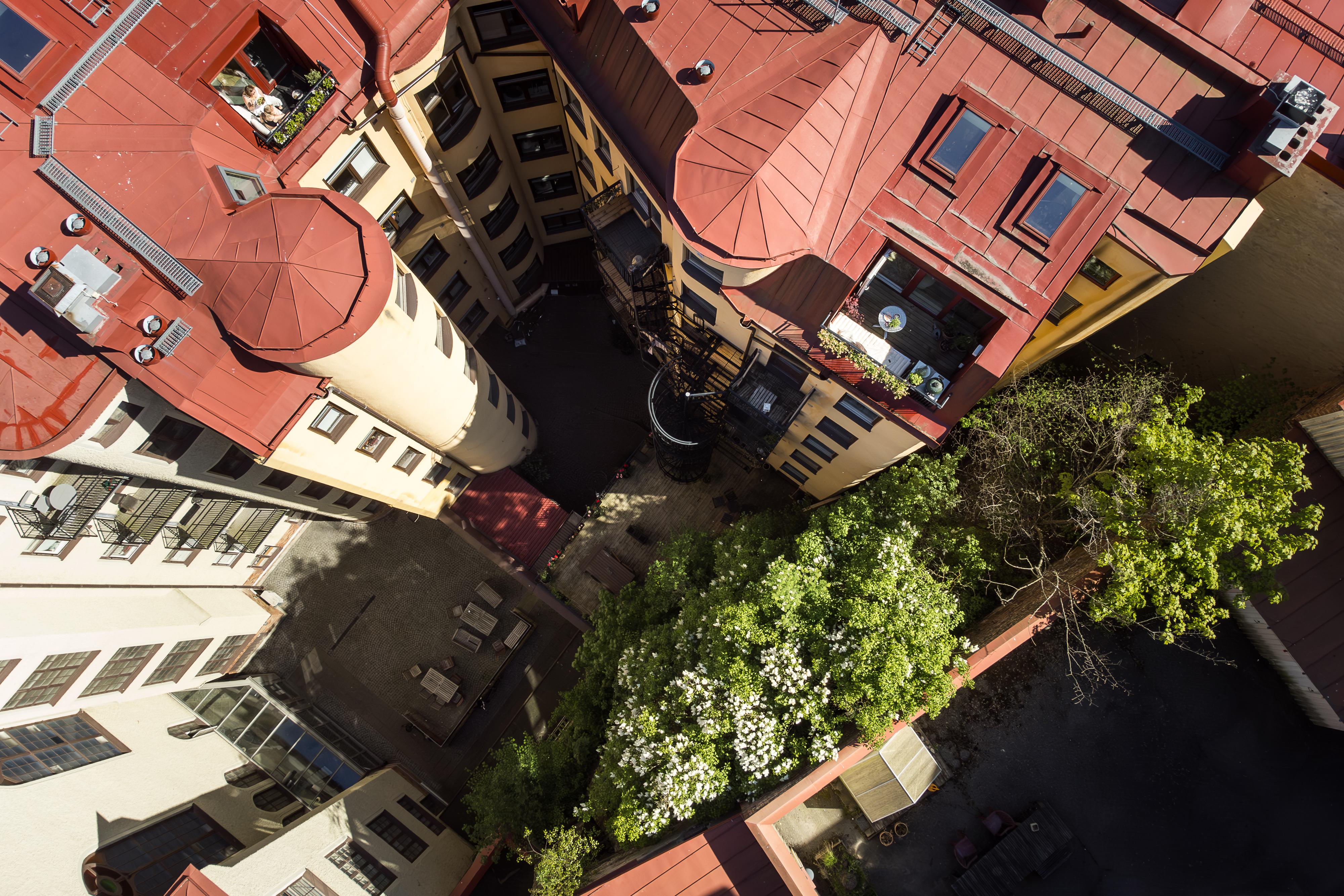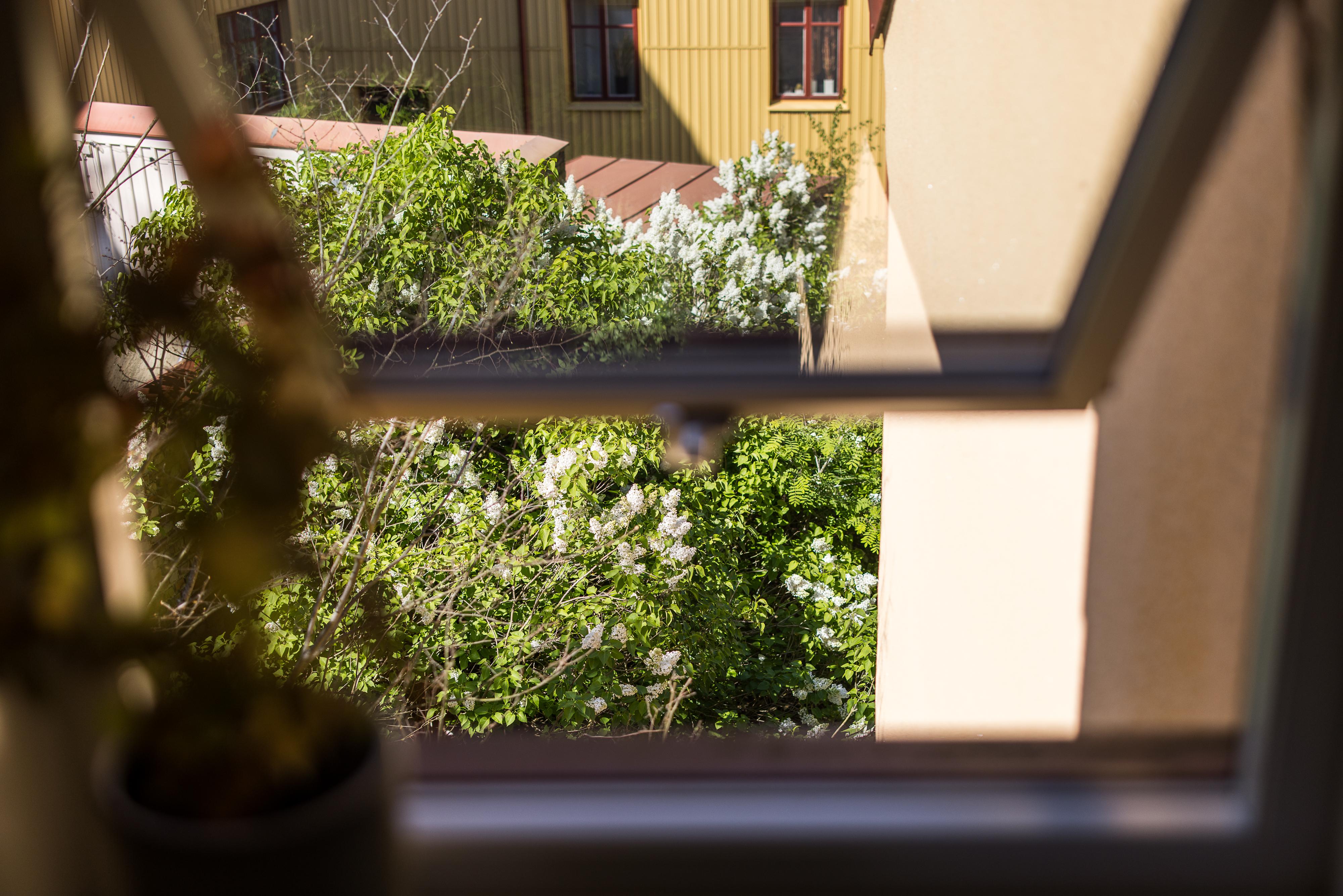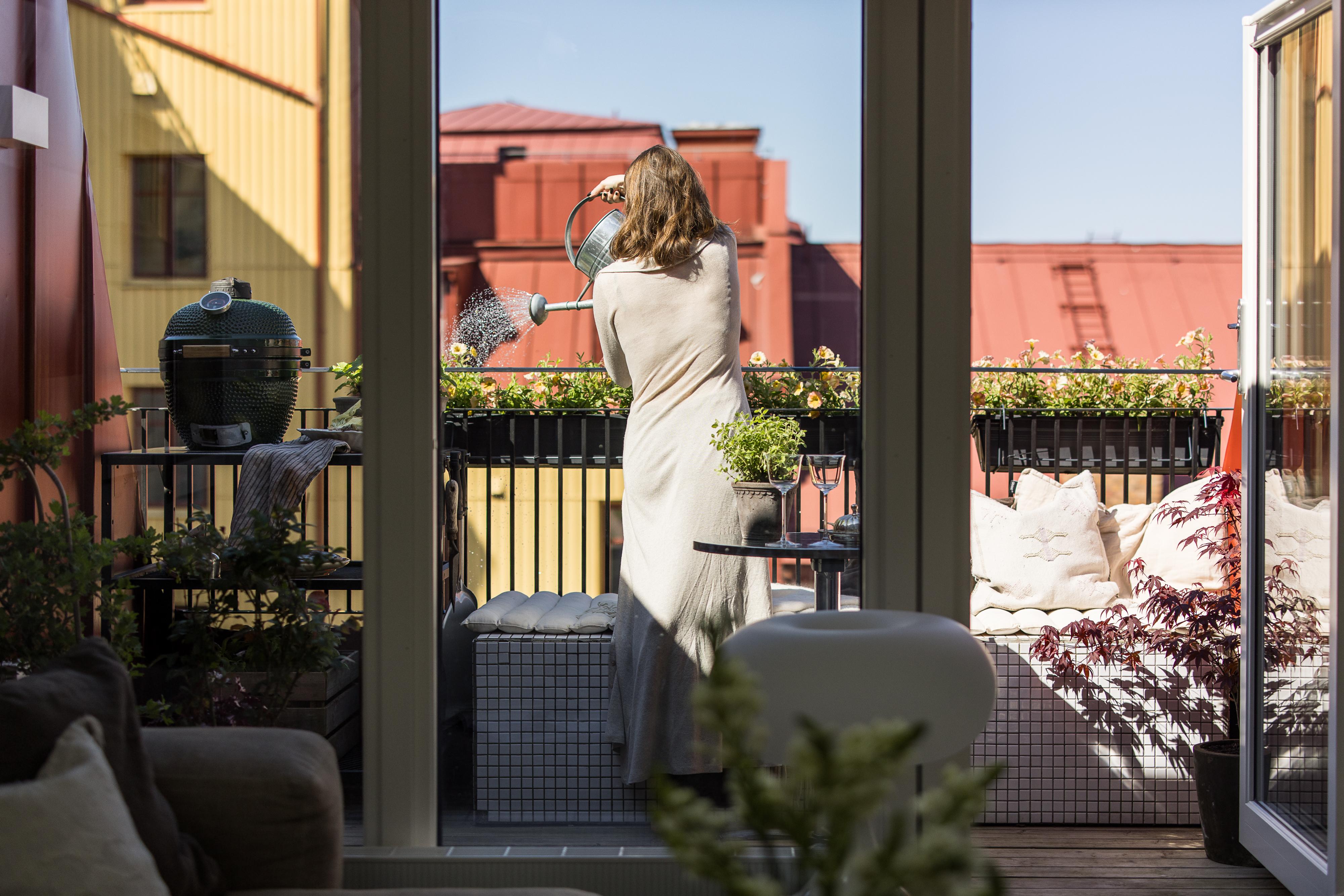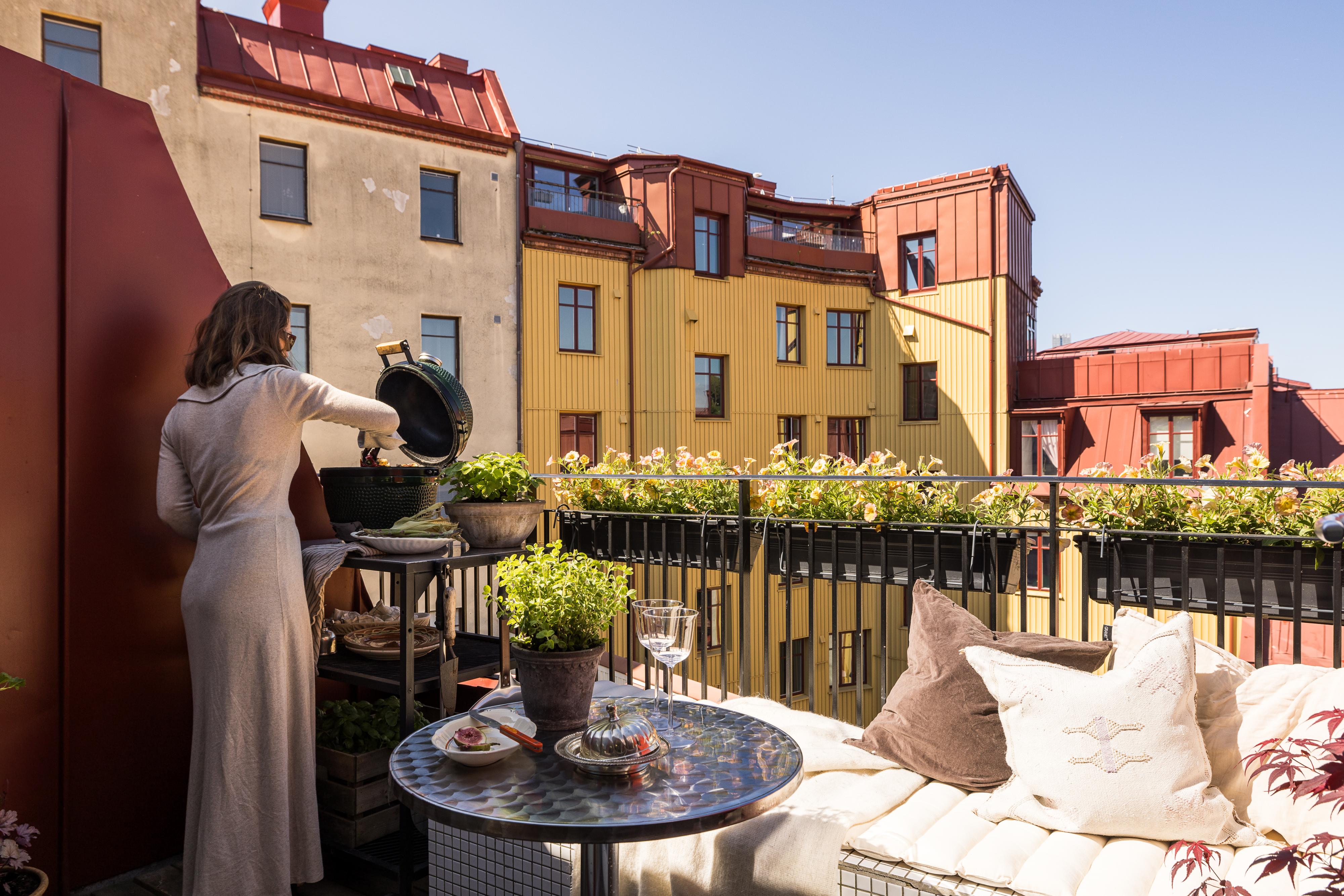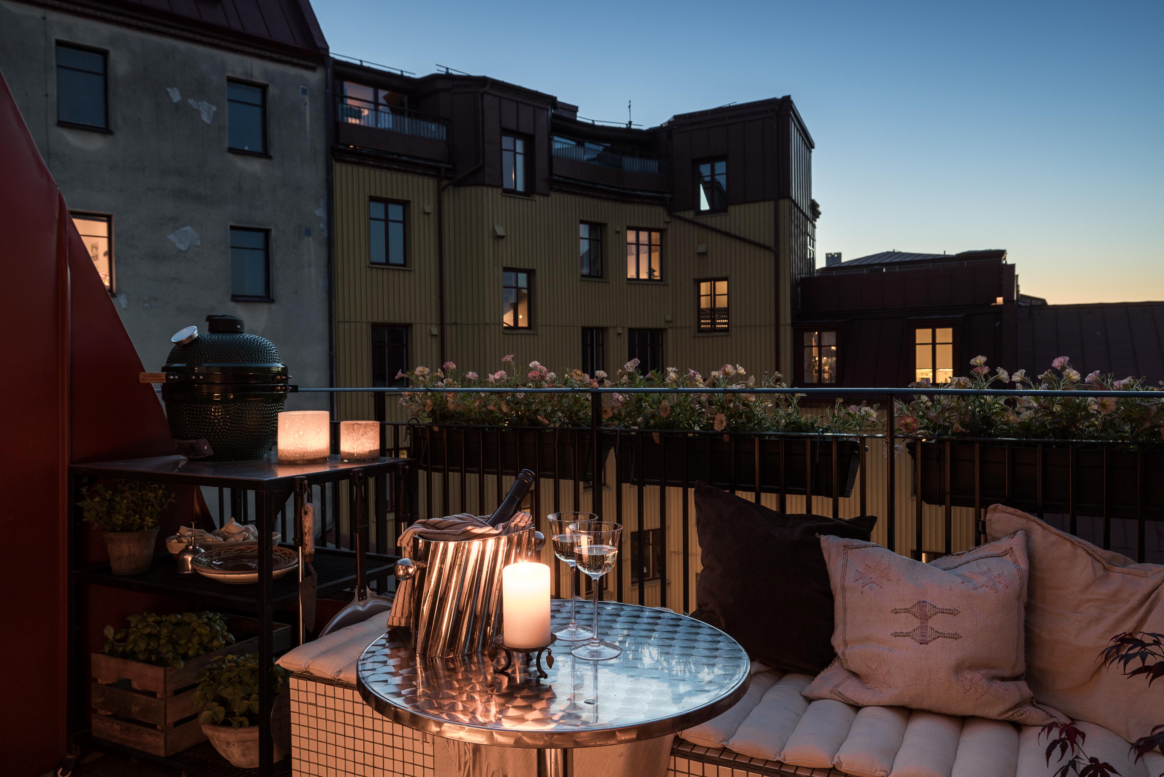 - Balkong/Uteplats: Ja. Stor terrass med vidunderlig utsikt över Linnés takåsar.