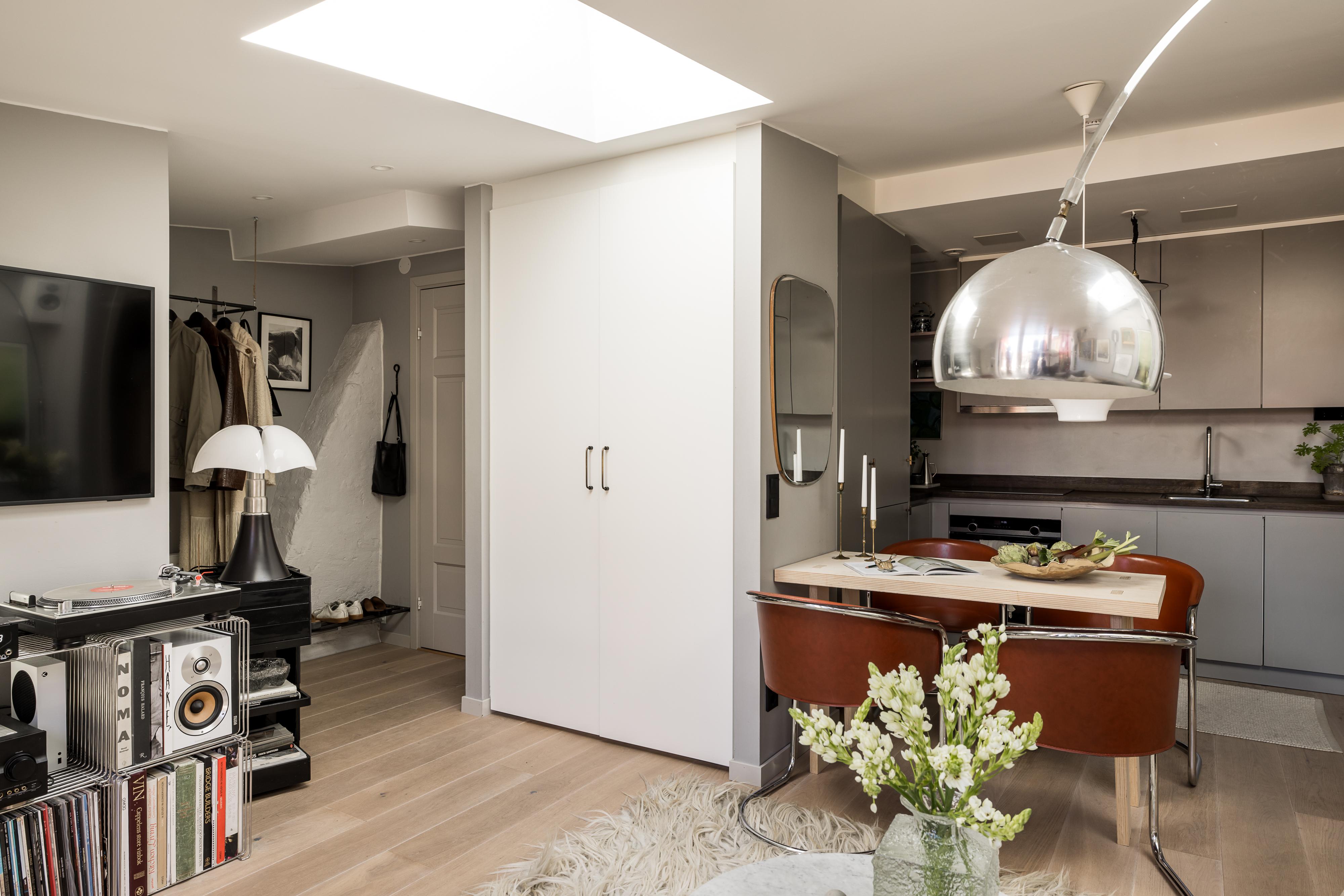 Högst upp i ett av Linnégatans vackraste sekelskifteshus väntar ett hem som är något alldeles extra. Denna oerhört vackra vindstvåa bjuder på utsökta materialval, sobra kulörer, platsbyggd inredning – och en soldränkt terrass med utsikt över Nordhemsberget och Linneakyrkans spiror. Här samsas charm från 1903 med moderna funktioner såsom smart belysning (Plejd), påkostat badrum i kalksten och ett tidlöst kök från Kvänum. Den öppna planlösningen mellan kök och vardagsrum skapar ett socialt flöde, medan det ombonade sovrummet vetter mot tyst gård. Ett hem för er som söker det vackra, välgjorda och genomtänkta – på riktigt. Varmt välkomna på visning!