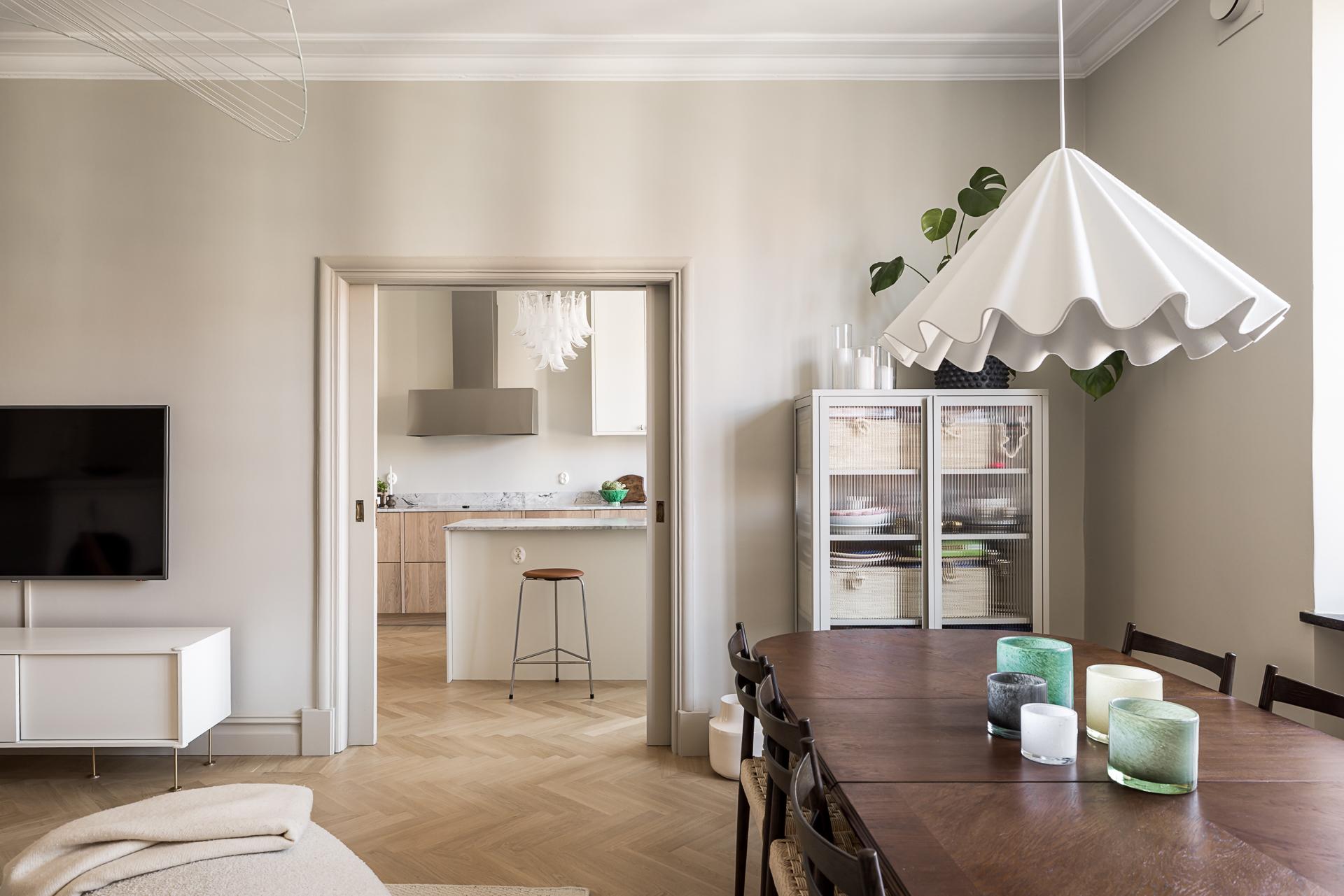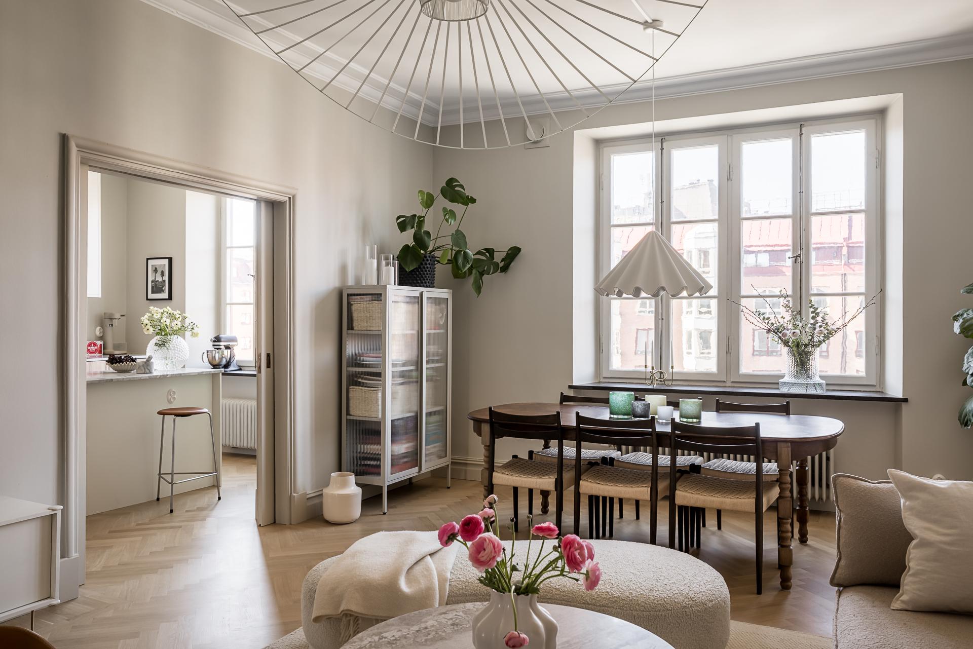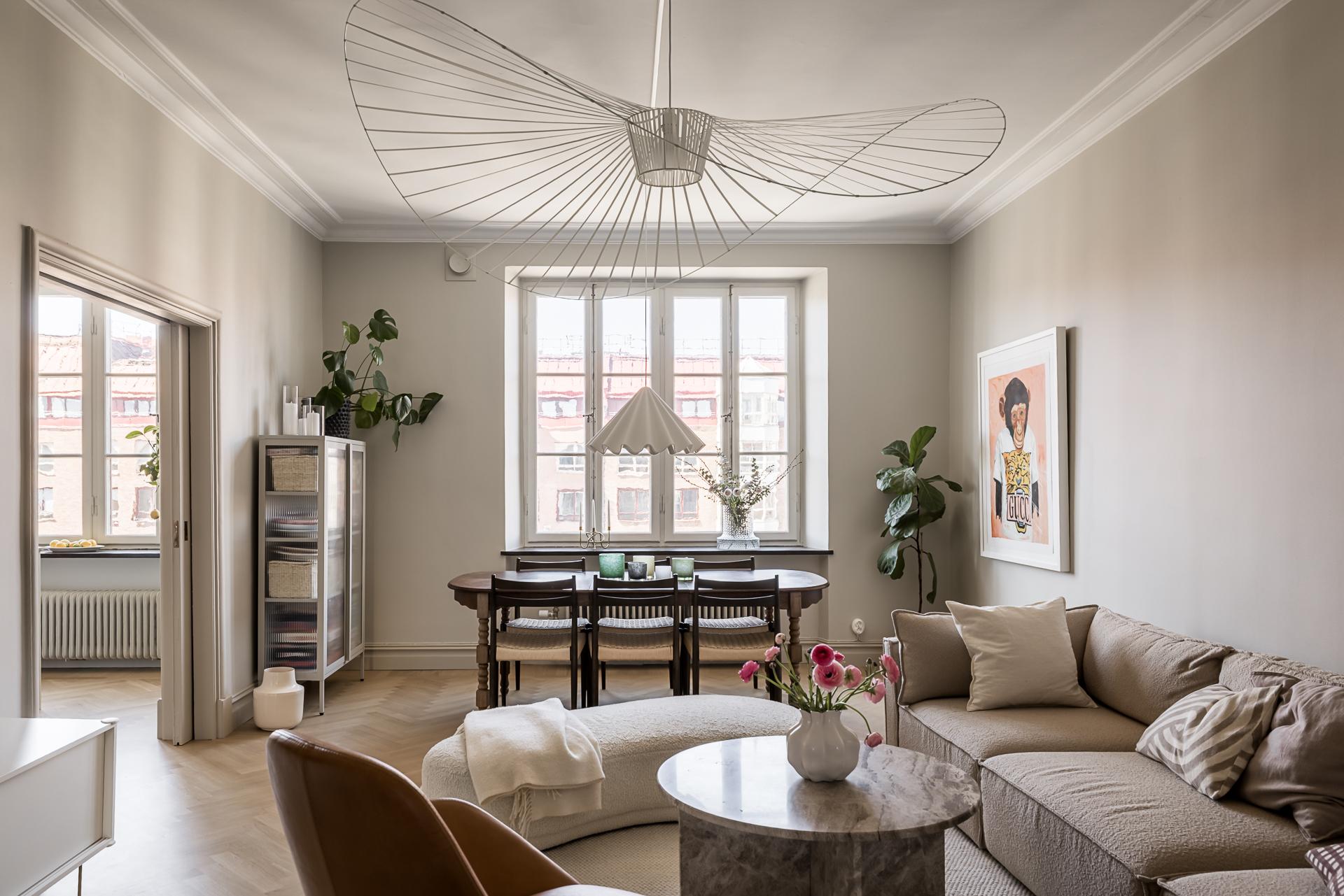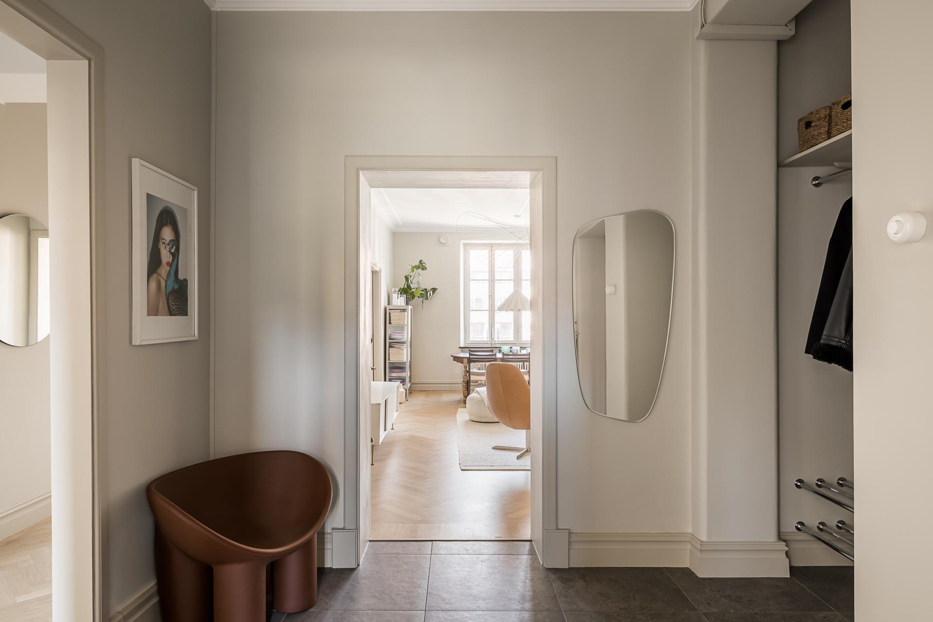 Totalrenoverad 20-talsdröm på Linnégatans solsida – högst upp med spröjsade munblåsta fönster i två väderstreck, påkostat kök med köksö i fil med vardagsrummet, lyxigt badrum med tvättmöjligheter samt gäst- wc. Nymålade ytskikt och massiva trägolv i fiskbensläggning. goda förvaringsmöjligheter, öppen spis och en mängd originaldetaljer bevarade. Hela lägenheten renoverades under 2025.