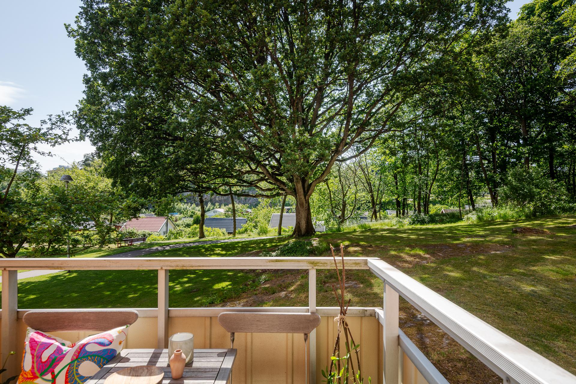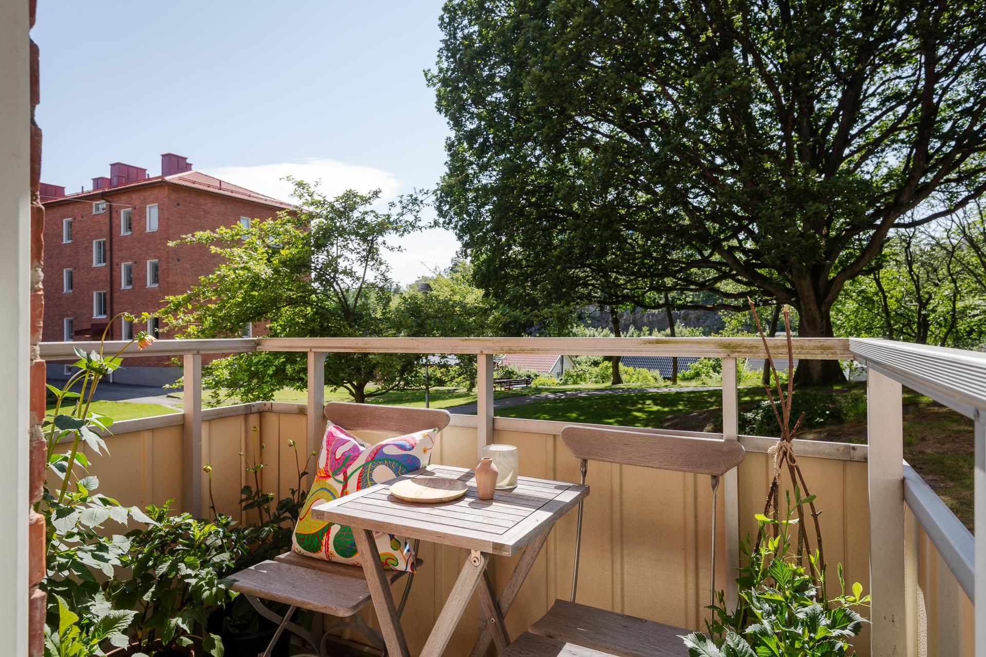 I ett lummigt funkiskvarter intill Änggårdskolonin, och med en majestätisk ek som närmsta granne, finner vi denna kvadratsmarta tvåa med rymligt och socialt kök. Den genomgående planlösningen låter dagsljuset flöda hela dagen, och ute på balkongen i sydväst är det härlig eftermiddags- och kvällssol. Lägenheten ligger en trappa upp i huset, och det är ingen insyn från förbipasserande. Det är en stor, stabil och lågt belånad bostadsrättsförening med fin utemiljö och många gemensamma utrymmen. Läget är perfekt, och i denna del av Norra Guldheden erbjuds ett särdeles lugnt och avskilt boende mitt emellan innerstans puls och Änggårdsbergens natur. Ett stenkast bort finns Wavrinskys plats kommunikationer, och på kort gångavstånd har man även Chalmers och Sahlgrenska.