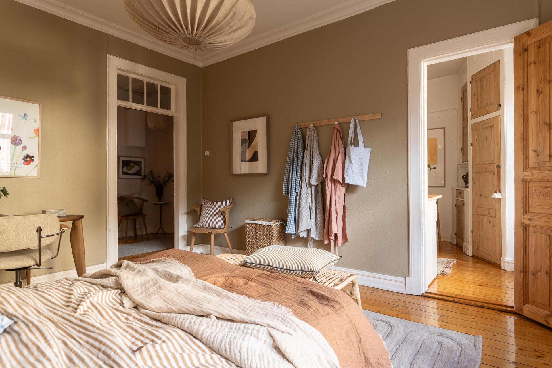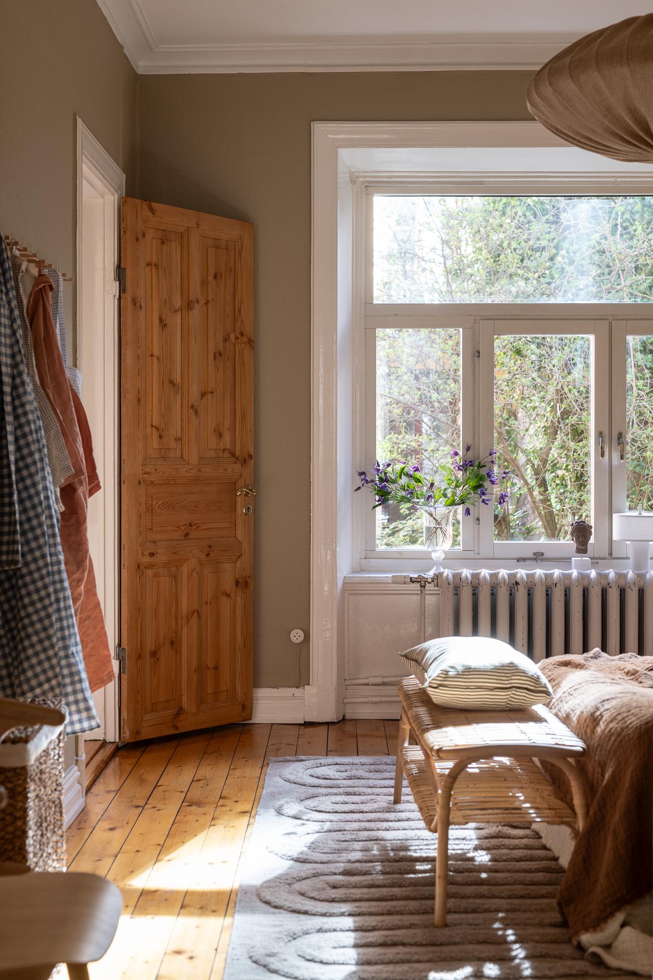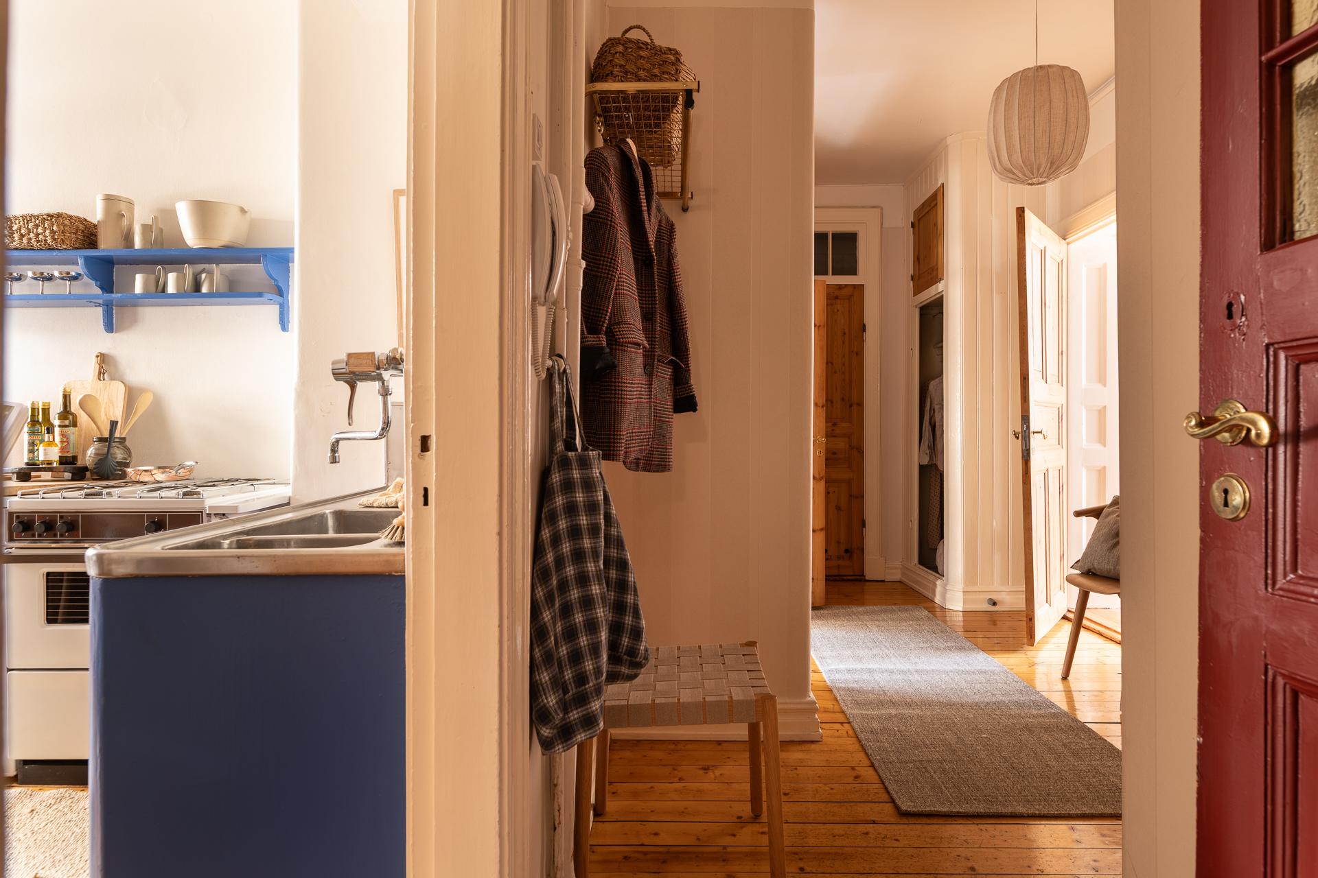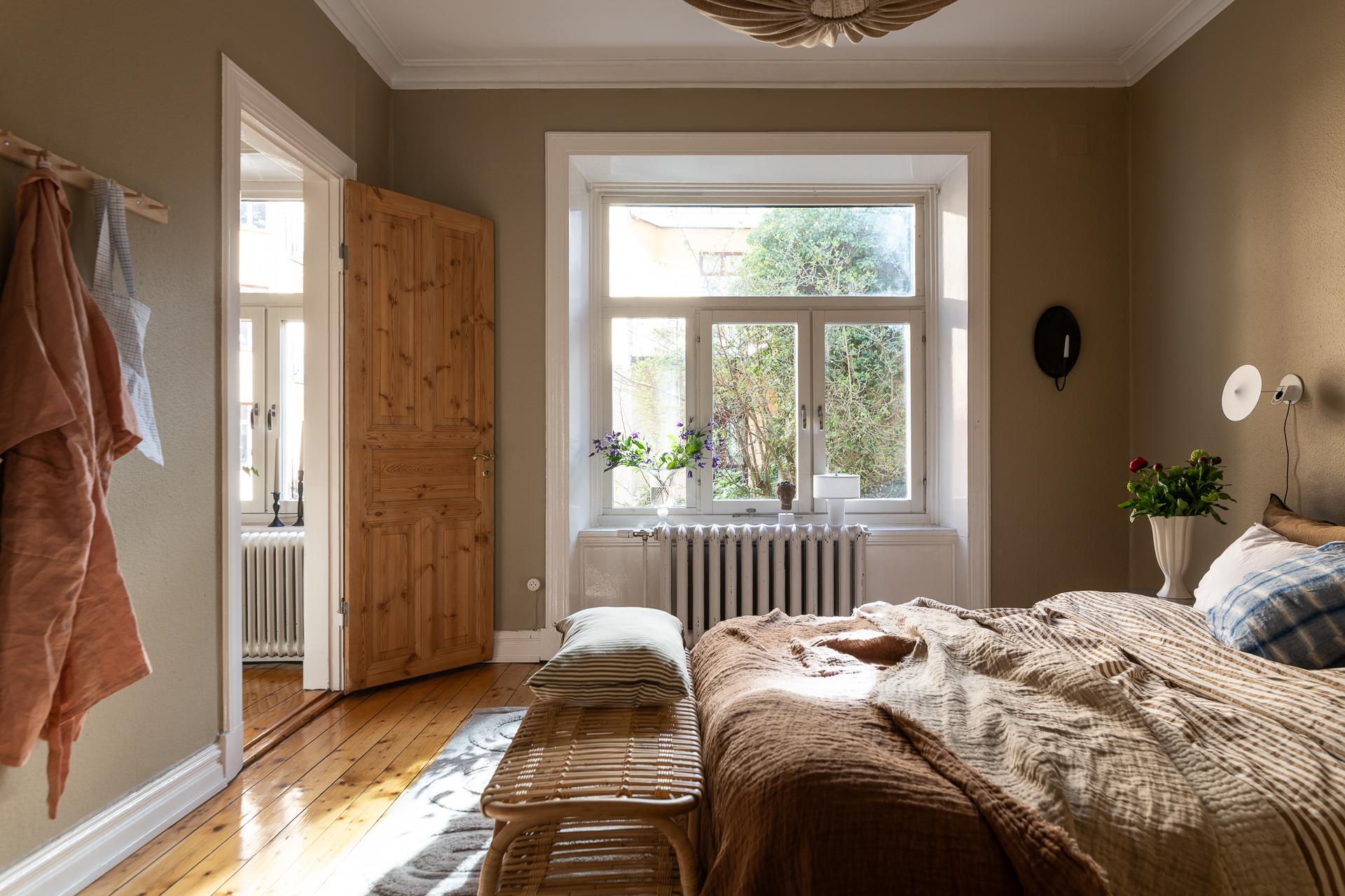 Förbi hallen igen, öppna upp spegeldörren och fortsätt fängslas och förälskas. Det är inte helt lätt att avgöra vad man gillar bäst, det är så mycket som går att uppskatta i denna lägenheten som är svårt att hitta i dagens hårt renoverade lägenheter. Utöver allt som andas byggvård är också genomgångskänslan underbar, att ni har ingång både från hallen och köket vilket ger möjlighet till ett härligt rörelsemönster i hemmet. Nymålade väggar, "Savann" Från Jotun, lyfter och förstärker listverken som är vita. Tack vare ett rofyllt gårdsläge sover man gärna med öppet fönster, enda bruset kan vara en fågel eller två som kvittrar nu när våren är på ingång.