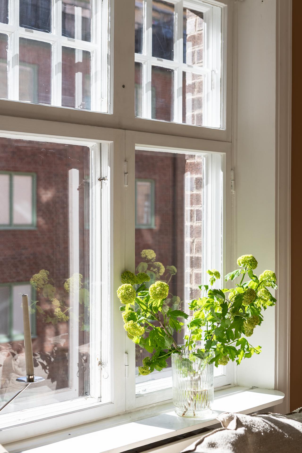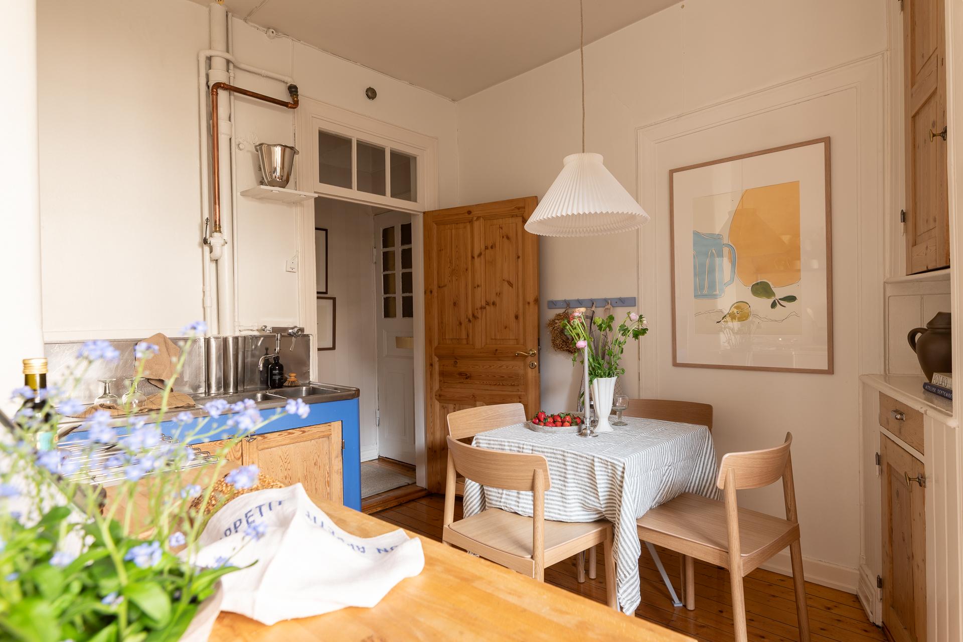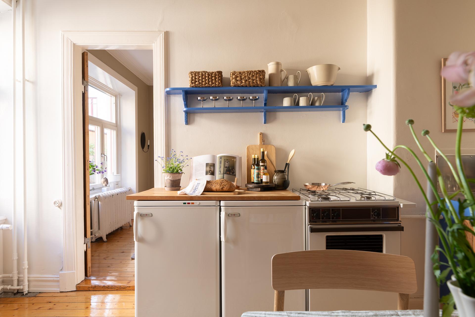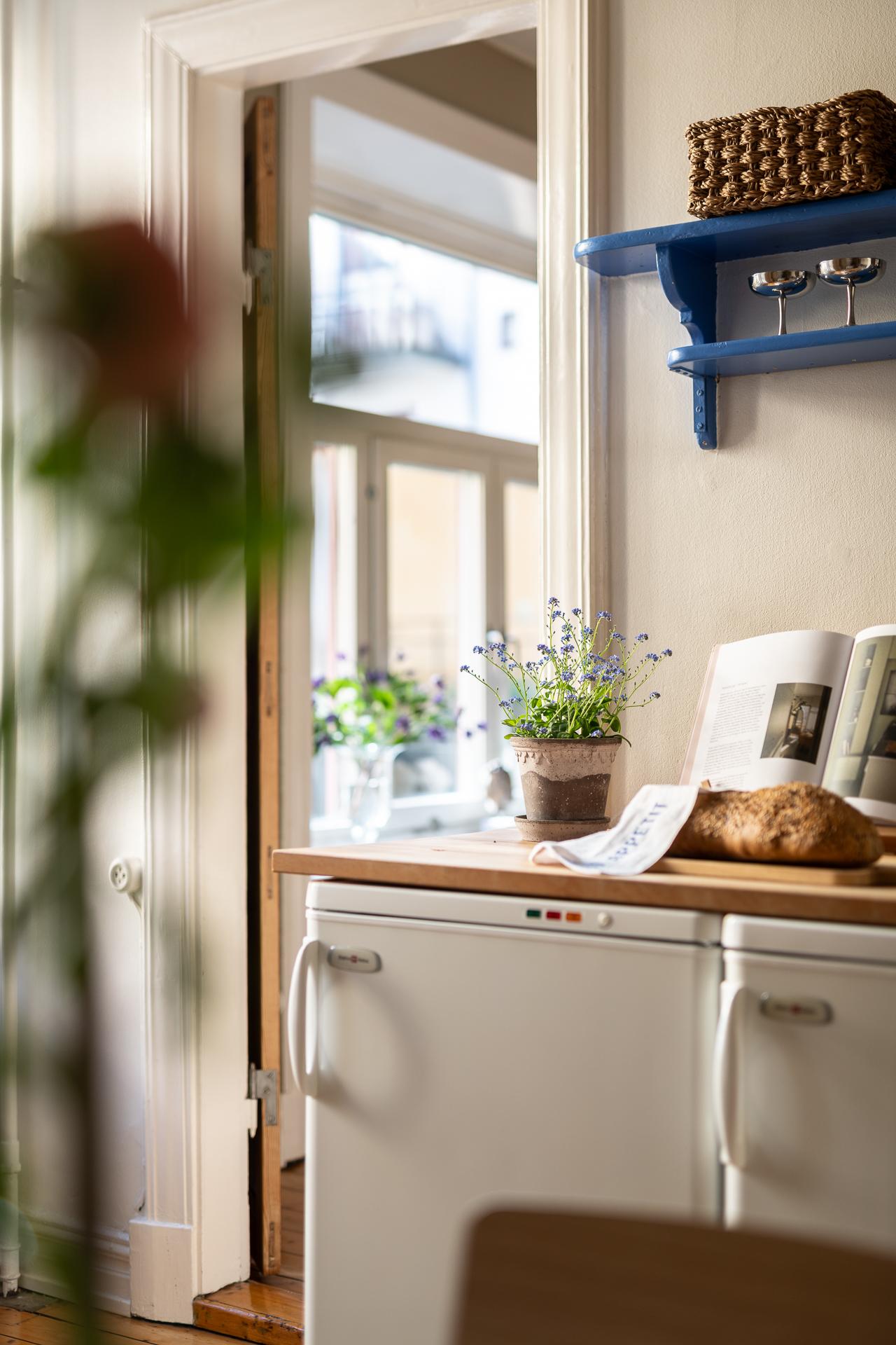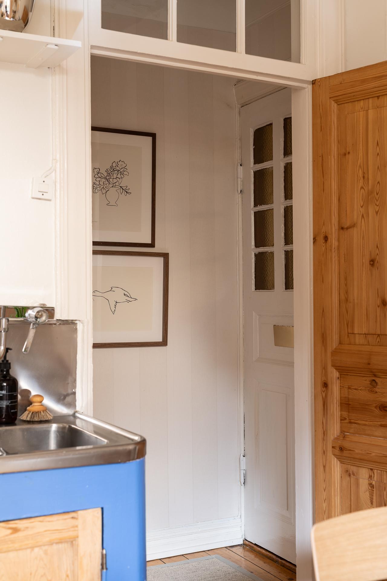 Förbi hallen igen, öppna upp spegeldörren och fortsätt fängslas och förälskas. Det är inte helt lätt att avgöra vad man gillar bäst, det är så mycket som går att uppskatta i denna lägenheten som är svårt att hitta i dagens hårt renoverade lägenheter. Utöver allt som andas byggvård är också genomgångskänslan underbar, att ni har ingång både från hallen och köket vilket ger möjlighet till ett härligt rörelsemönster i hemmet. Nymålade väggar, "Savann" Från Jotun, lyfter och förstärker listverken som är vita. Tack vare ett rofyllt gårdsläge sover man gärna med öppet fönster, enda bruset kan vara en fågel eller två som kvittrar nu när våren är på ingång.