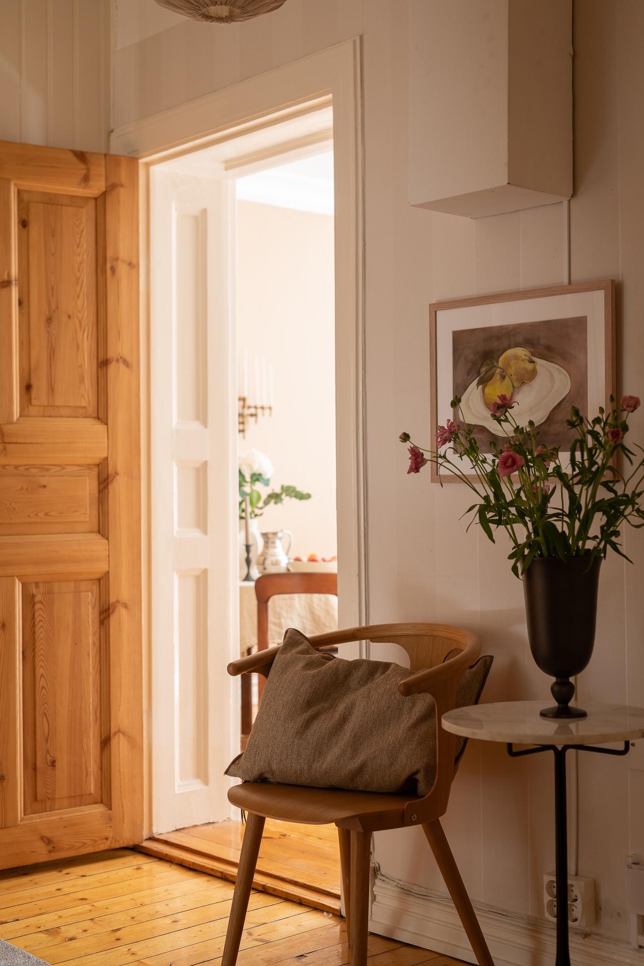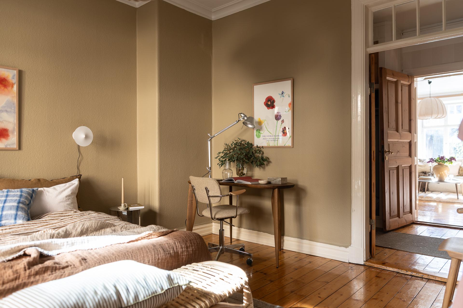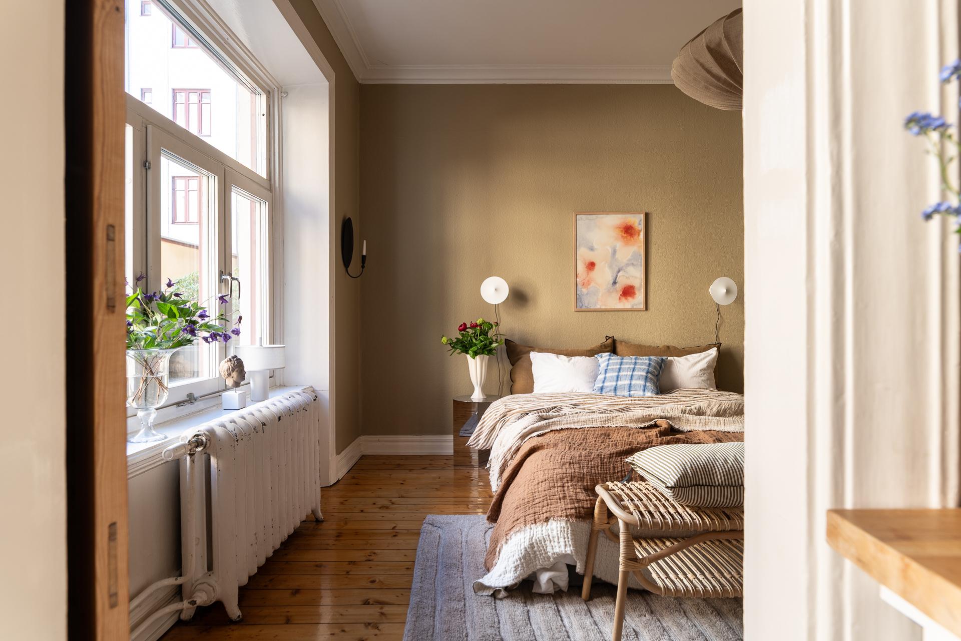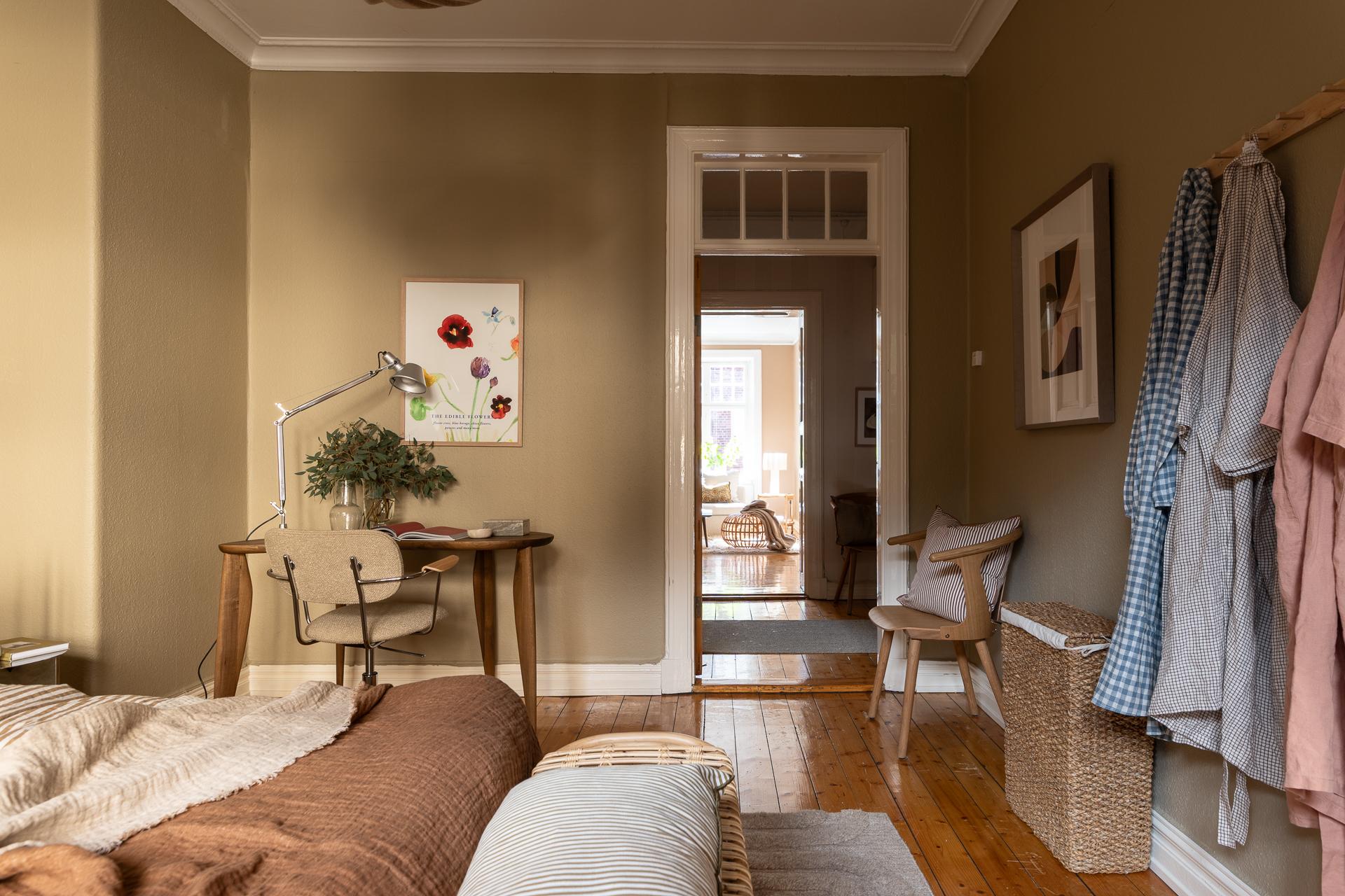 Förbi hallen igen, öppna upp spegeldörren och fortsätt fängslas och förälskas. Det är inte helt lätt att avgöra vad man gillar bäst, det är så mycket som går att uppskatta i denna lägenheten som är svårt att hitta i dagens hårt renoverade lägenheter. Utöver allt som andas byggvård är också genomgångskänslan underbar, att ni har ingång både från hallen och köket vilket ger möjlighet till ett härligt rörelsemönster i hemmet. Nymålade väggar, "Savann" Från Jotun, lyfter och förstärker listverken som är vita. Tack vare ett rofyllt gårdsläge sover man gärna med öppet fönster, enda bruset kan vara en fågel eller två som kvittrar nu när våren är på ingång.