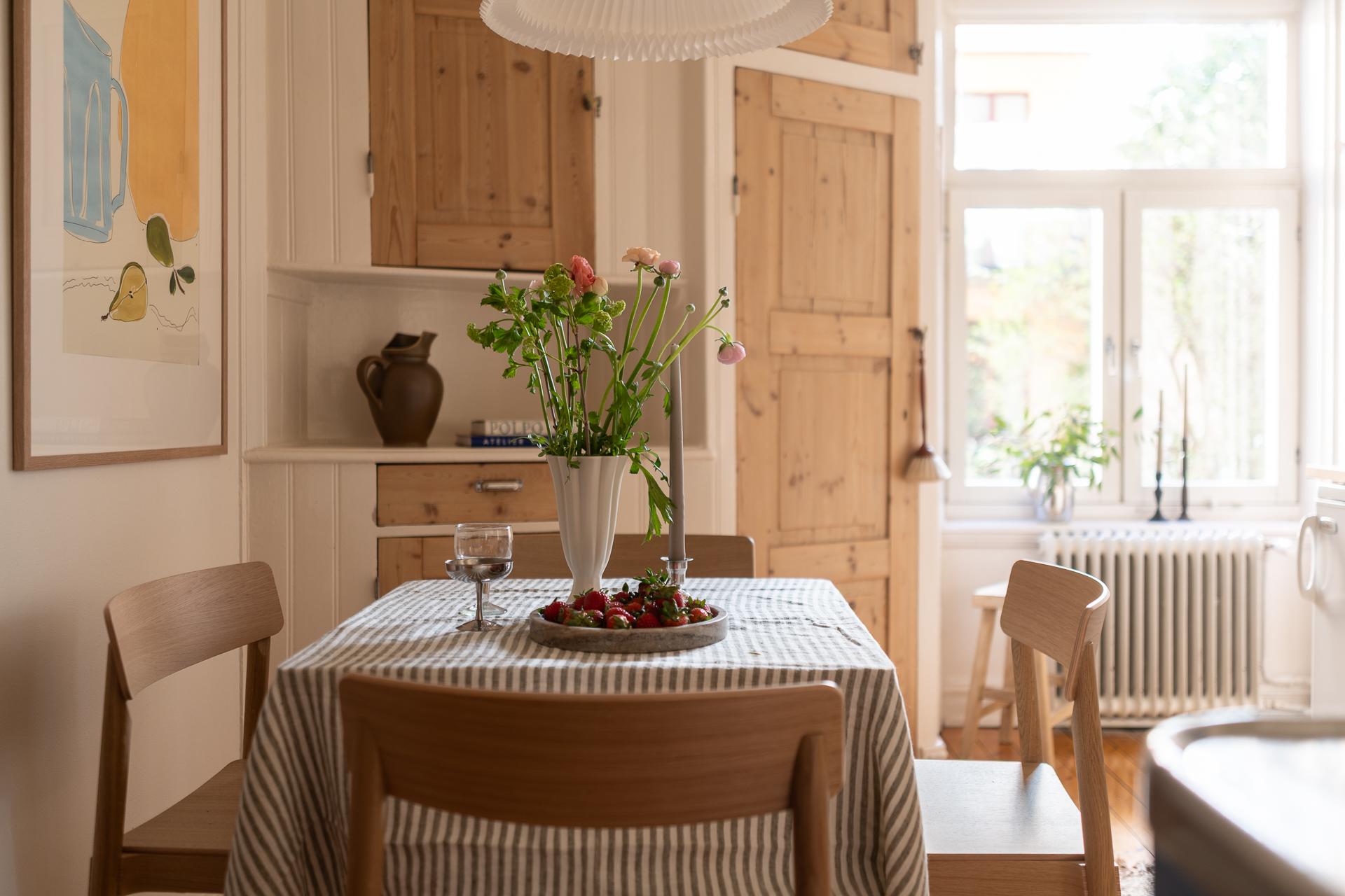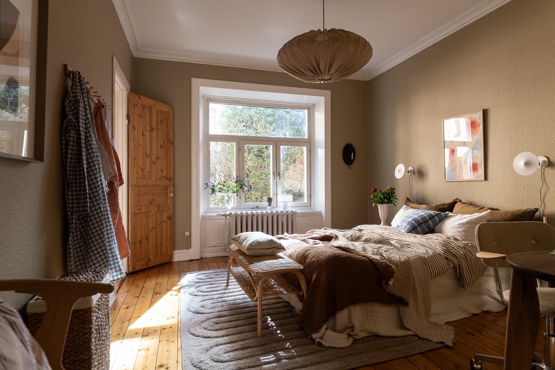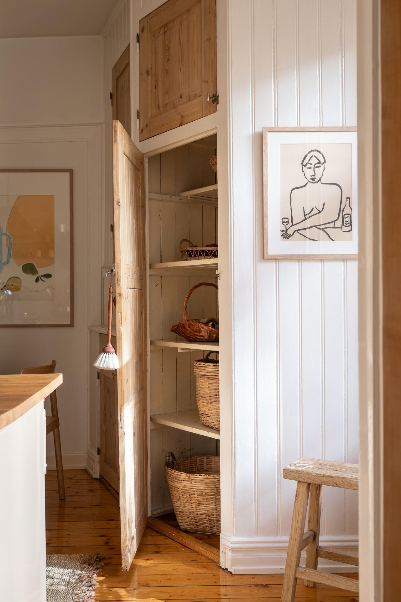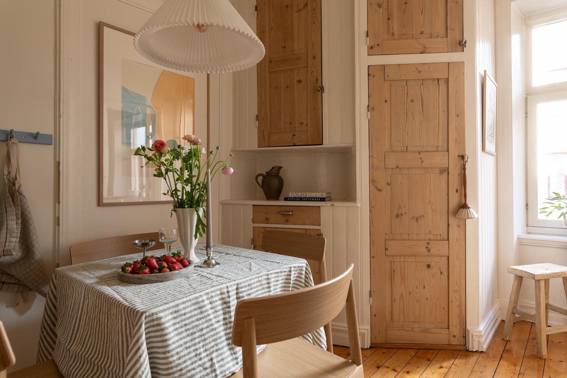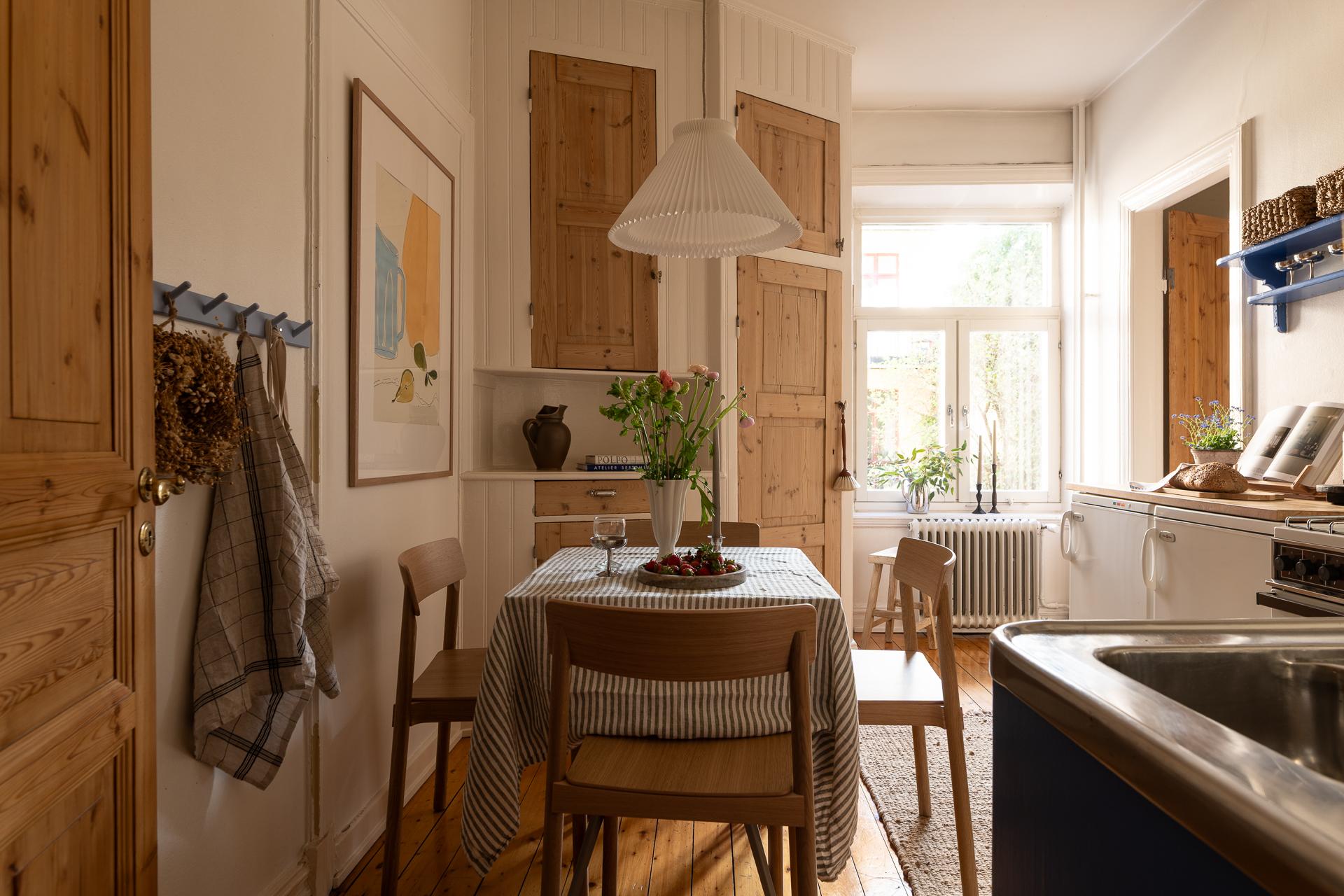 Förbi hallen igen, öppna upp spegeldörren och fortsätt fängslas och förälskas. Det är inte helt lätt att avgöra vad man gillar bäst, det är så mycket som går att uppskatta i denna lägenheten som är svårt att hitta i dagens hårt renoverade lägenheter. Utöver allt som andas byggvård är också genomgångskänslan underbar, att ni har ingång både från hallen och köket vilket ger möjlighet till ett härligt rörelsemönster i hemmet. Nymålade väggar, "Savann" Från Jotun, lyfter och förstärker listverken som är vita. Tack vare ett rofyllt gårdsläge sover man gärna med öppet fönster, enda bruset kan vara en fågel eller två som kvittrar nu när våren är på ingång.
