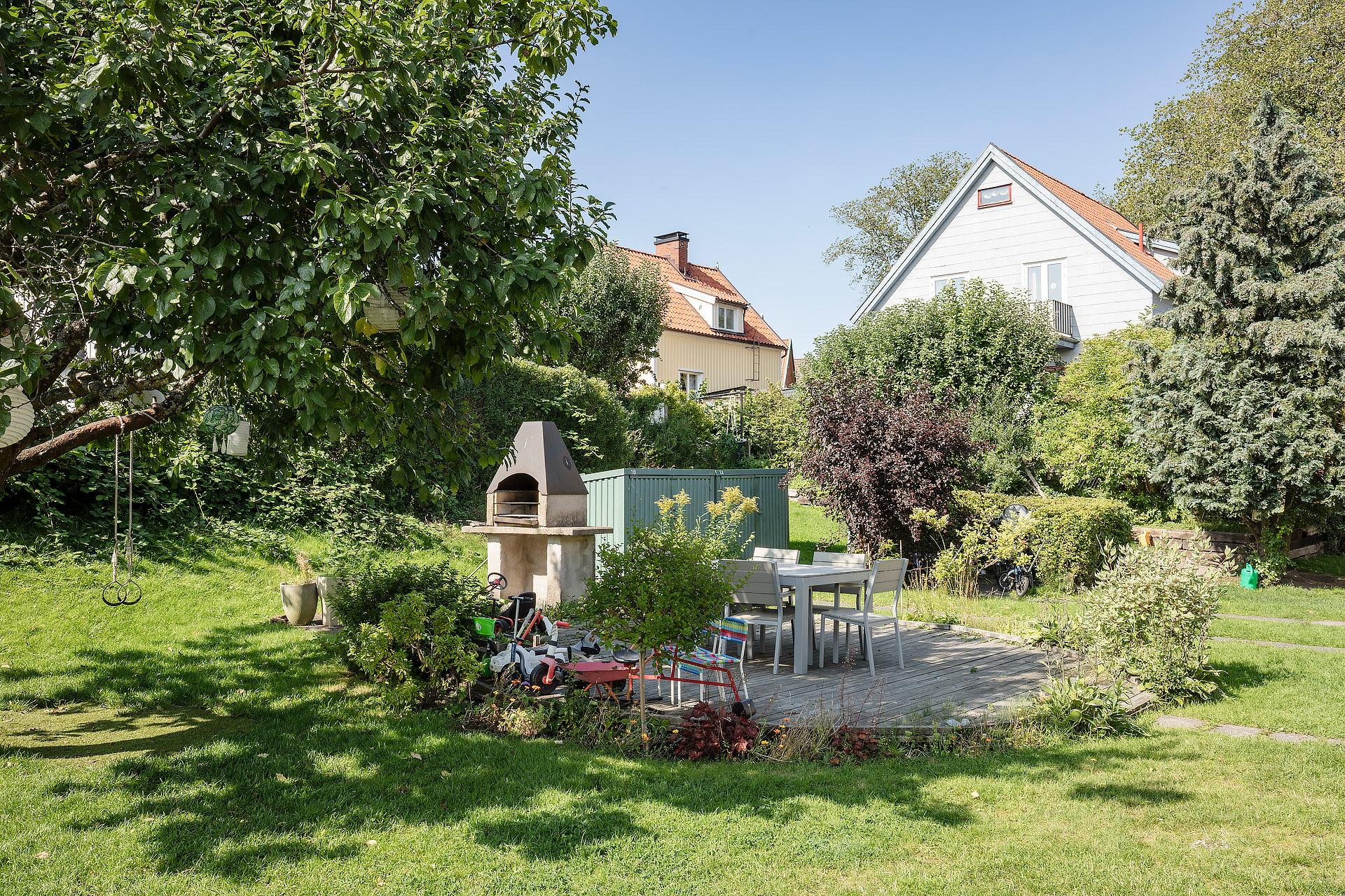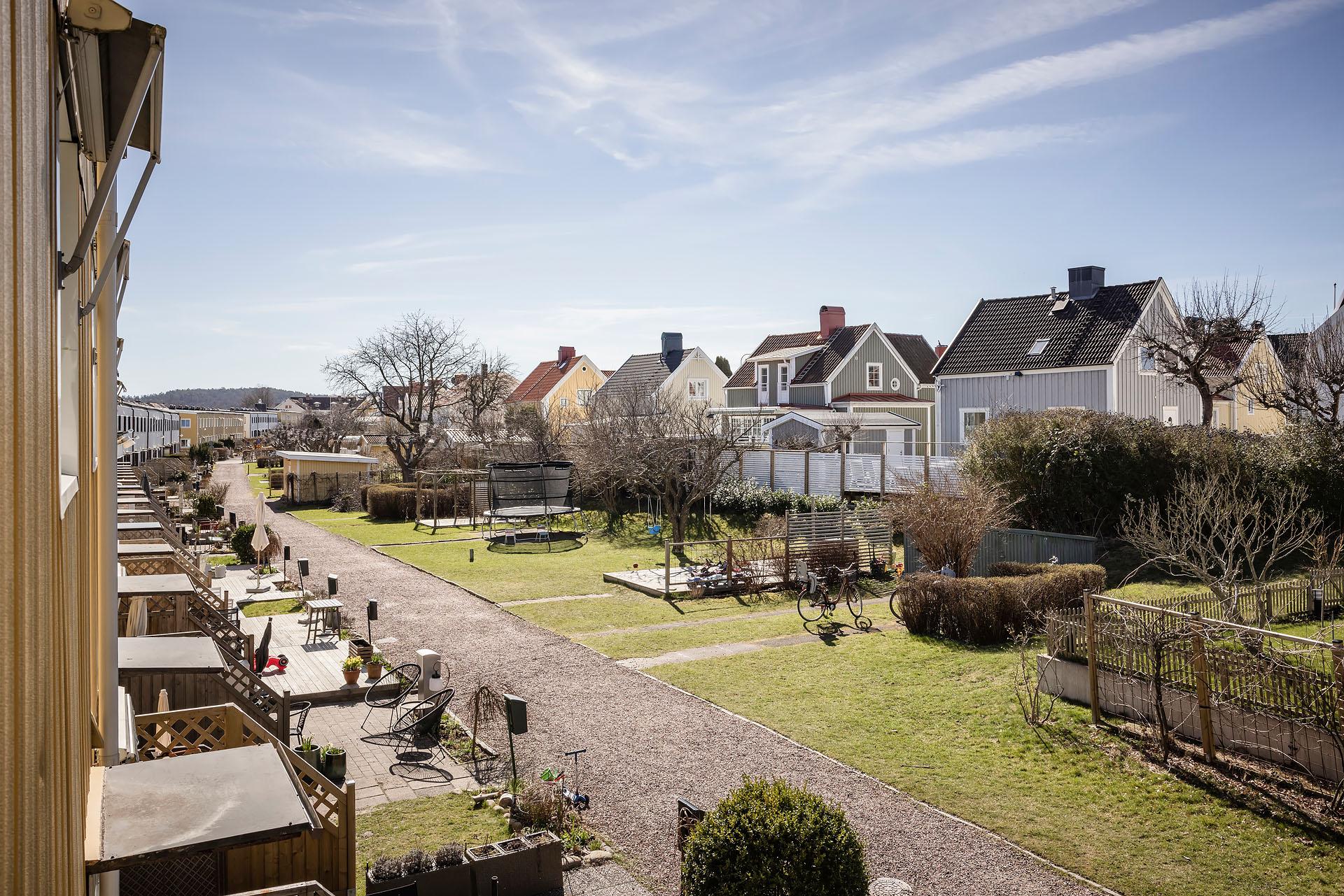 - Balkong/Uteplats: Ja. Direkt utgång till två egna uteplatser, den ena i öster och den andra i väster. Uteplatserna nyttjas med nyttjanderättsavtal.