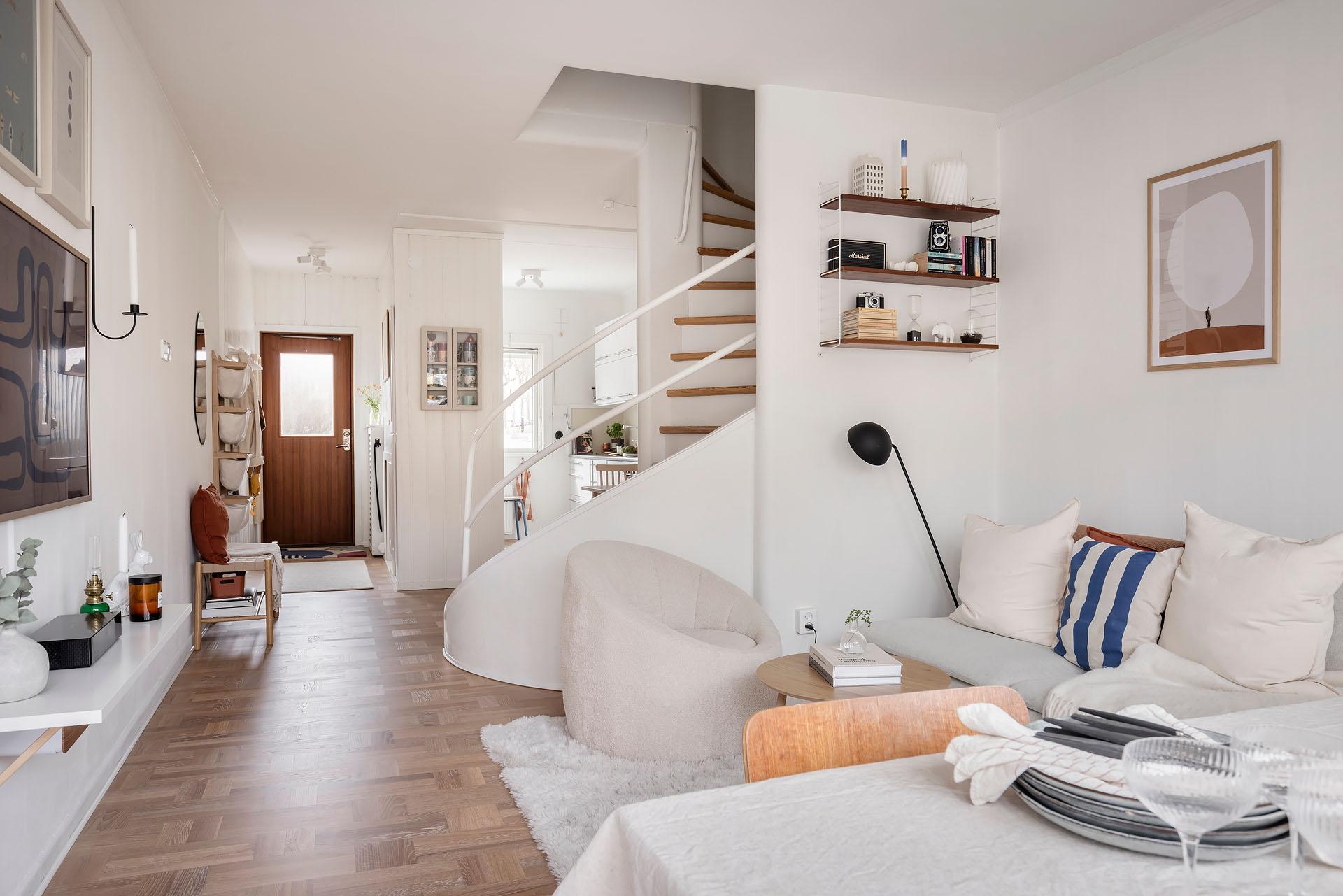 Charmigt funkisradhus med två egna, soliga uteplatser i öst och väst som blir en naturlig förlängning av bostaden. Här njuter man av morgonkaffet på baksidan och långa sommarkvällar på framsidan med utsikt över föreningens fina utemiljö. Invändigt väntar en ljus och välplanerad bostad med stort ljusinsläpp och välplanerade ytor. Lugnt och familjevänligt läge nära både stadspuls, service och stora naturområden. Tillträde kan ske om 6 månader.