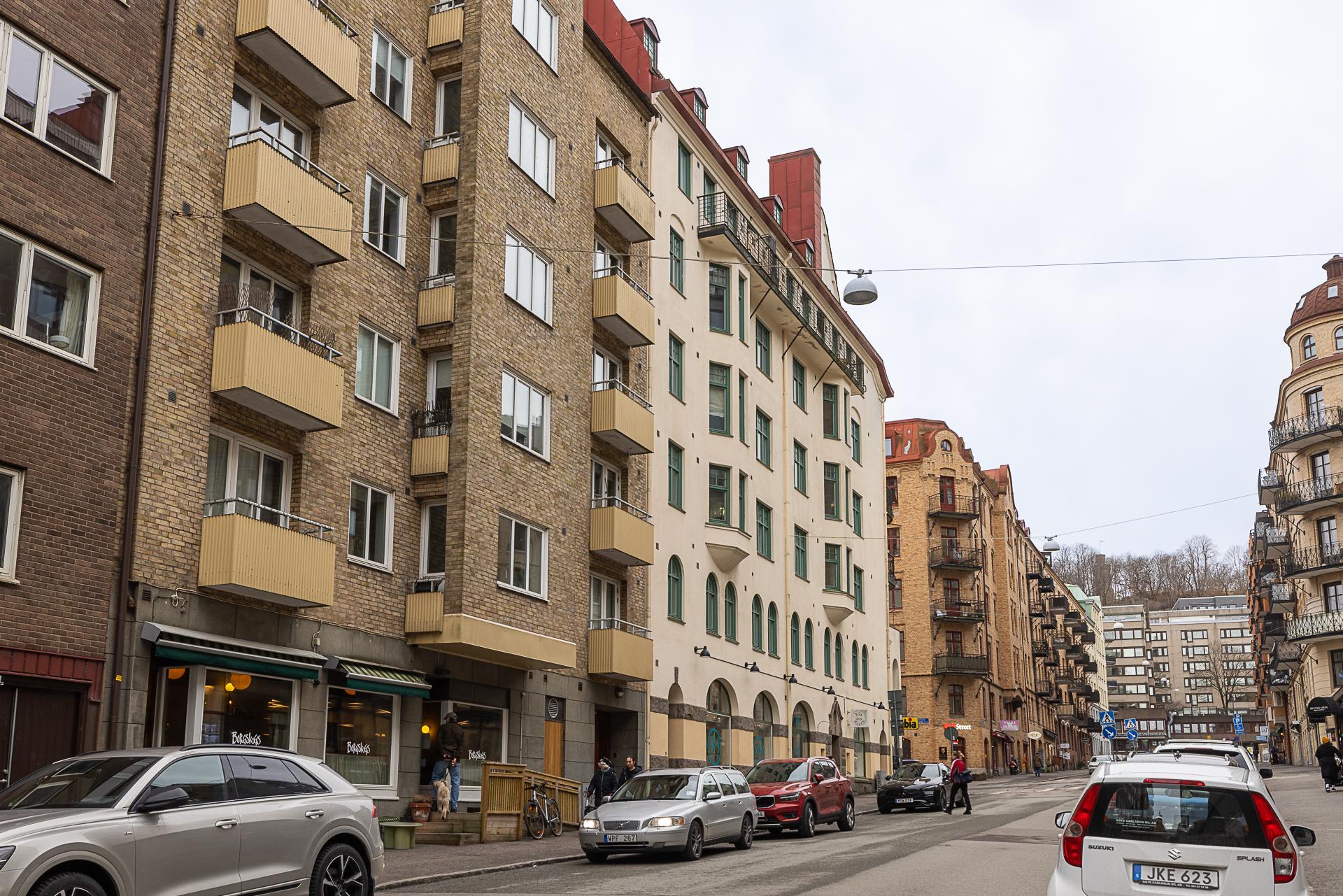Charmig funkislägenhet belägen på en av de mest eftertraktade adresserna i Göteborg. Högt i tak (ca 2,70 m) vackra nyslipade golv, fungerande öppen spis, renoverat badrum och kök samt TVÅ balkonger. Högt och fritt läge på våning fyra av fem med hiss. Mycket trivsam förening och tillgång till en grönskande idyllisk gård där man snabbt glömmer att man befinner sig i en storstad.
