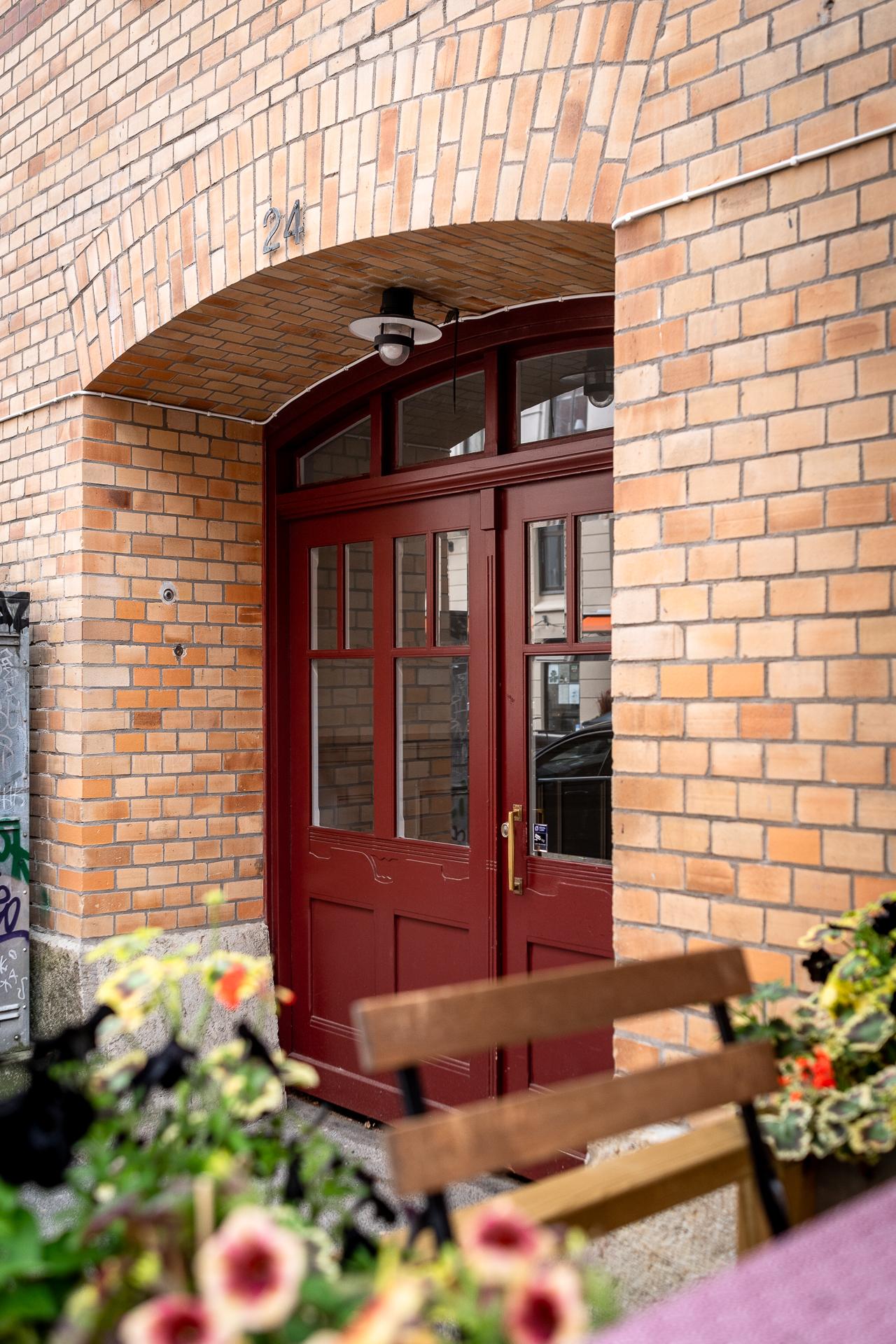 Direkt när du stiger innanför porten känner du att detta hus, i typisk sekelskiftesstil, är välskött och i mycket fint skick. Portgången som leder vidare in mot gården har bröstpaneler målade i ljust grå och både entréporten och den inre porten är i tidstypiskt utförande i massivt trä. Utanför husets portar finns det mesta som hör det goda livet till. Lite längre ner på gatan finner du en välsorterad matbutik med en bra delikatessavdelning och fyra av stans bästa italienska restauranger ligger på samma gata. Skulle du tröttna på det har du klassiska rätter på Manfreds där Wienerschnitzel är ett måste eller japanska Kuruya i samma hus. Endast ett kvarter bort ligger Slottsskogen, med sina inbjudande promenadstråk och skönhet.